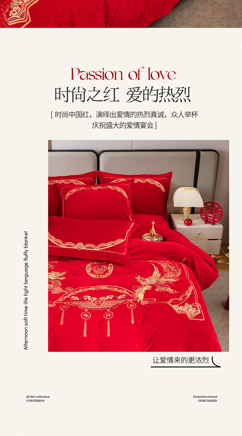 张公子婚庆馆 2025新款宝宝绒婴儿绒婚庆刺绣四件套 高克重高端婚庆床上用品绣花四件套 贵族龙凤