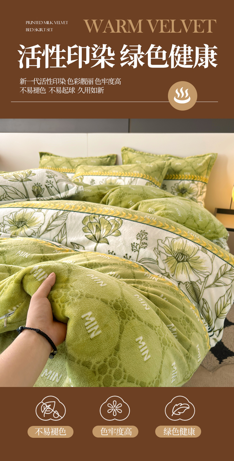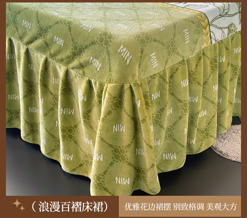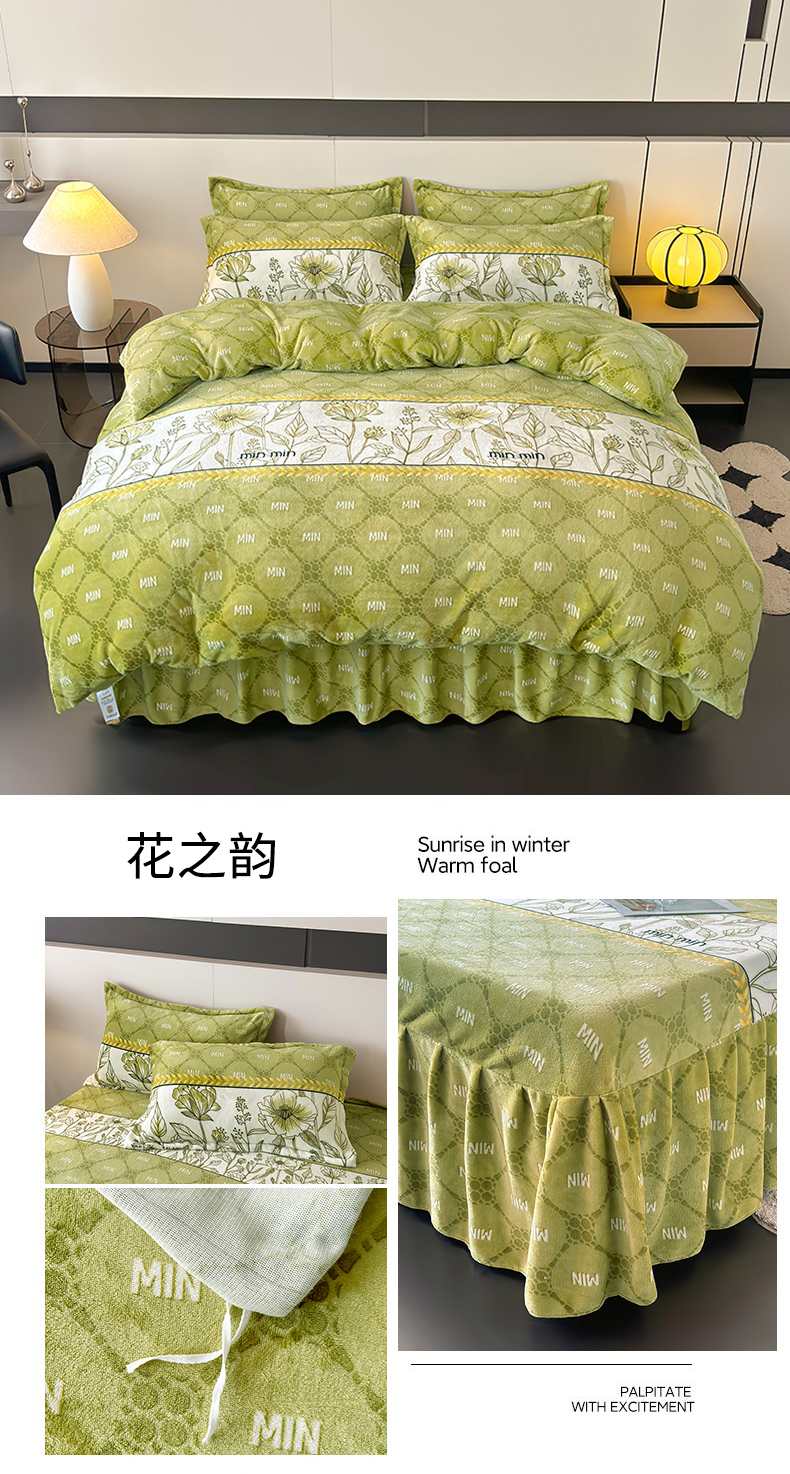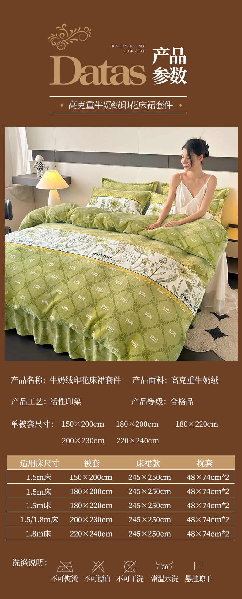 当前位置: 91家纺网 > 商品网购 > 床品套件 > 四件套 > 牛奶绒四件套 > 董韵家纺 2025新款高克重全消光牛奶绒法莱绒金貂绒印花单品被套床裙四件套(提供买家秀)花之韵