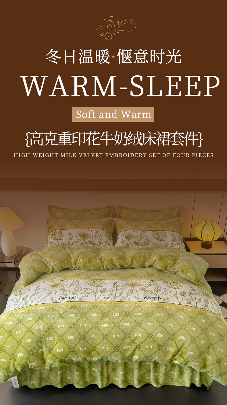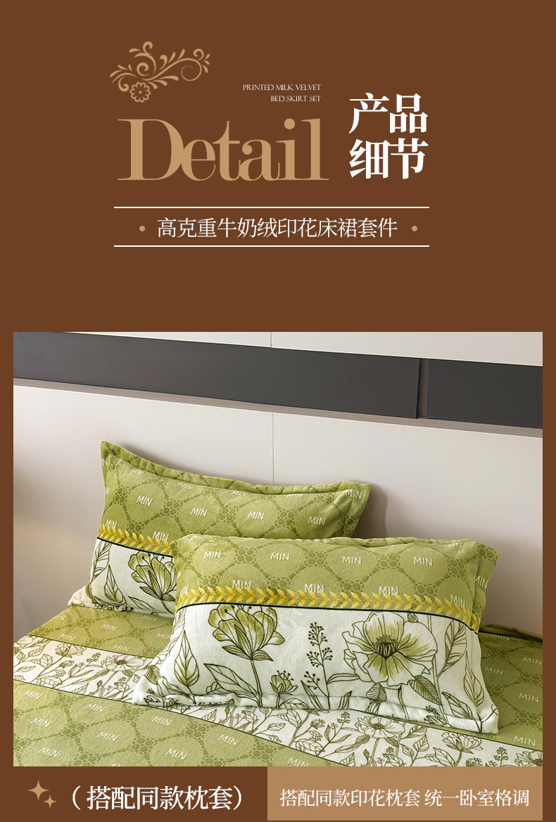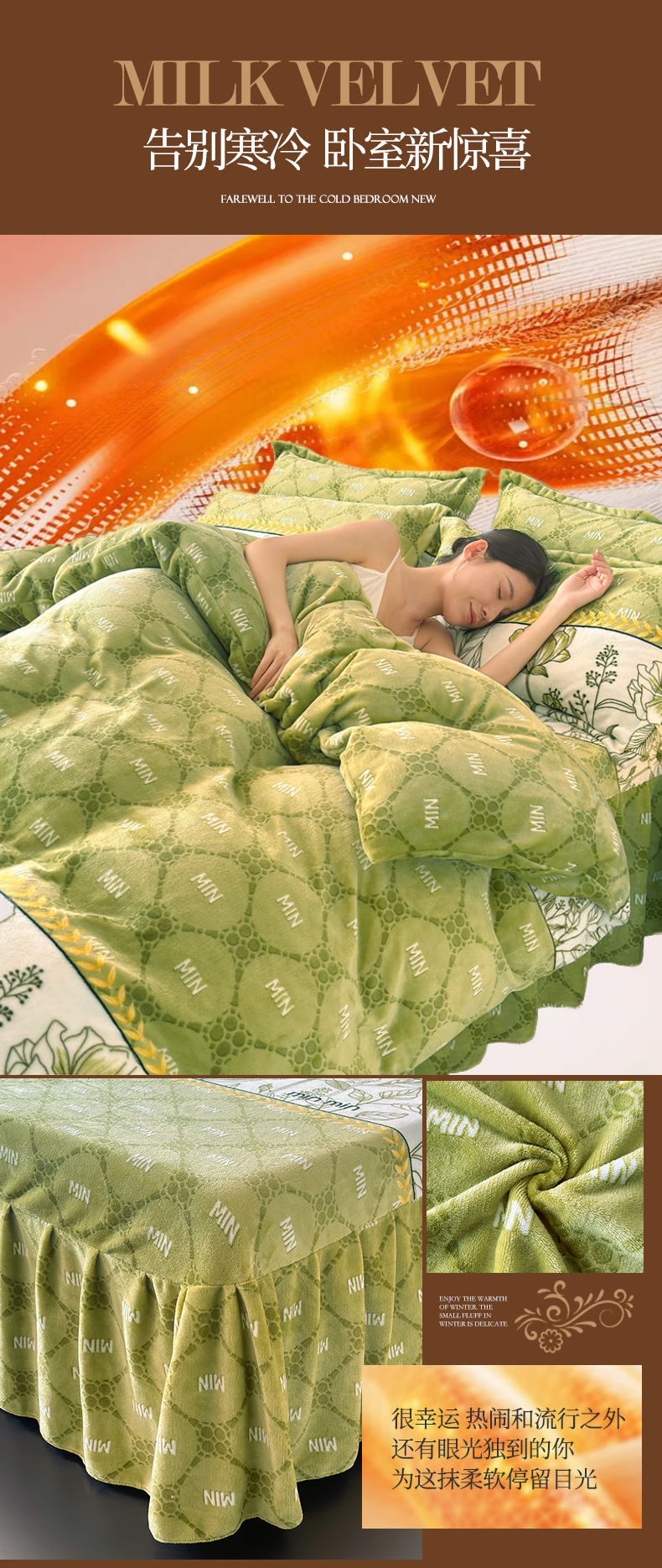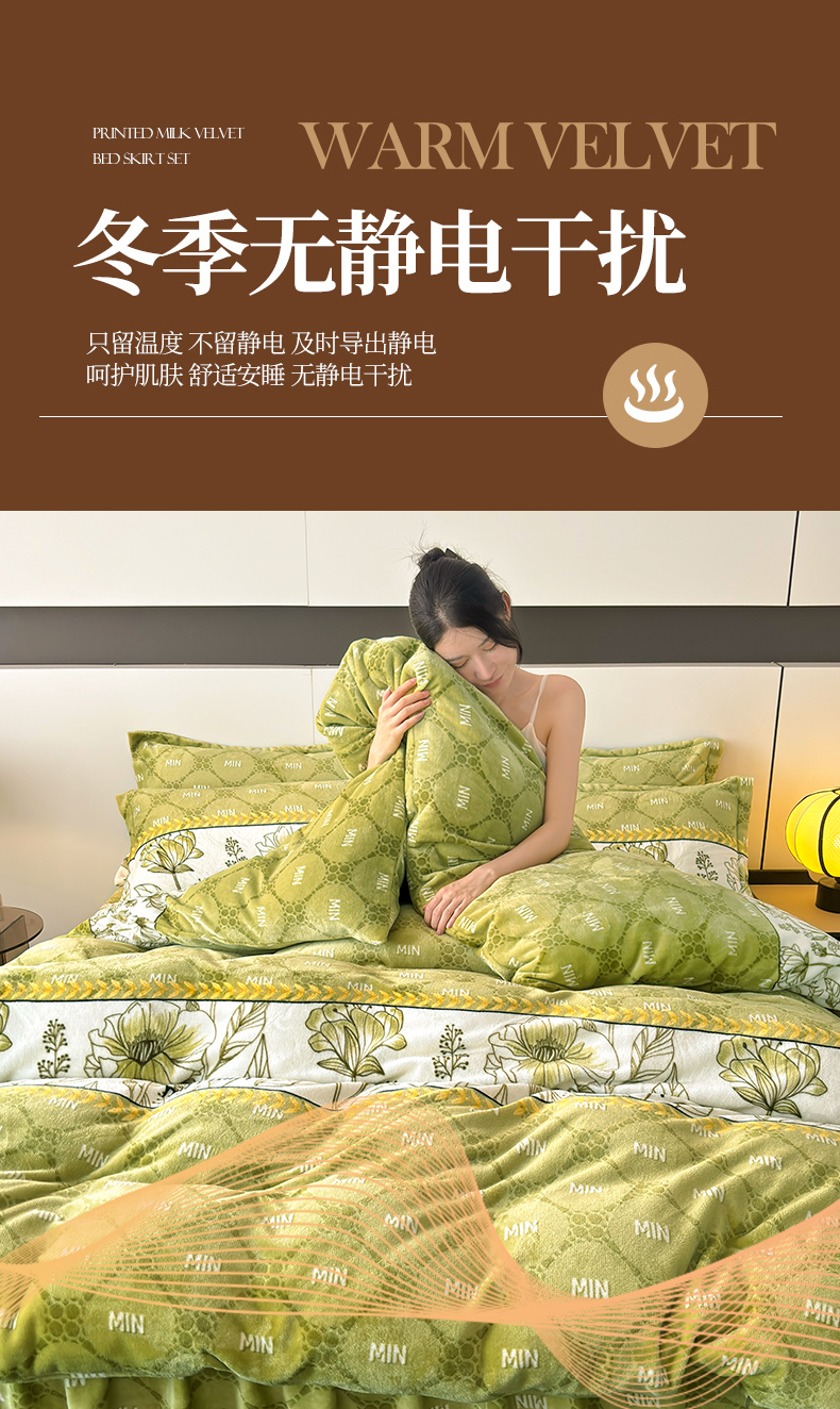 当前位置: 91家纺网 > 商品网购 > 床品套件 > 四件套 > 牛奶绒四件套 > 董韵家纺 2025新款高克重全消光牛奶绒法莱绒金貂绒印花单品被套床裙四件套(提供买家秀)花之韵