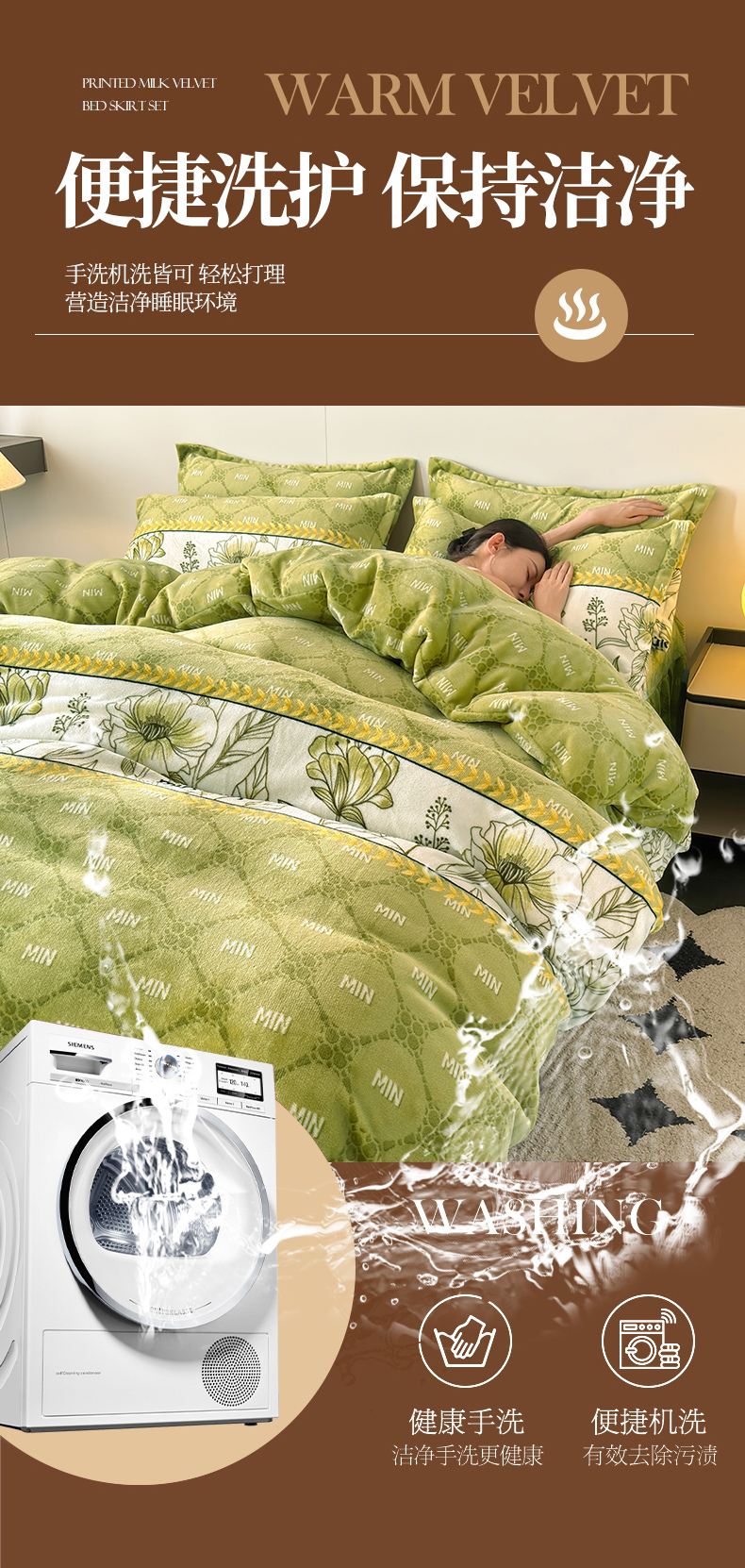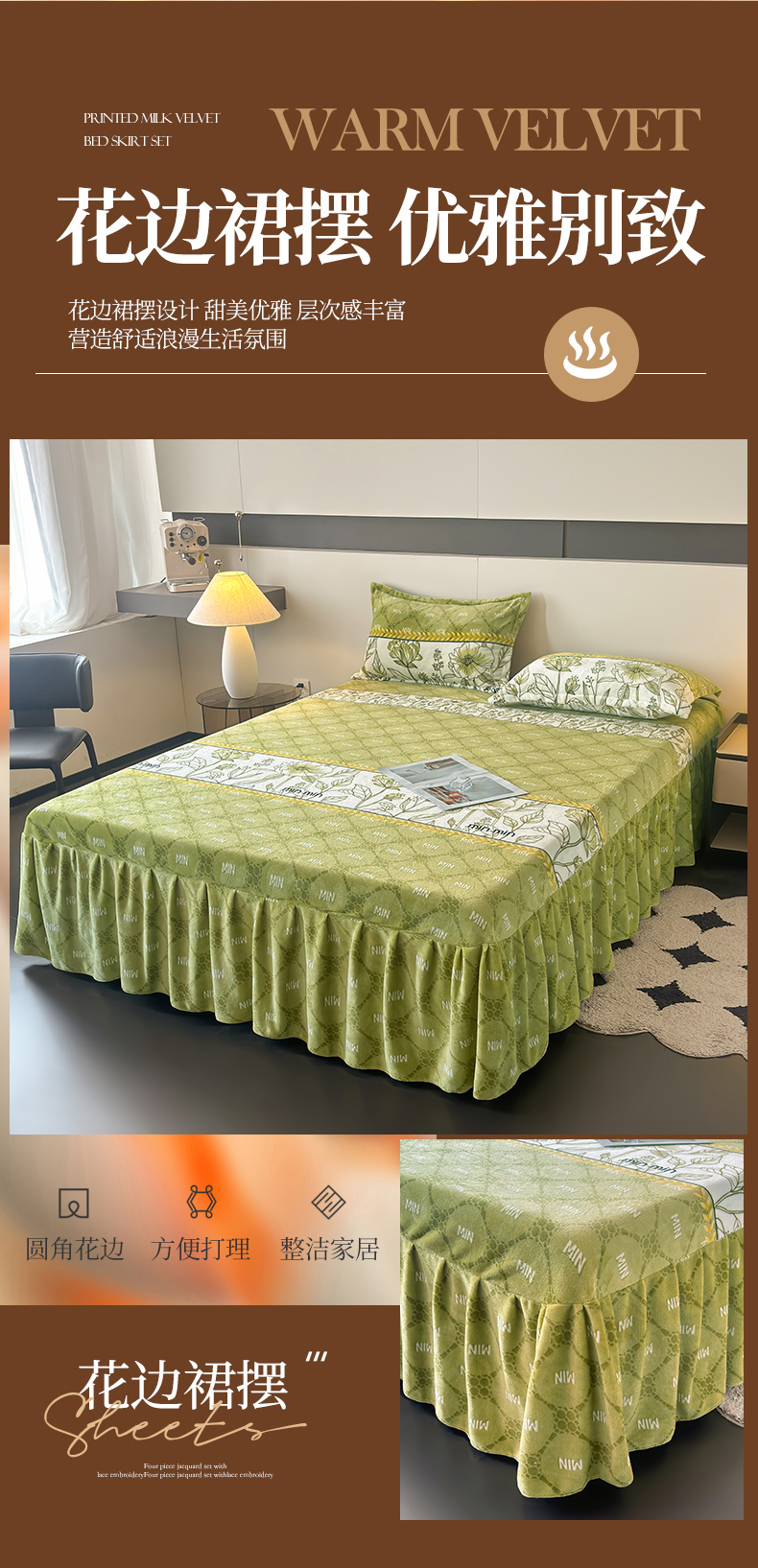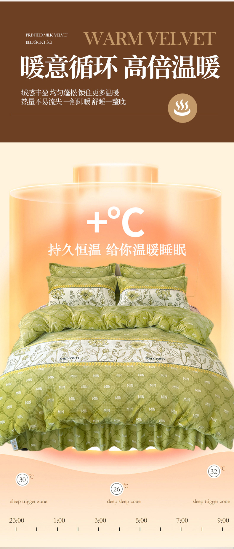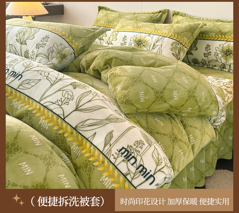当前位置: 91家纺网 > 商品网购 > 床品套件 > 四件套 > 牛奶绒四件套 > 董韵家纺 2025新款高克重全消光牛奶绒法莱绒金貂绒印花单品被套床裙四件套(提供买家秀)花之韵