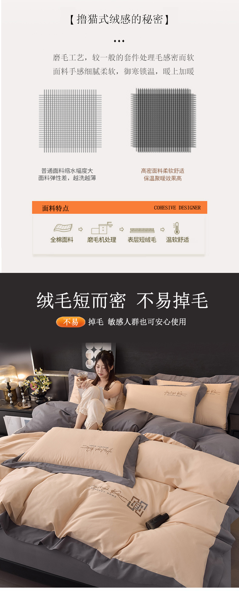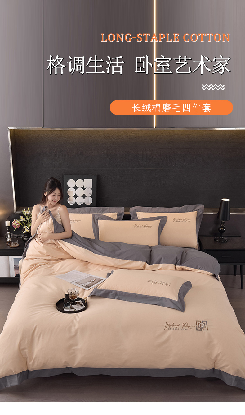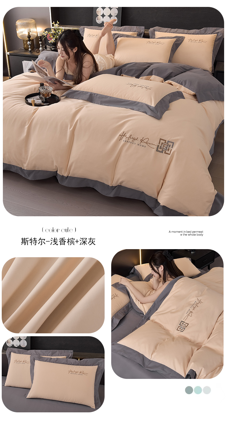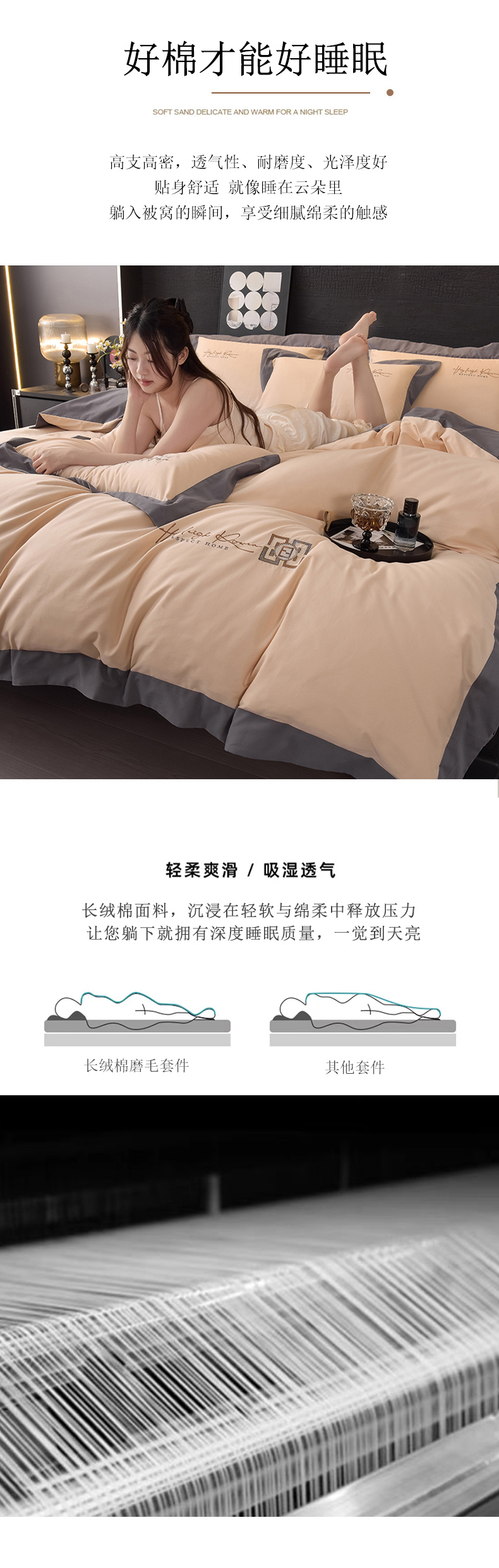 当前位置: 91家纺网 > 商品网购 > 床品套件 > 四件套 > 长绒棉四件套 > 瑞驰家纺 2024新款长绒棉磨毛四件套-斯特尔 斯特尔-浅香槟+深灰