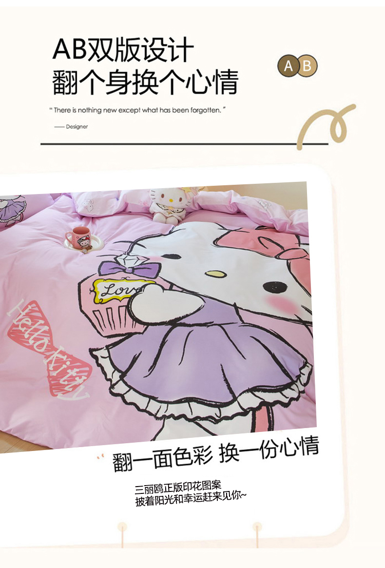蘭菲家纺 2024新款全棉大版卡通三丽鸥单品被套 咪咪