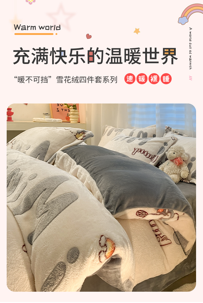 当前位置: 91家纺网 > 商品网购 > 床品套件 > 四件套 > 其它四件套 > 韩巢家纺 2024新款加厚雪花绒印花四件套-风格一(提供卖家秀) 米菲