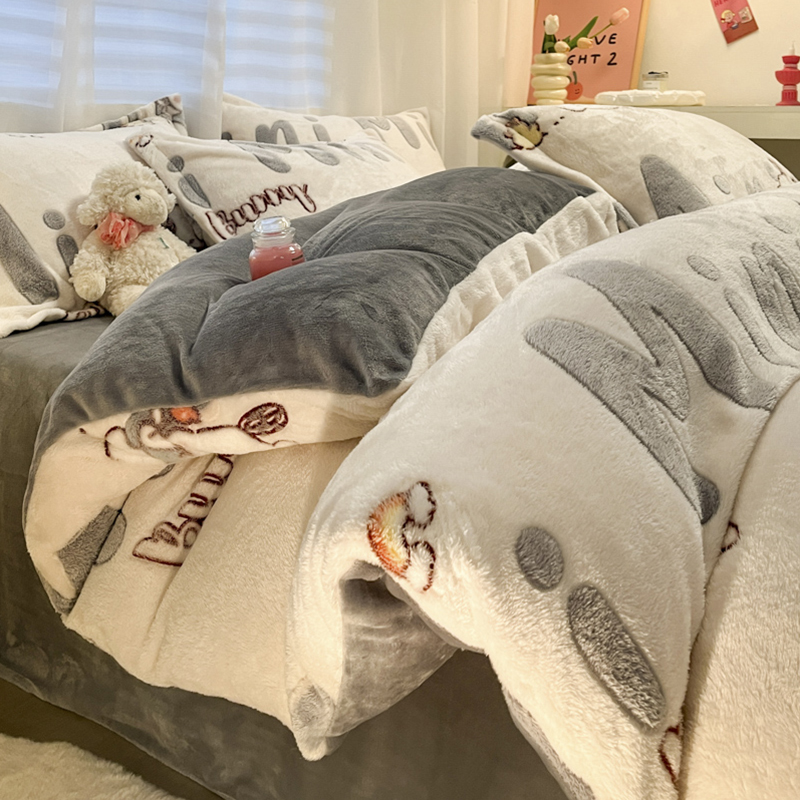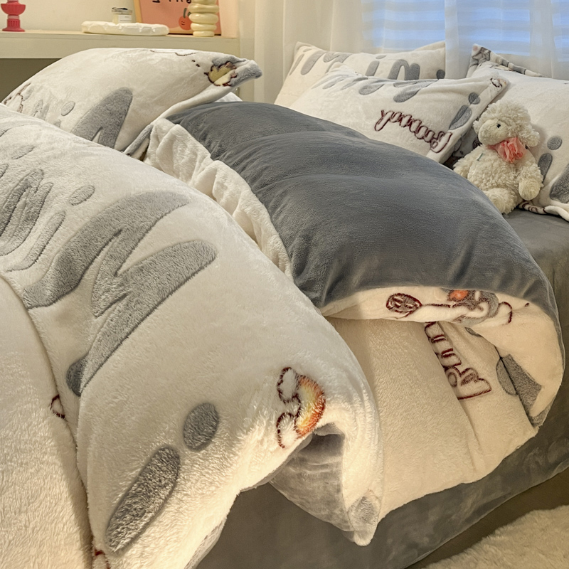 (总)韩巢家纺 2025新款高克重雪花绒牛奶绒四件套系列,郁金香,爱心熊(绿),巴丽娜,大白鹅,大耳朵兔,蝶雅,花花世界,灰色轨迹,米菲,七彩,田园兔(黄),小怪兽,幸运兔,英伦熊