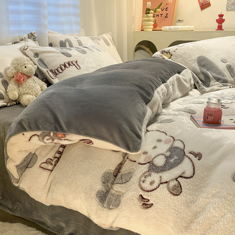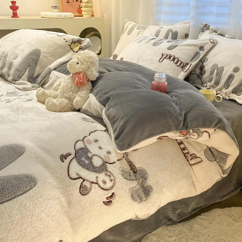 韩巢家纺 2024新款加厚雪花绒印花单件被套-风格一(提供卖家秀 ) 米菲