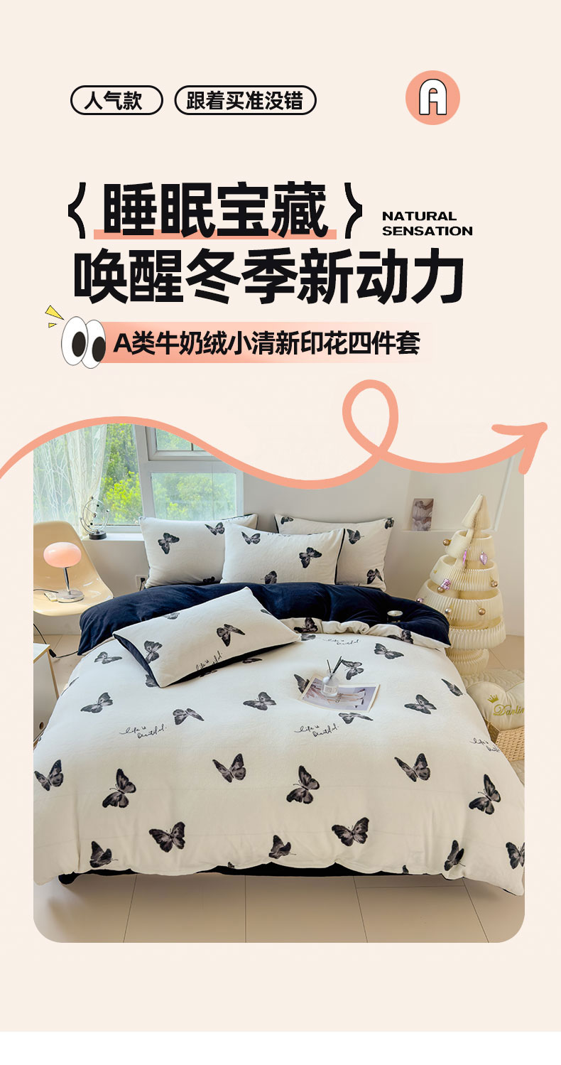 当前位置: 91家纺网 > 商品网购 > 床品套件 > 四件套 > 牛奶绒四件套 > 灰鲸 2025新款牛奶绒小清新印花四件套 温妮莎