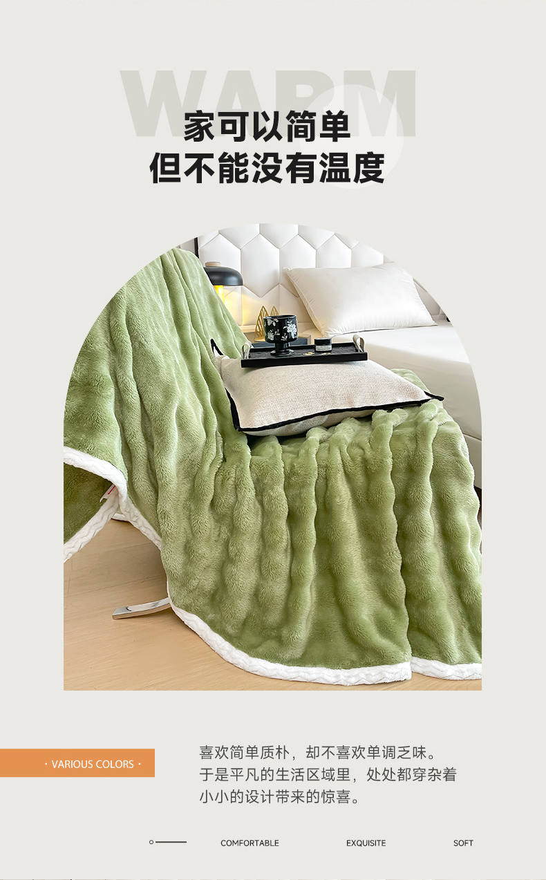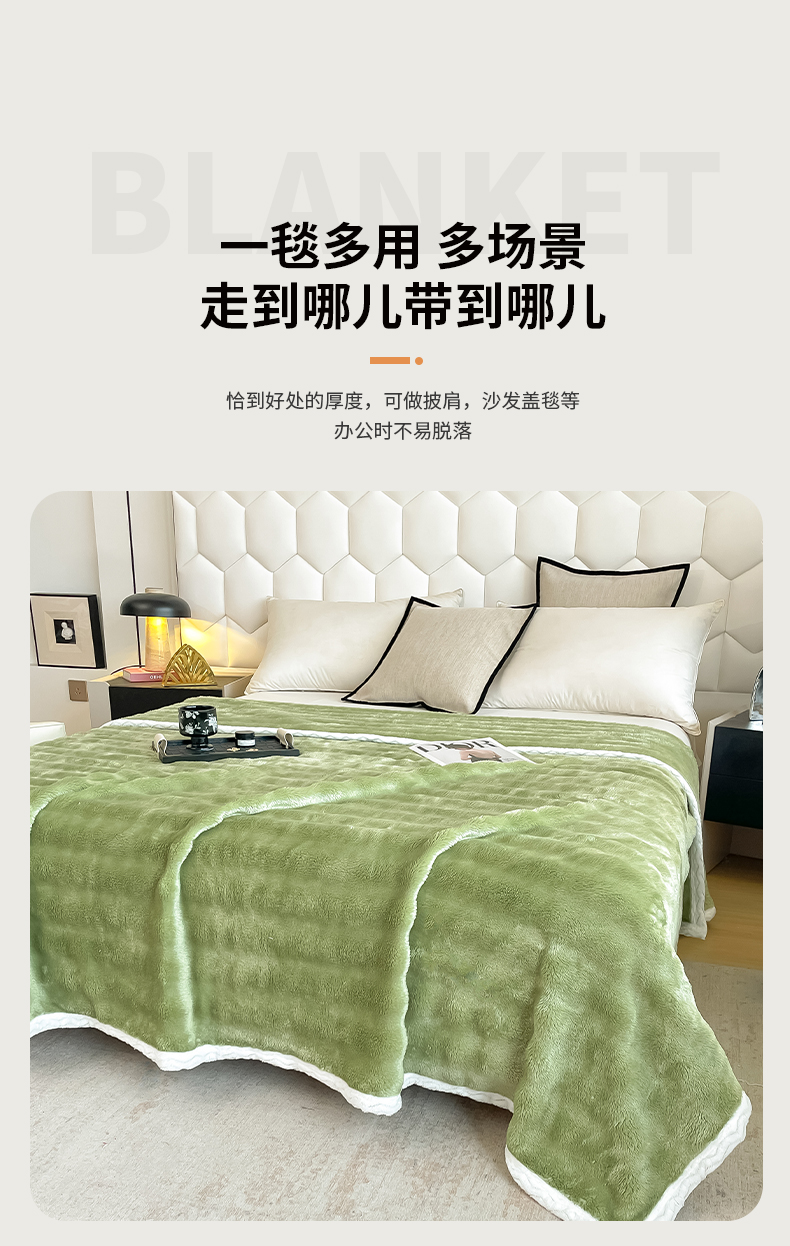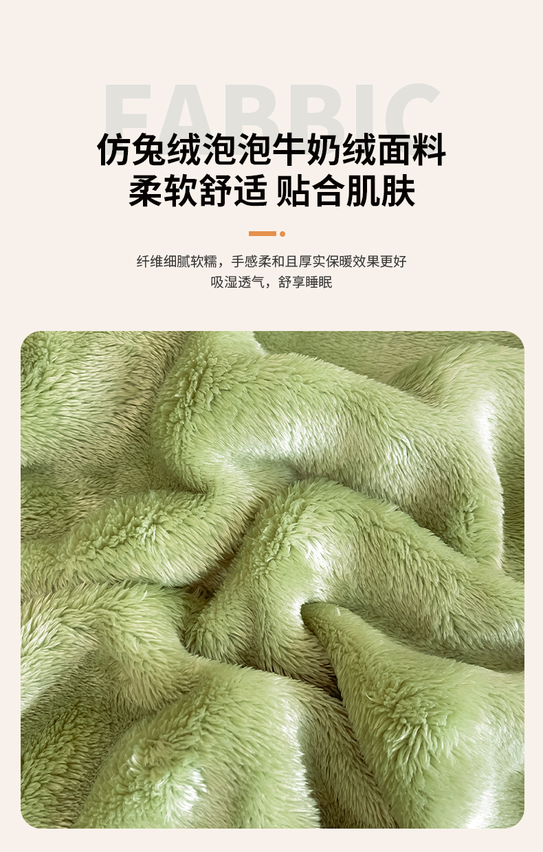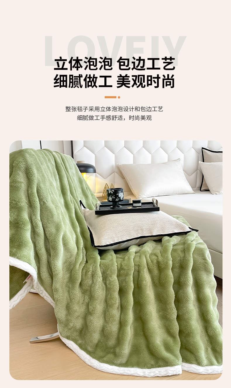 商品名称:梵克保罗 2024新款仿兔毛泡泡绒牛奶绒毛毯盖毯包边毛毯 奶绿