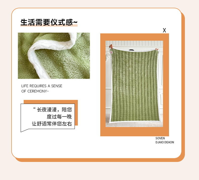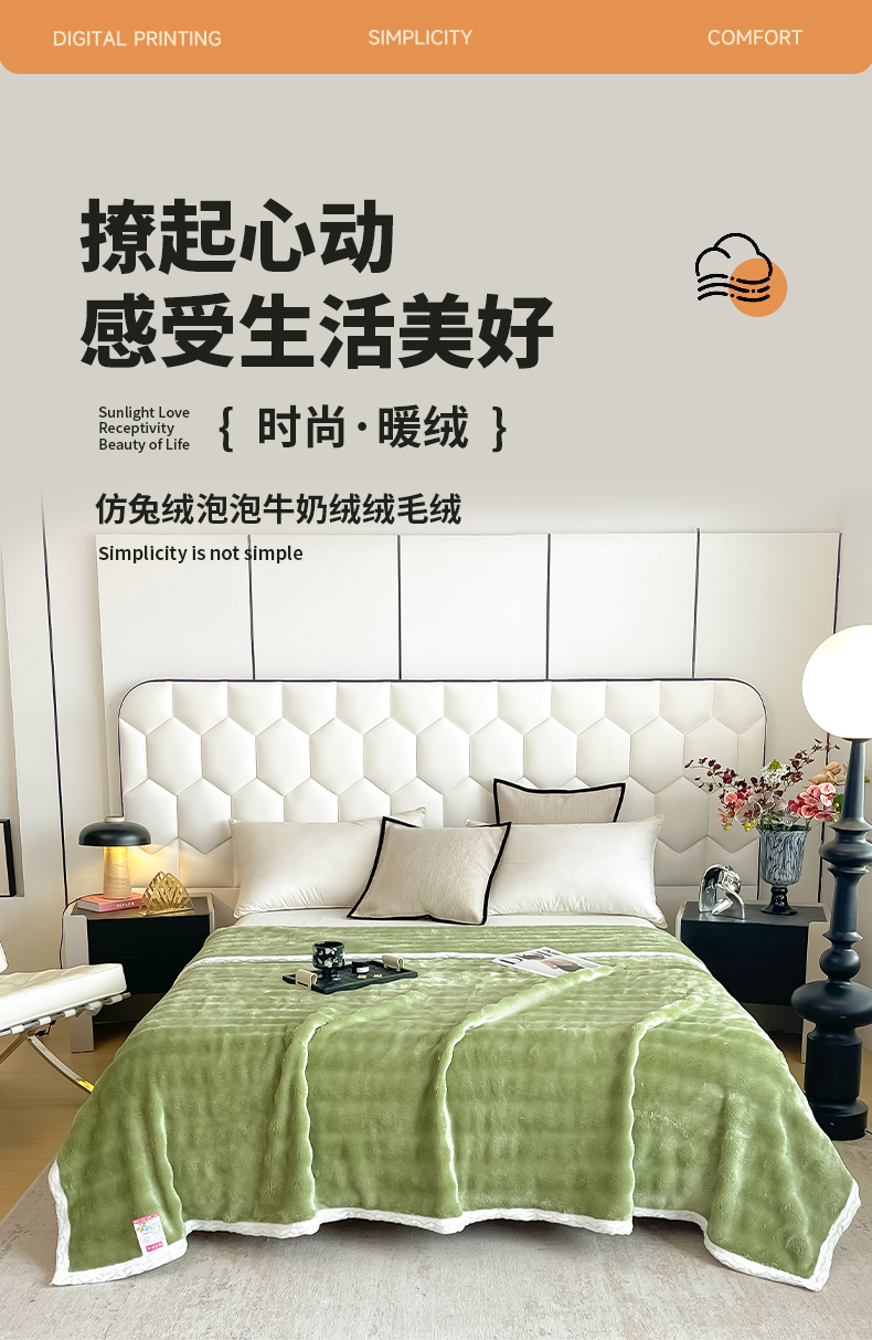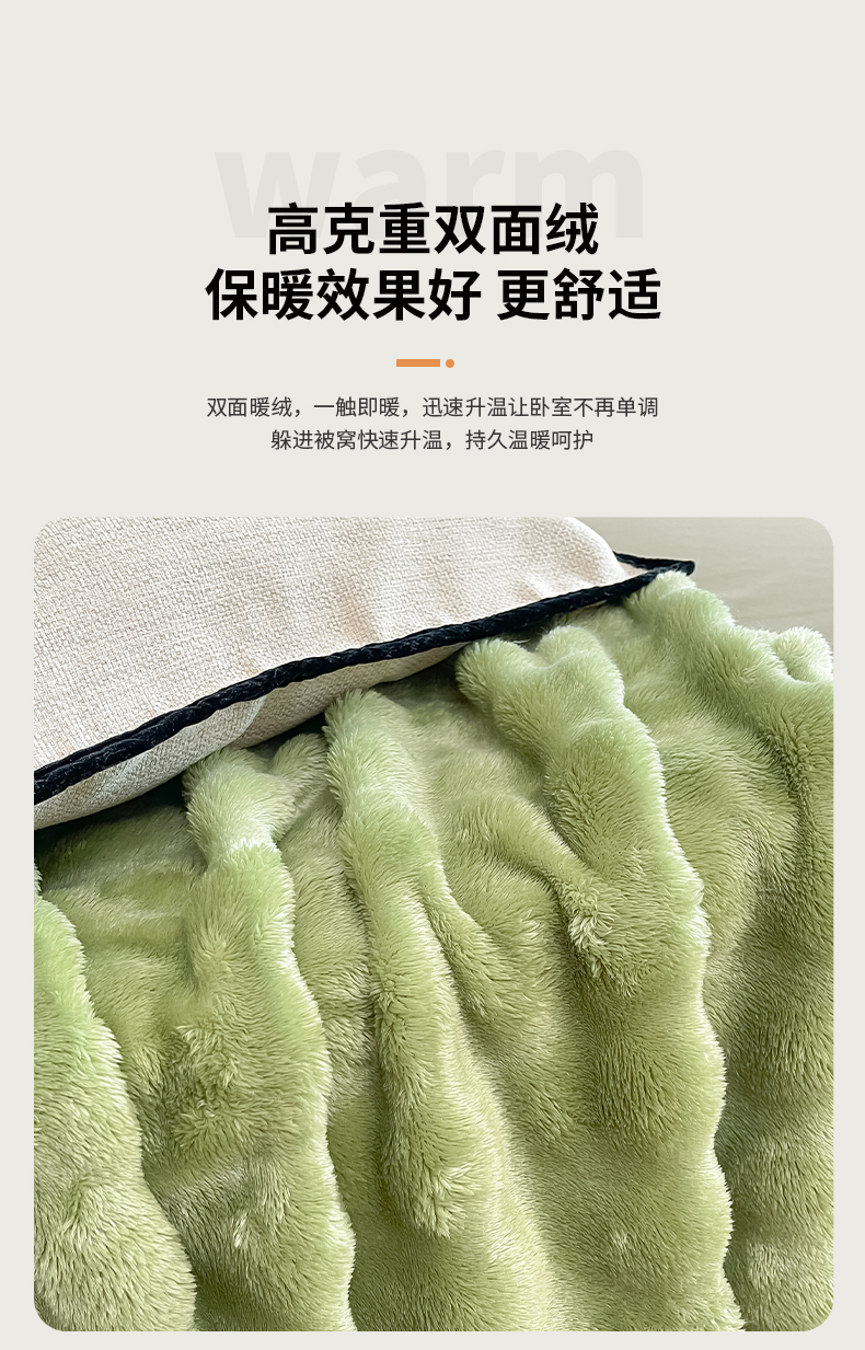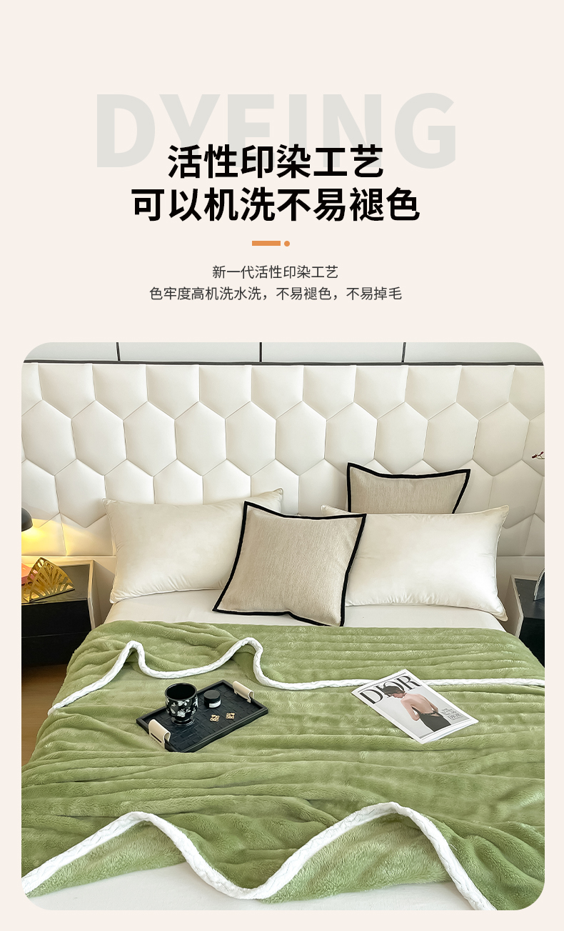 商品名称:梵克保罗 2024新款仿兔毛泡泡绒牛奶绒毛毯盖毯包边毛毯 奶绿