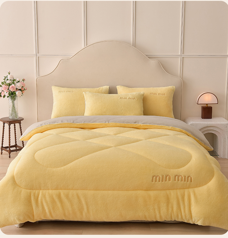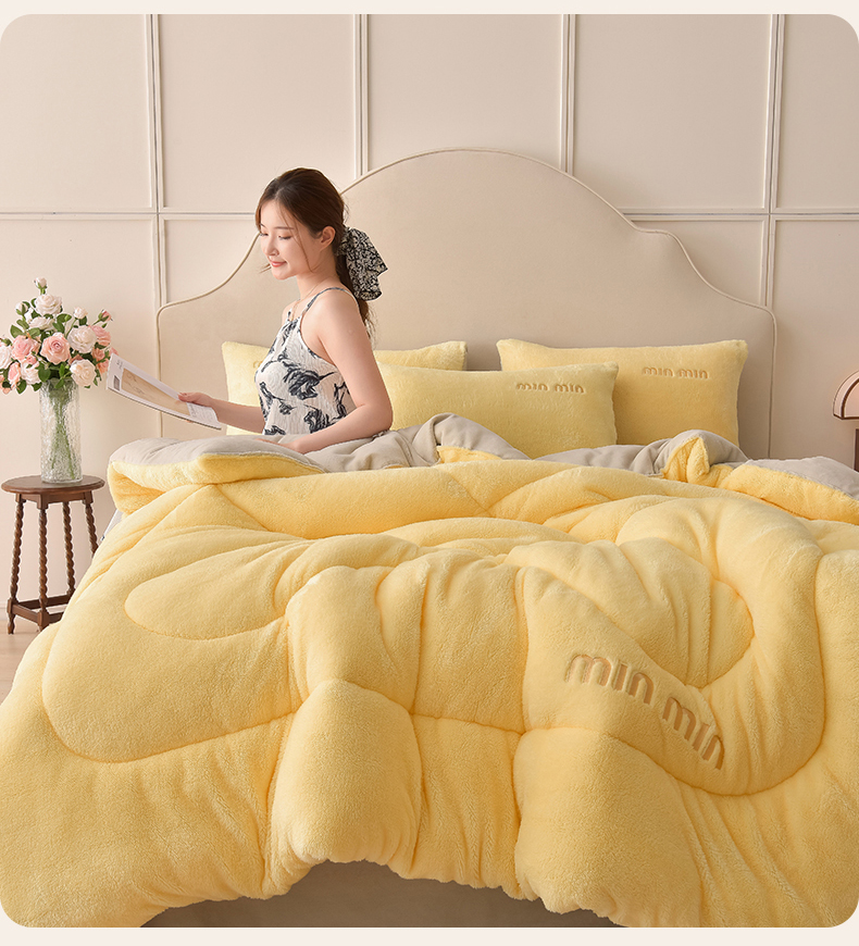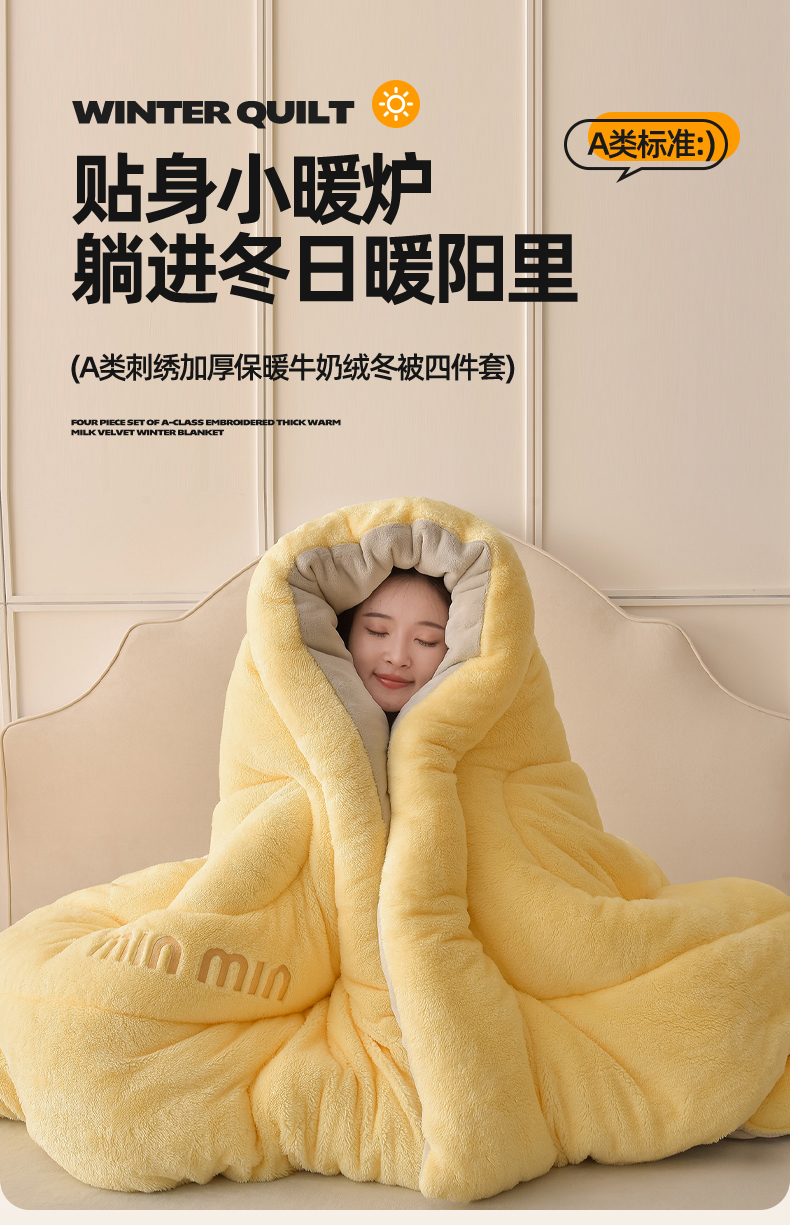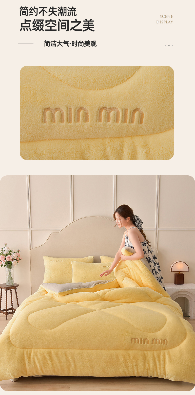 笙意家纺 2025新款A类刺绣加厚保暖牛奶绒冬被四件套 亦暖-暖黄+米灰