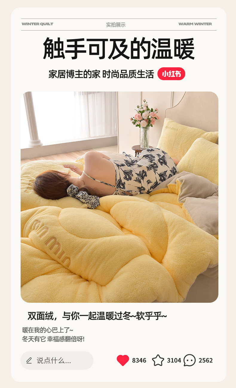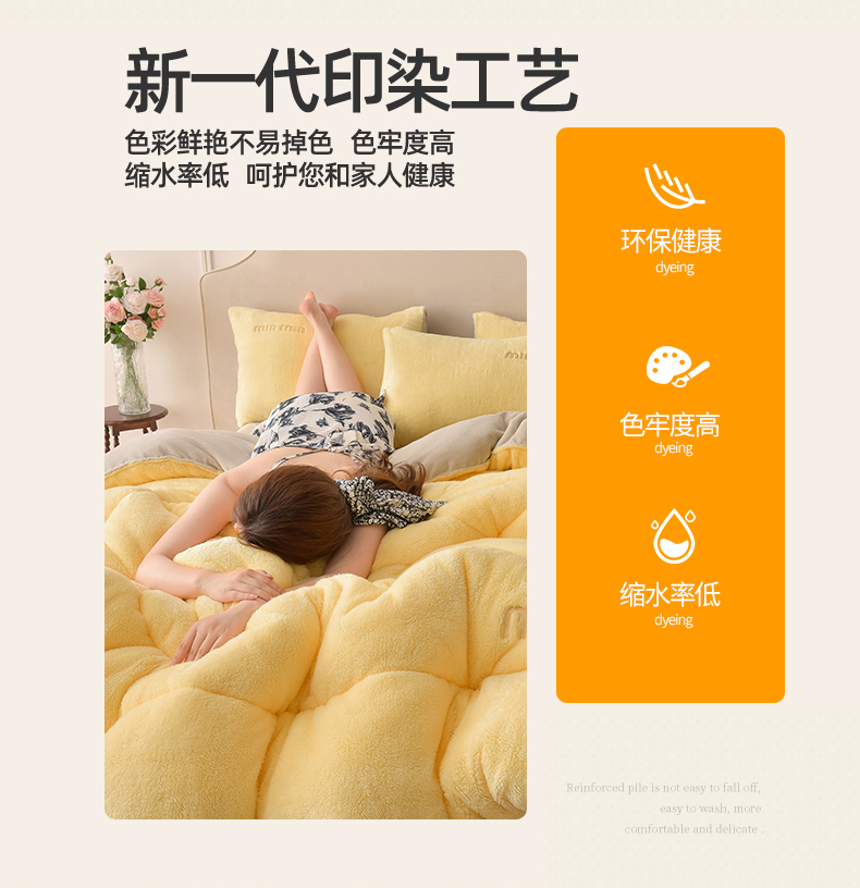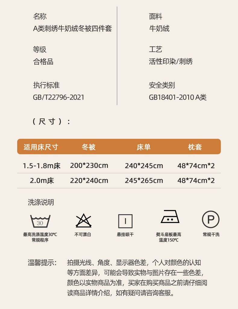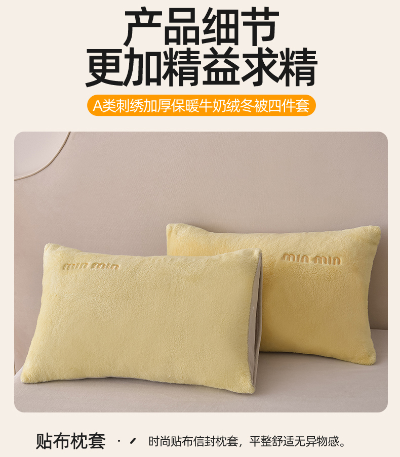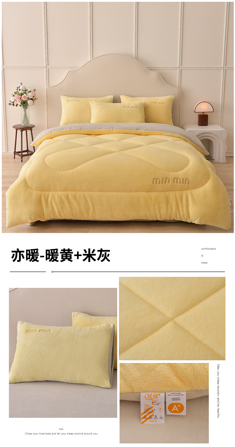 商品名称:笙意家纺 2025新款A类刺绣加厚保暖牛奶绒冬被四件套 亦暖-暖黄+米灰