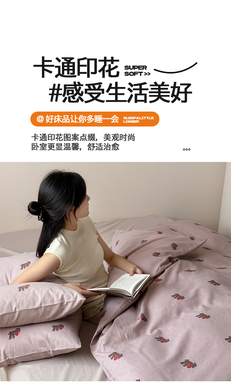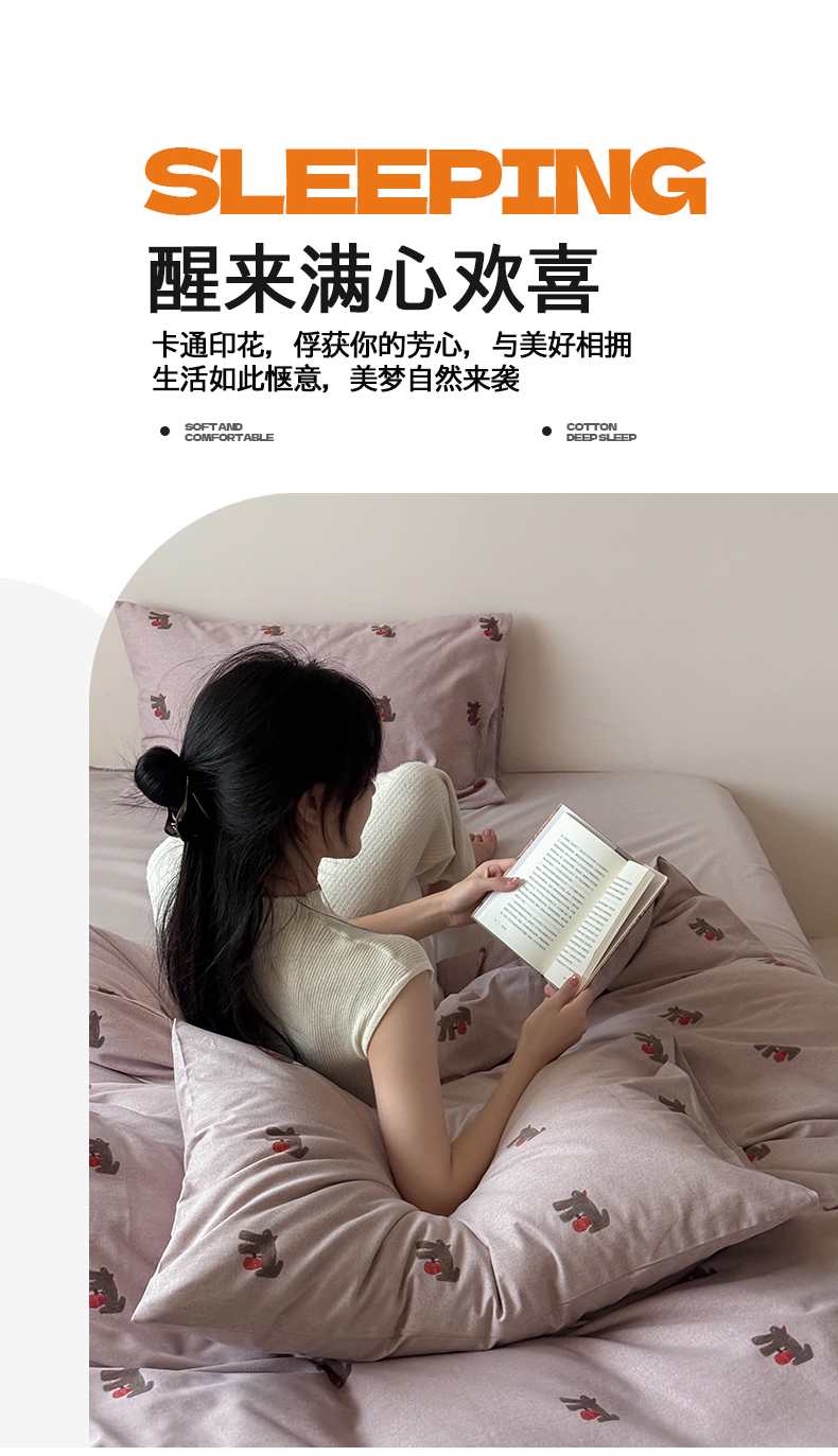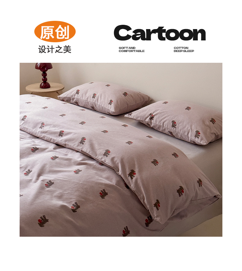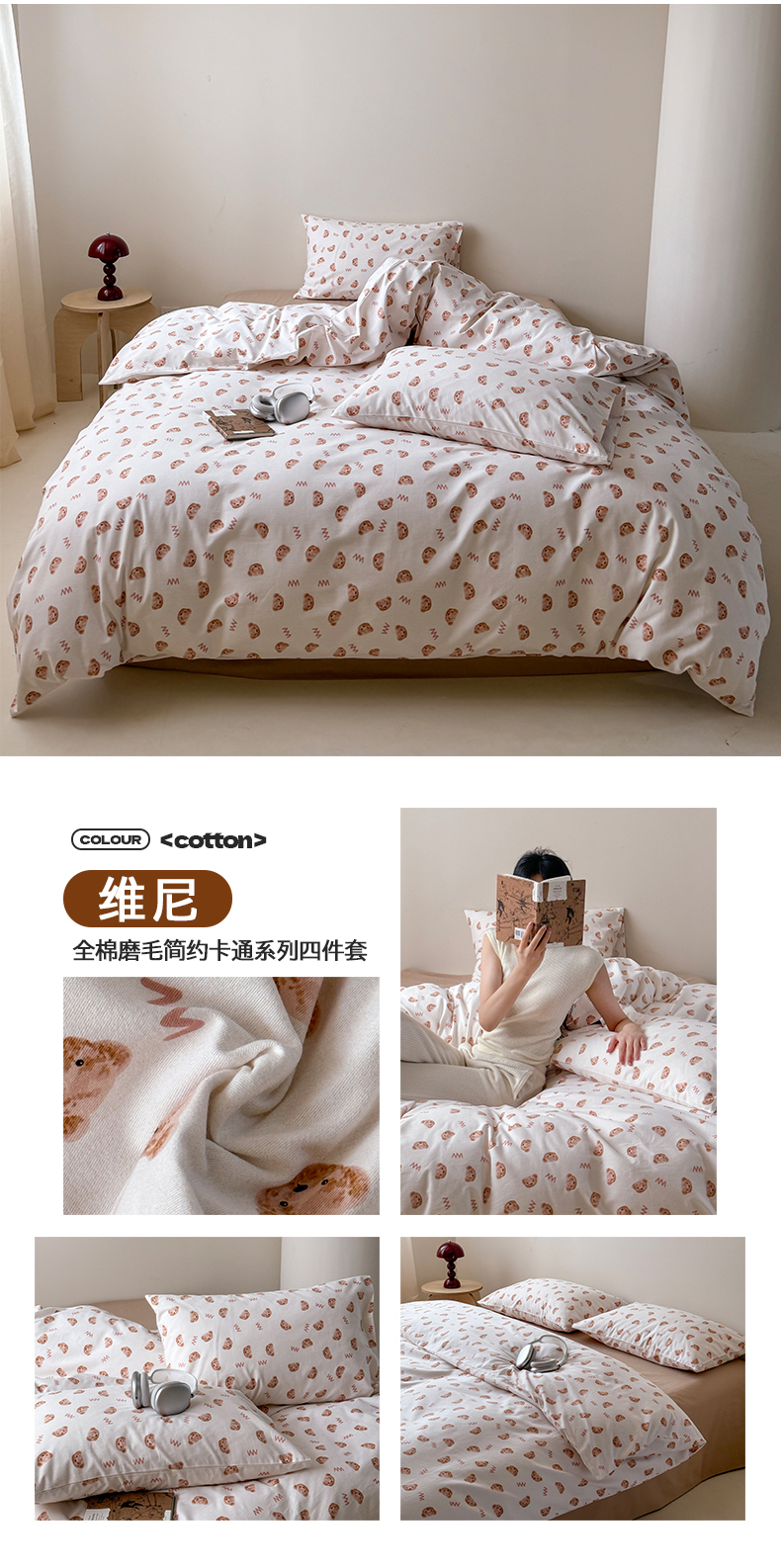(总)窝米 2024新款全棉磨毛简约卡通系列四件套