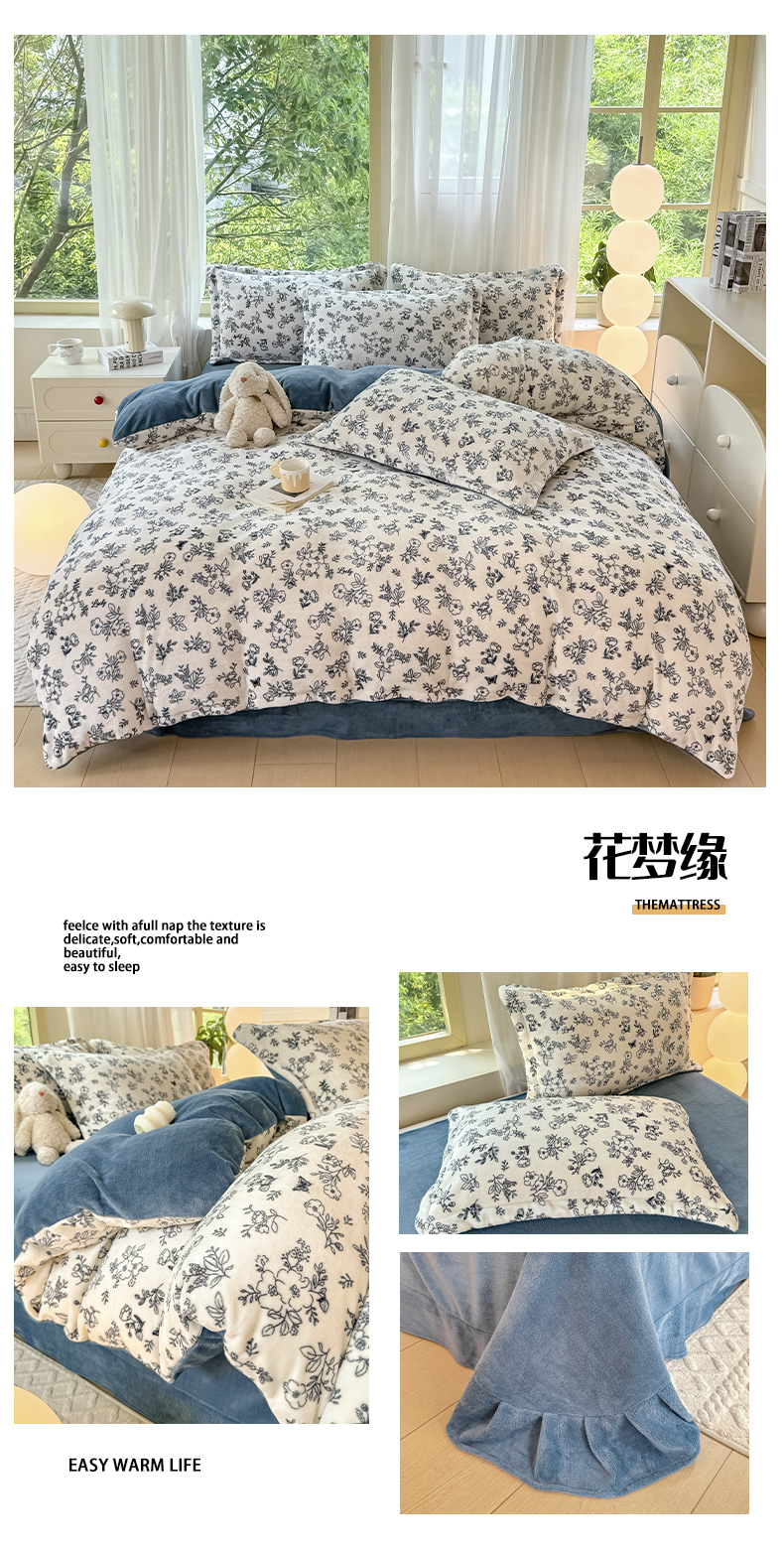 商品名称:富之航家纺 2024新款高克重小清新牛奶绒四件套 花梦缘