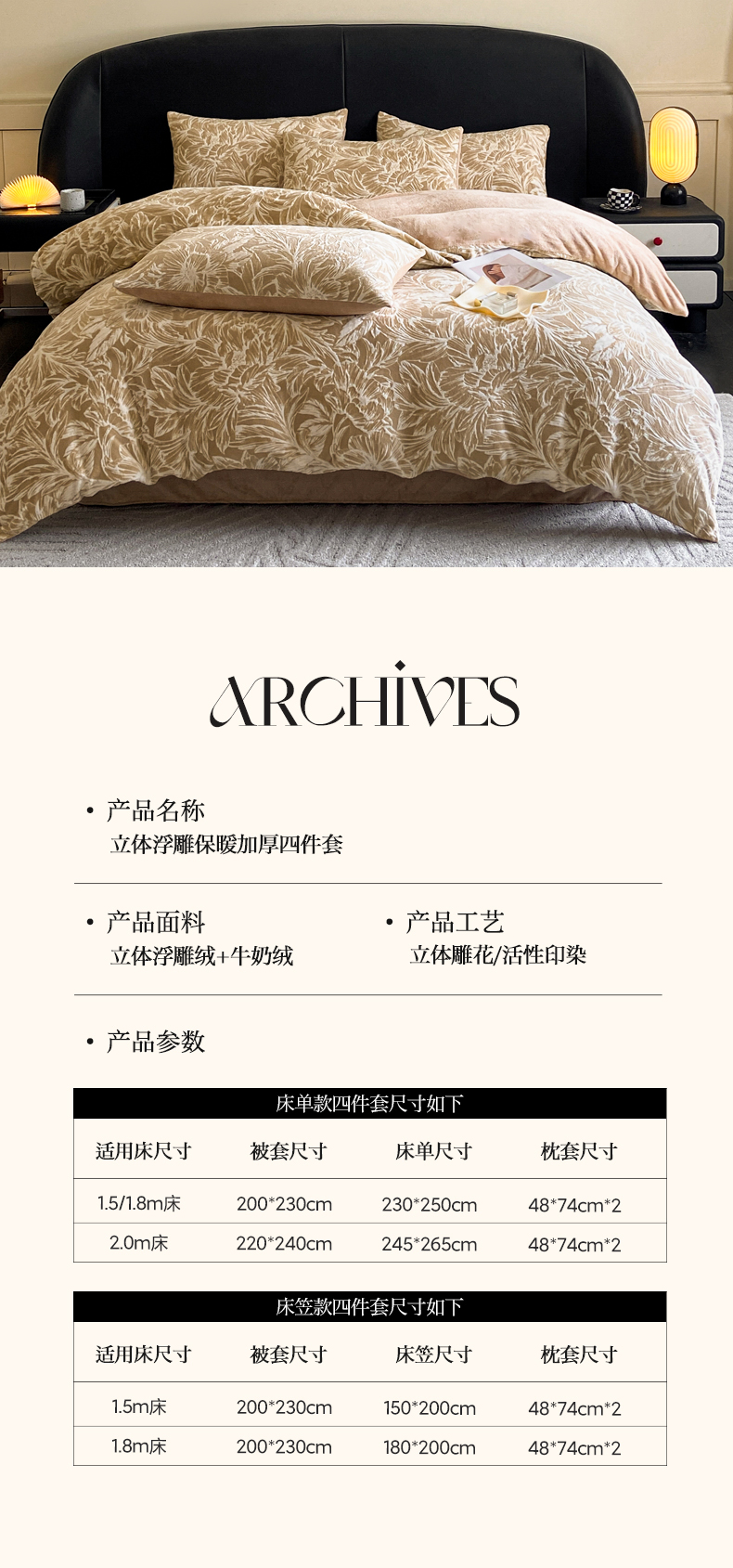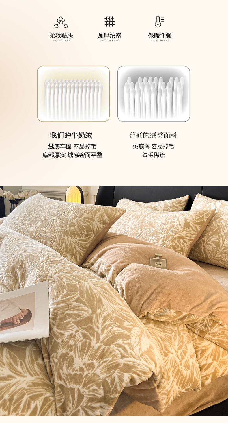 商品名称:2024新款立体浮雕保暖加厚牛奶绒四件套 暖煦