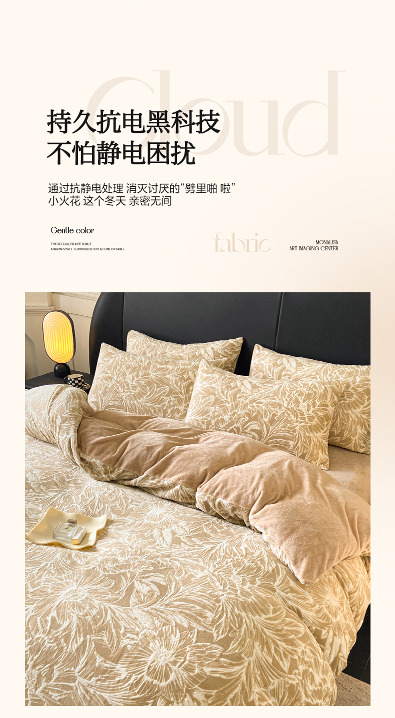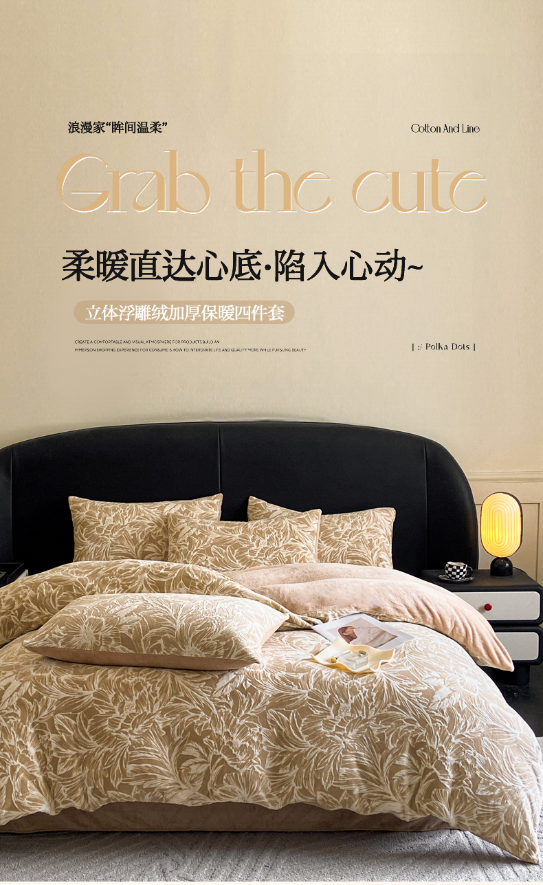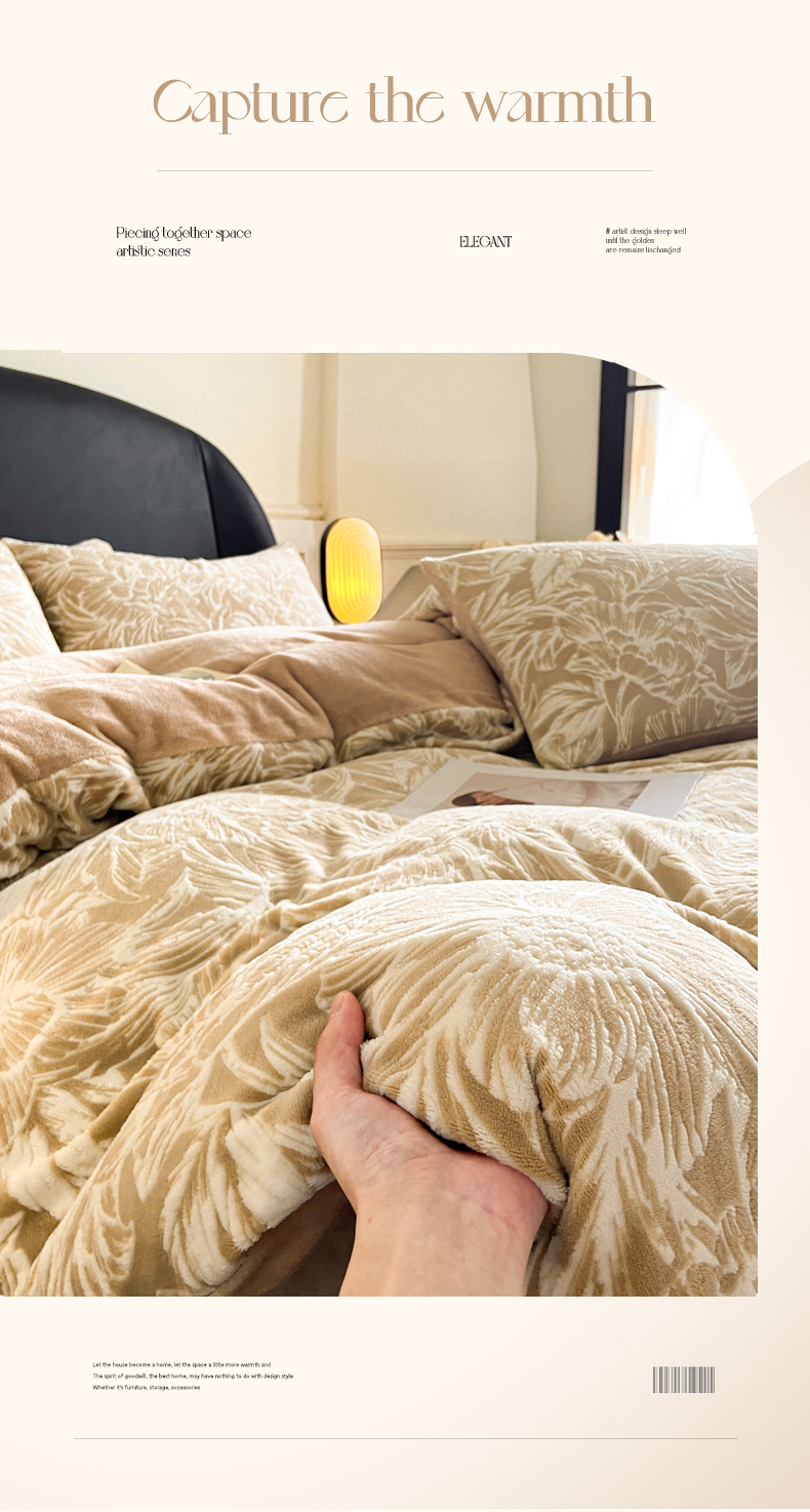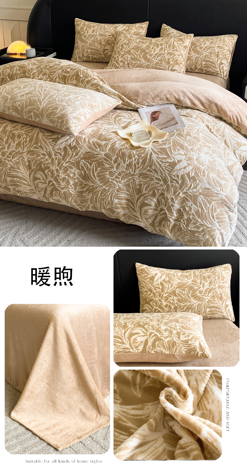 2024新款立体浮雕保暖加厚牛奶绒四件套 暖煦