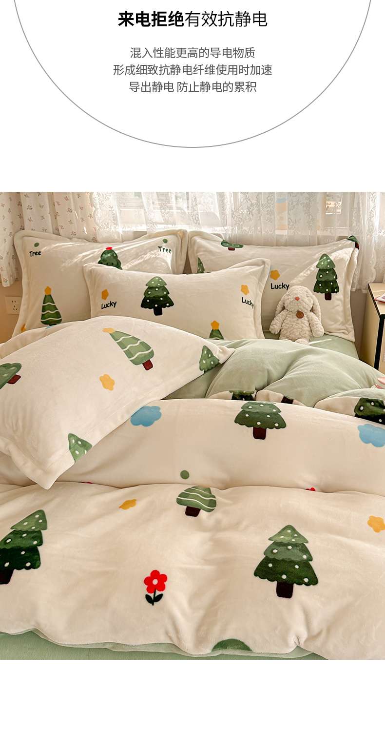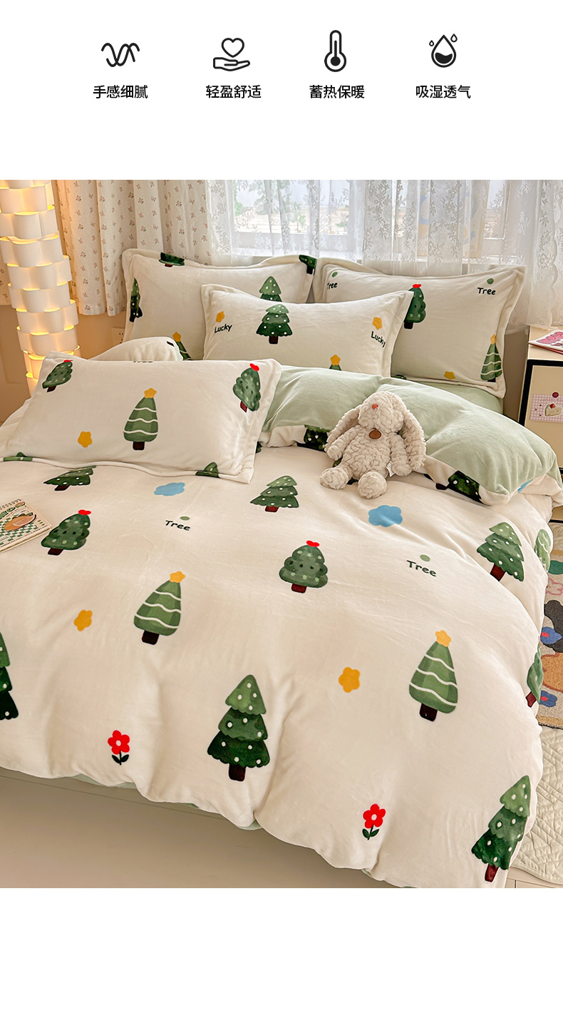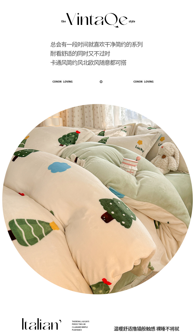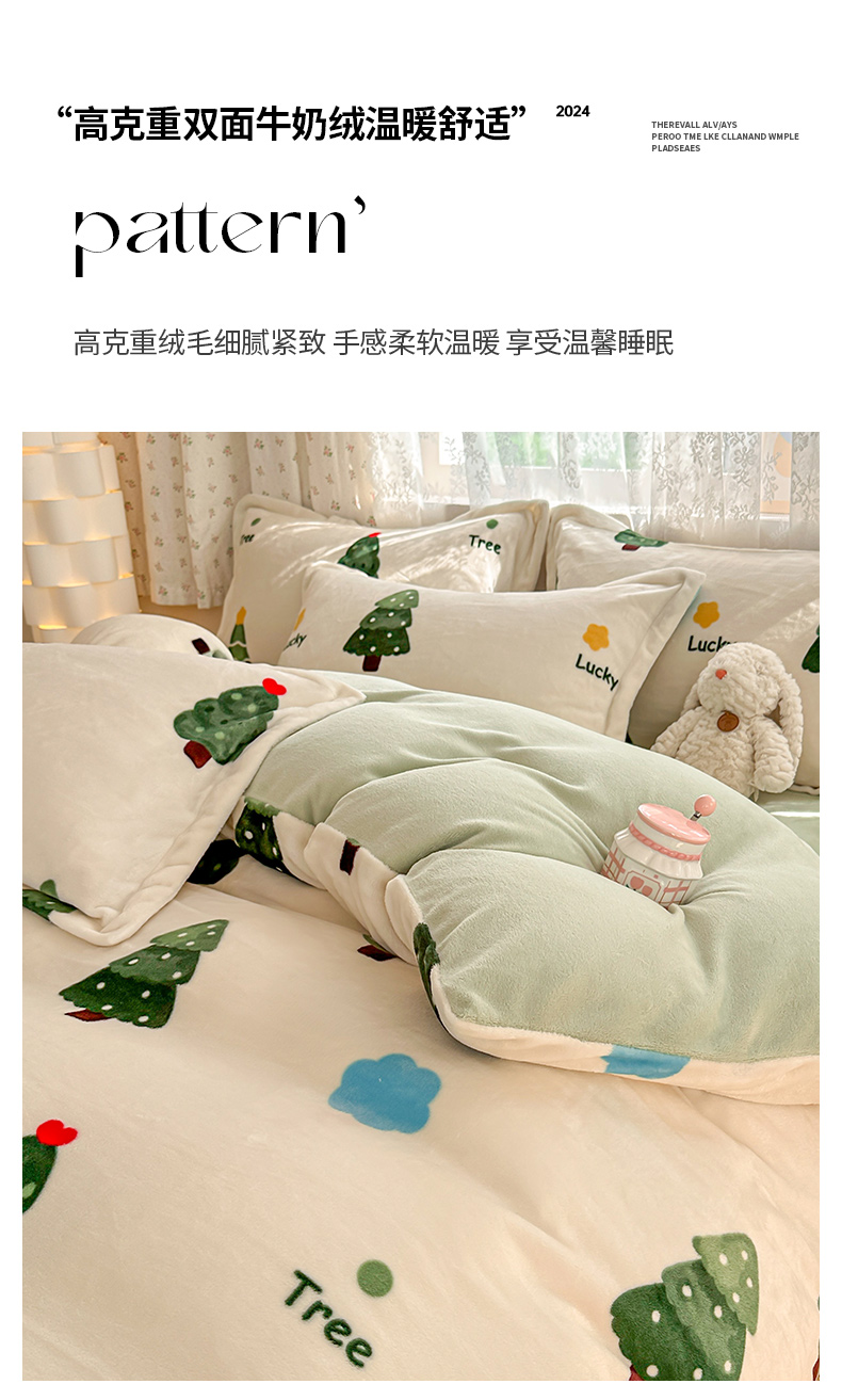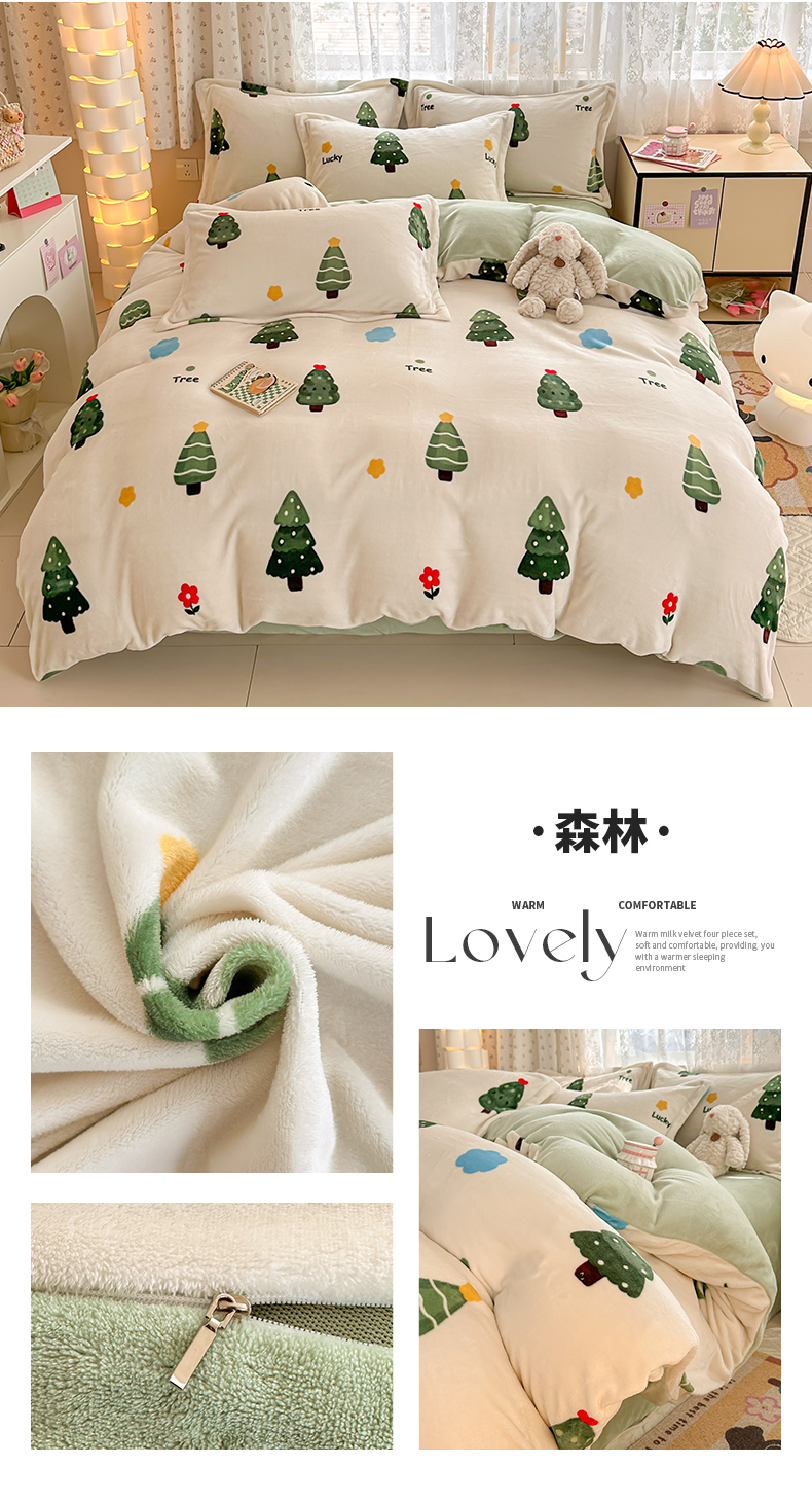 商品名称:全季家居 2024新款A类小清新印花牛奶绒高克重加厚保暖被套单件 森林
