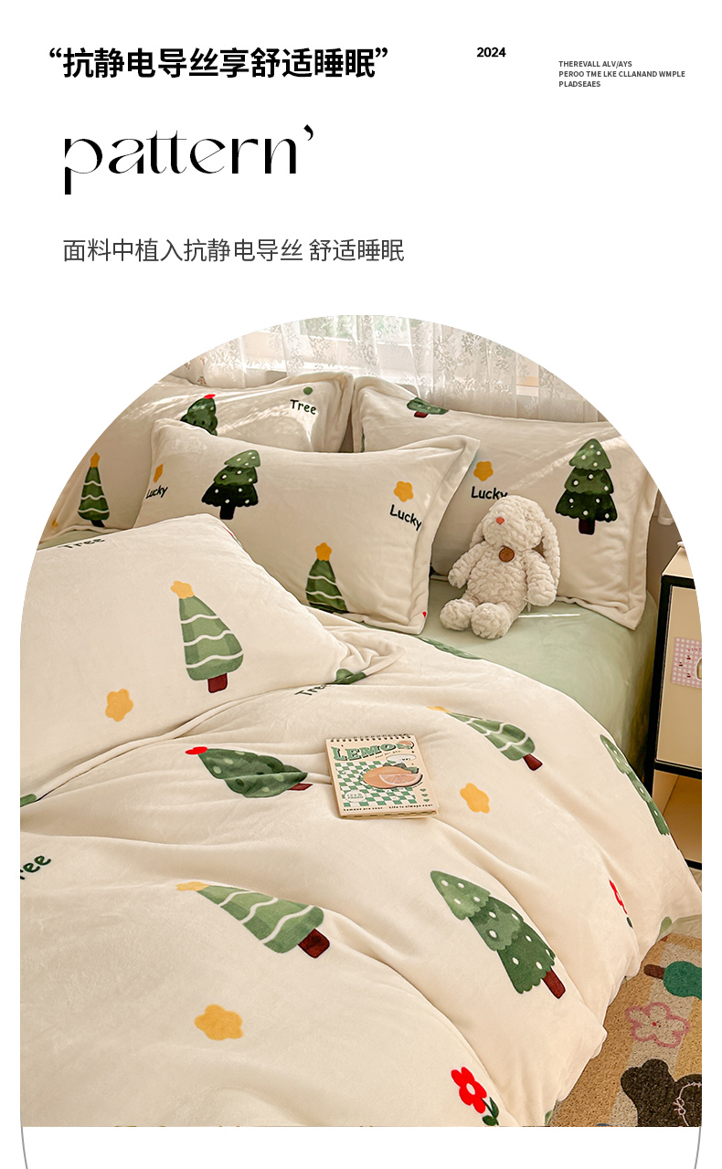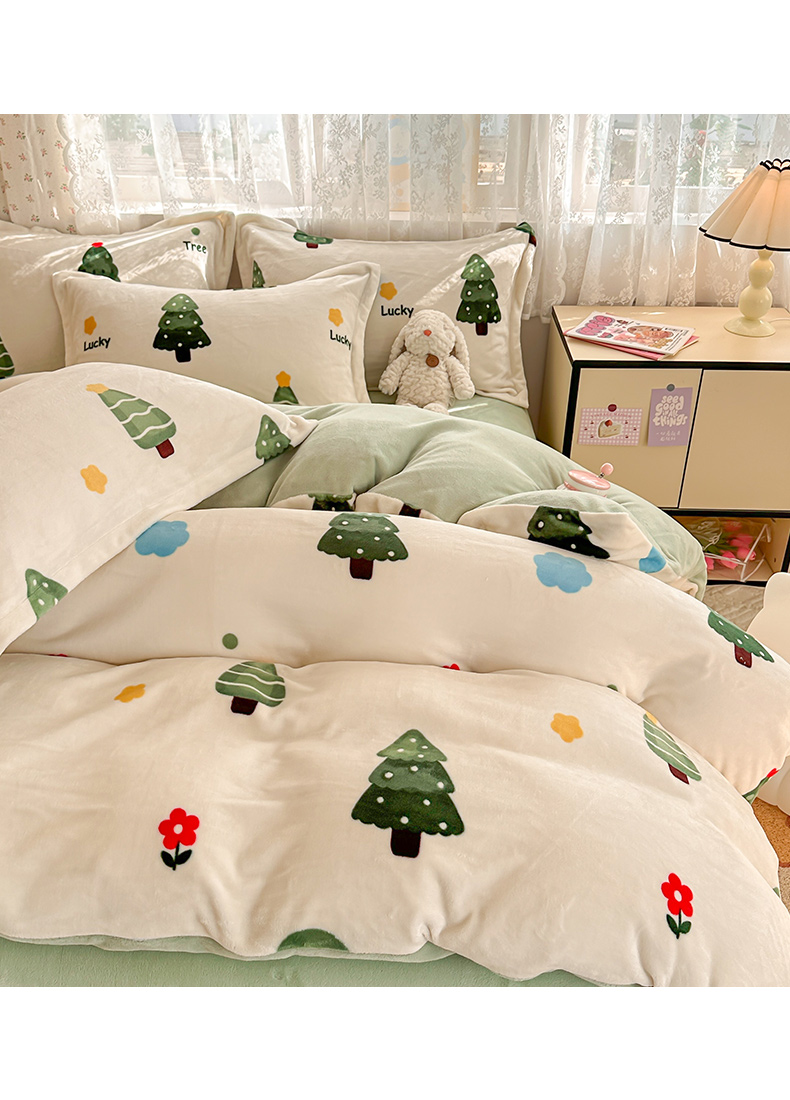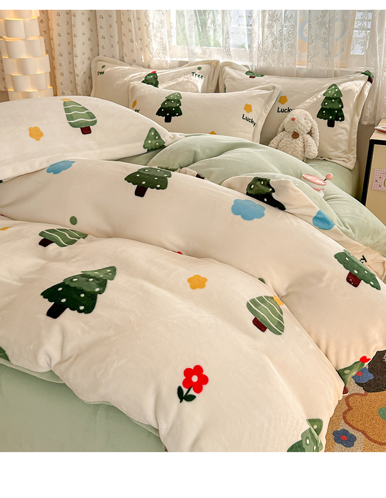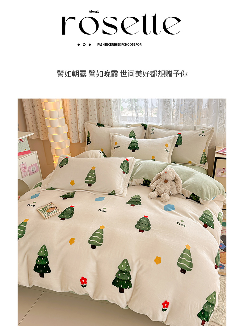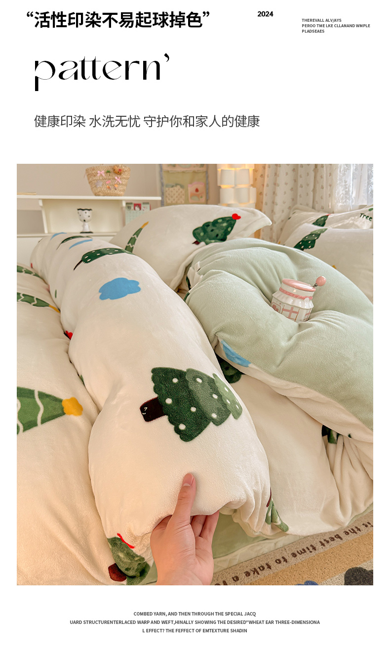 商品名称:全季家居 2024新款A类小清新印花牛奶绒高克重加厚保暖被套单件 森林
