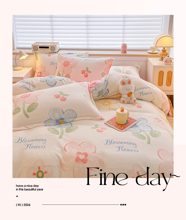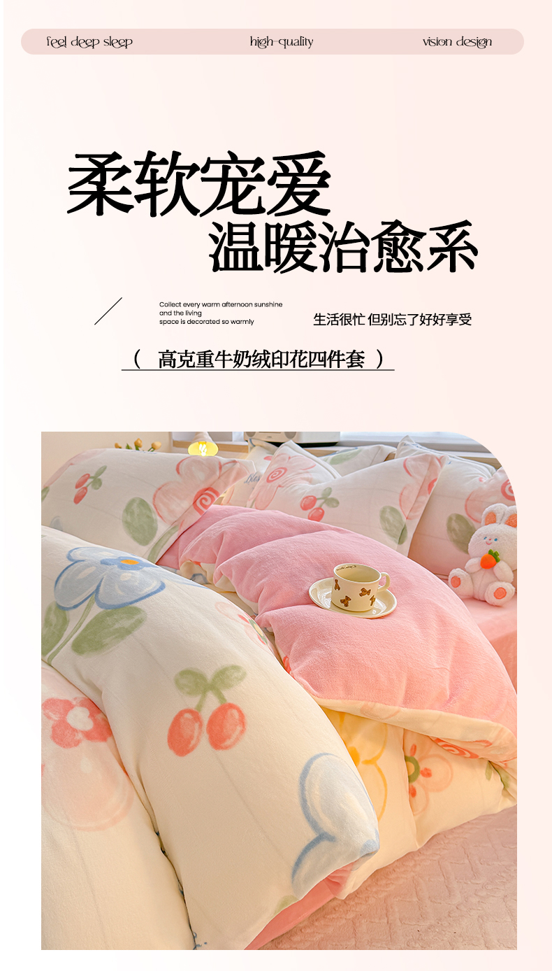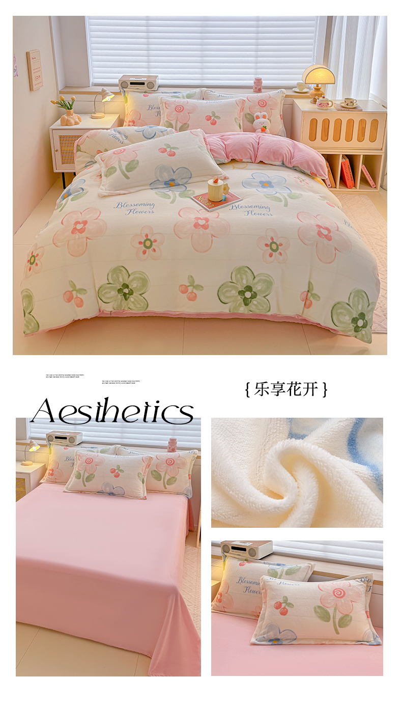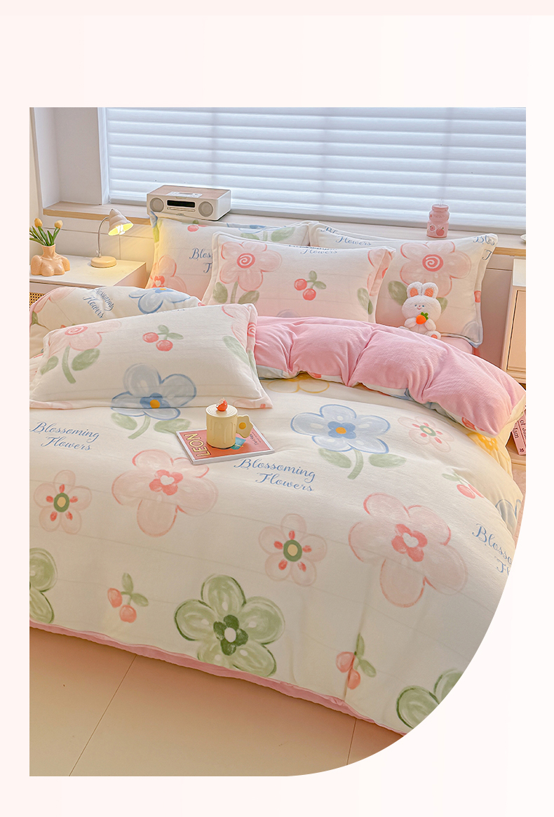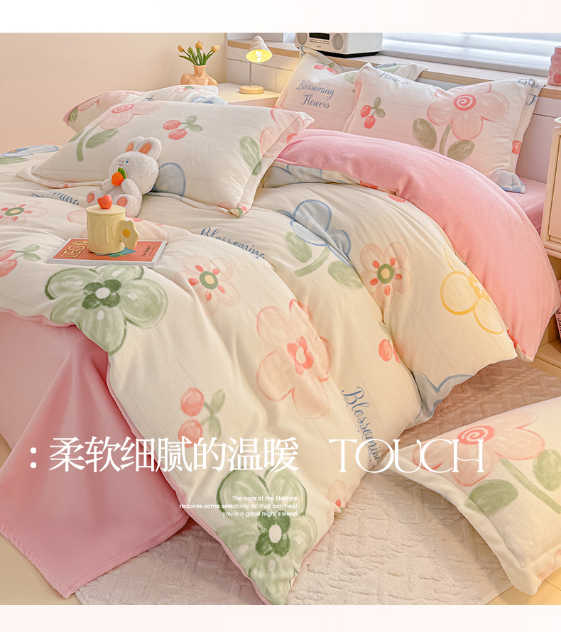 当前位置: 91家纺网 > 商品网购 > 床品套件 > 四件套 > 牛奶绒四件套 > 妖妖家纺 2024新款高克重200克印花牛奶绒四件套 乐享花开