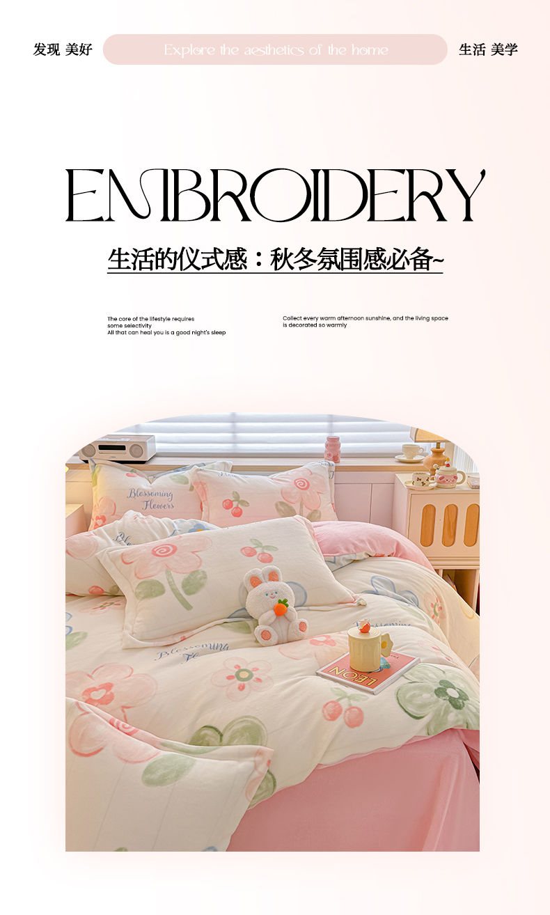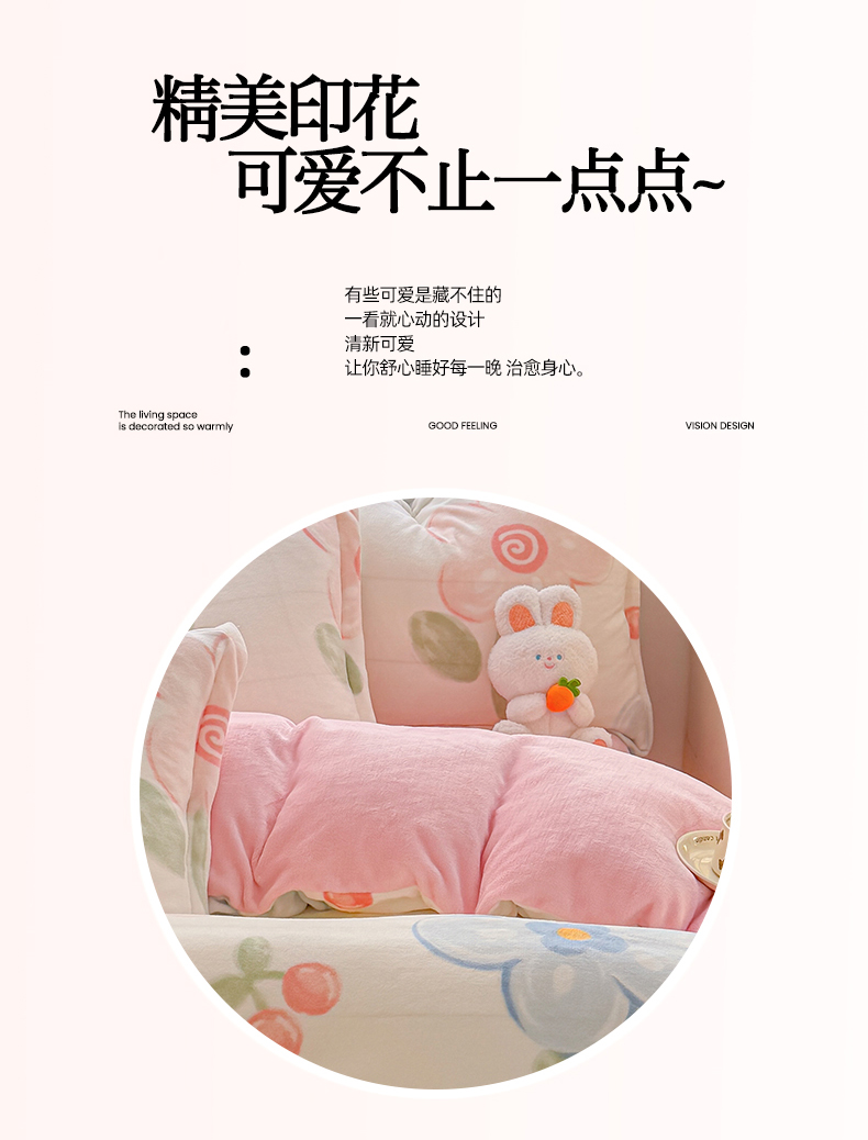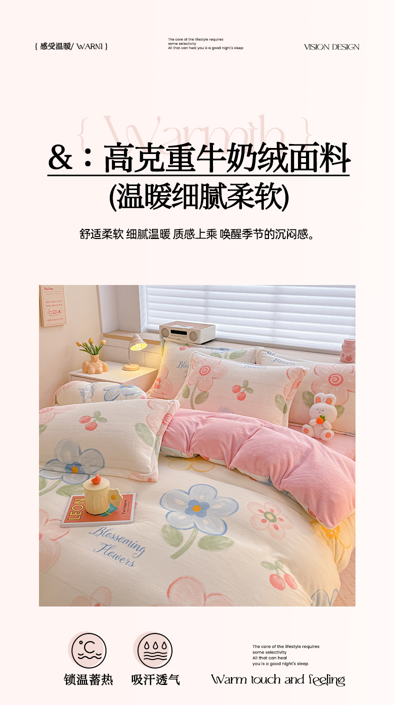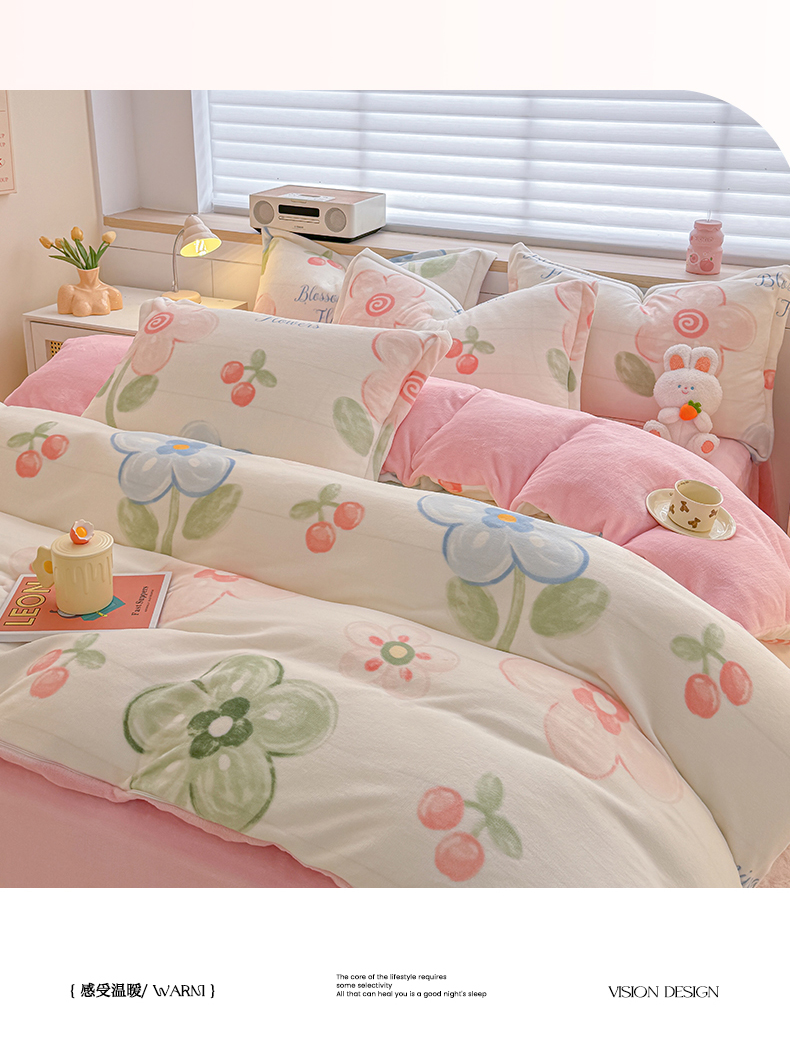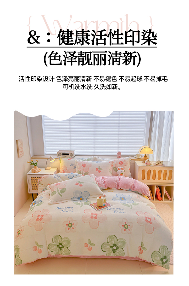 当前位置: 91家纺网 > 商品网购 > 床品套件 > 四件套 > 牛奶绒四件套 > 妖妖家纺 2024新款高克重200克印花牛奶绒四件套 乐享花开