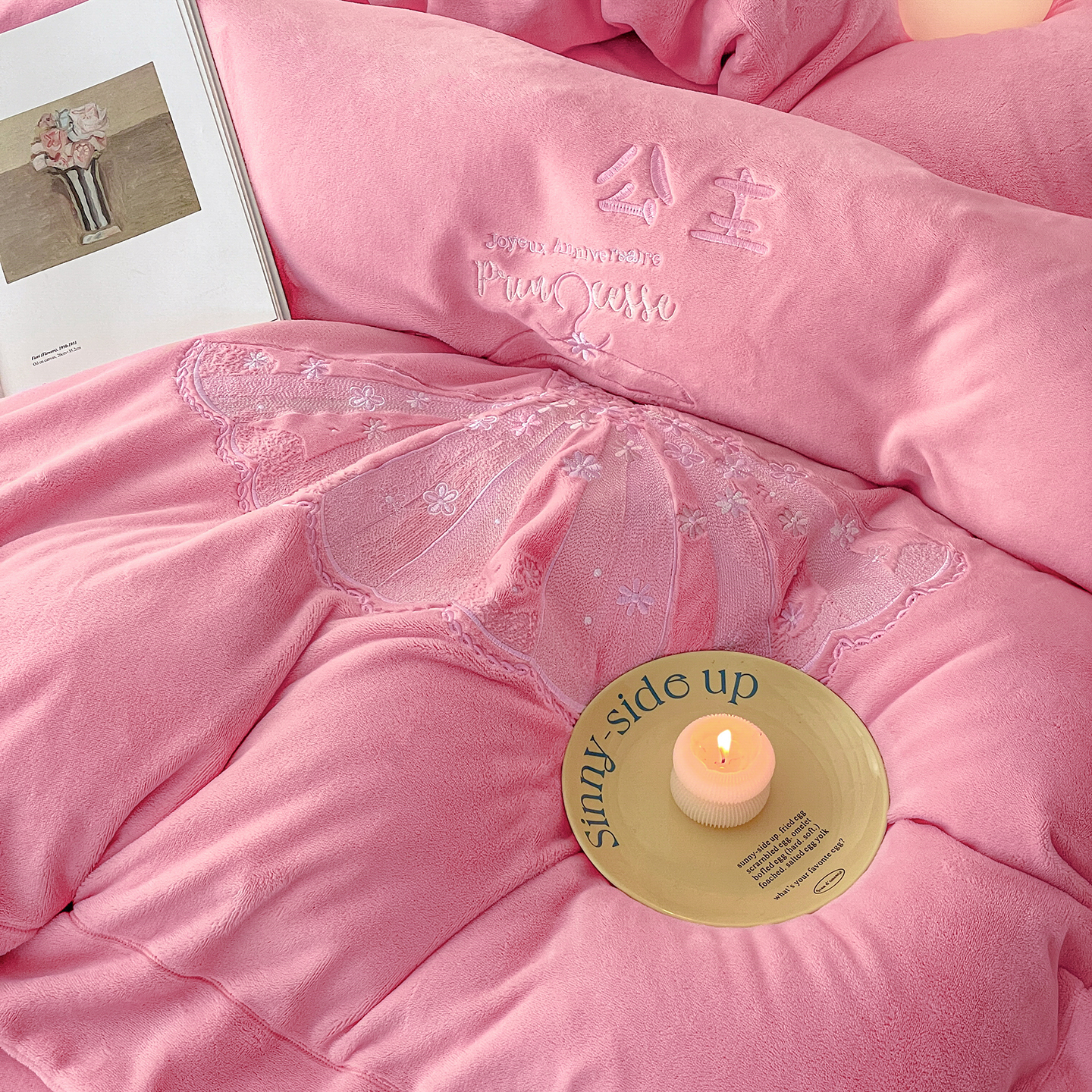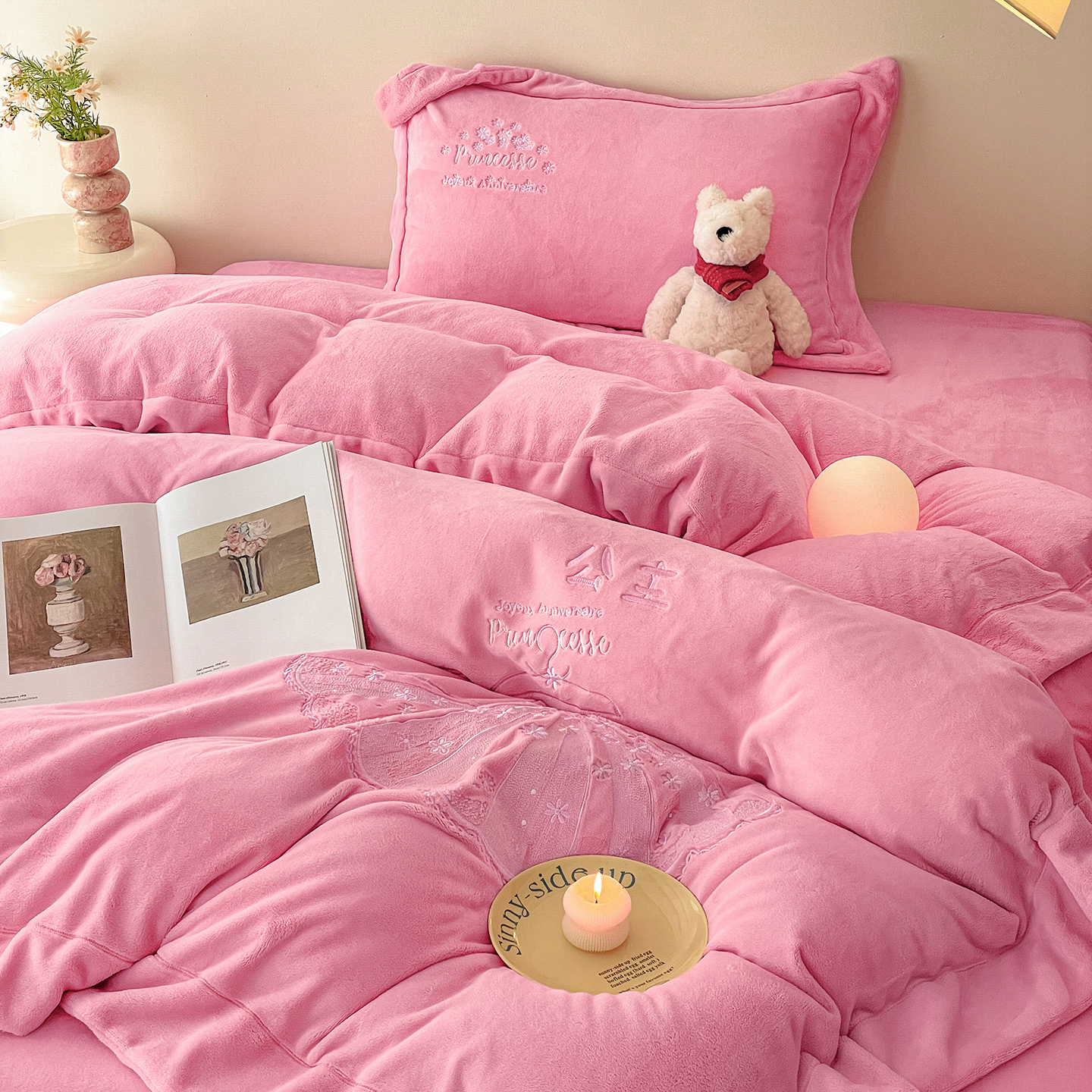 新方向 2025新款全消光A类牛奶绒四件套-公主请开心 公主请开心-公主粉