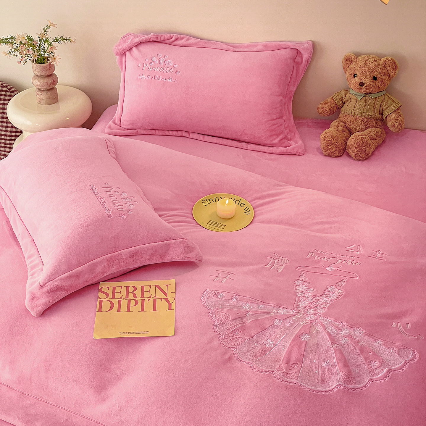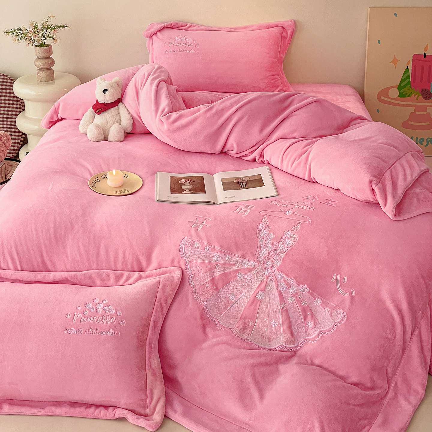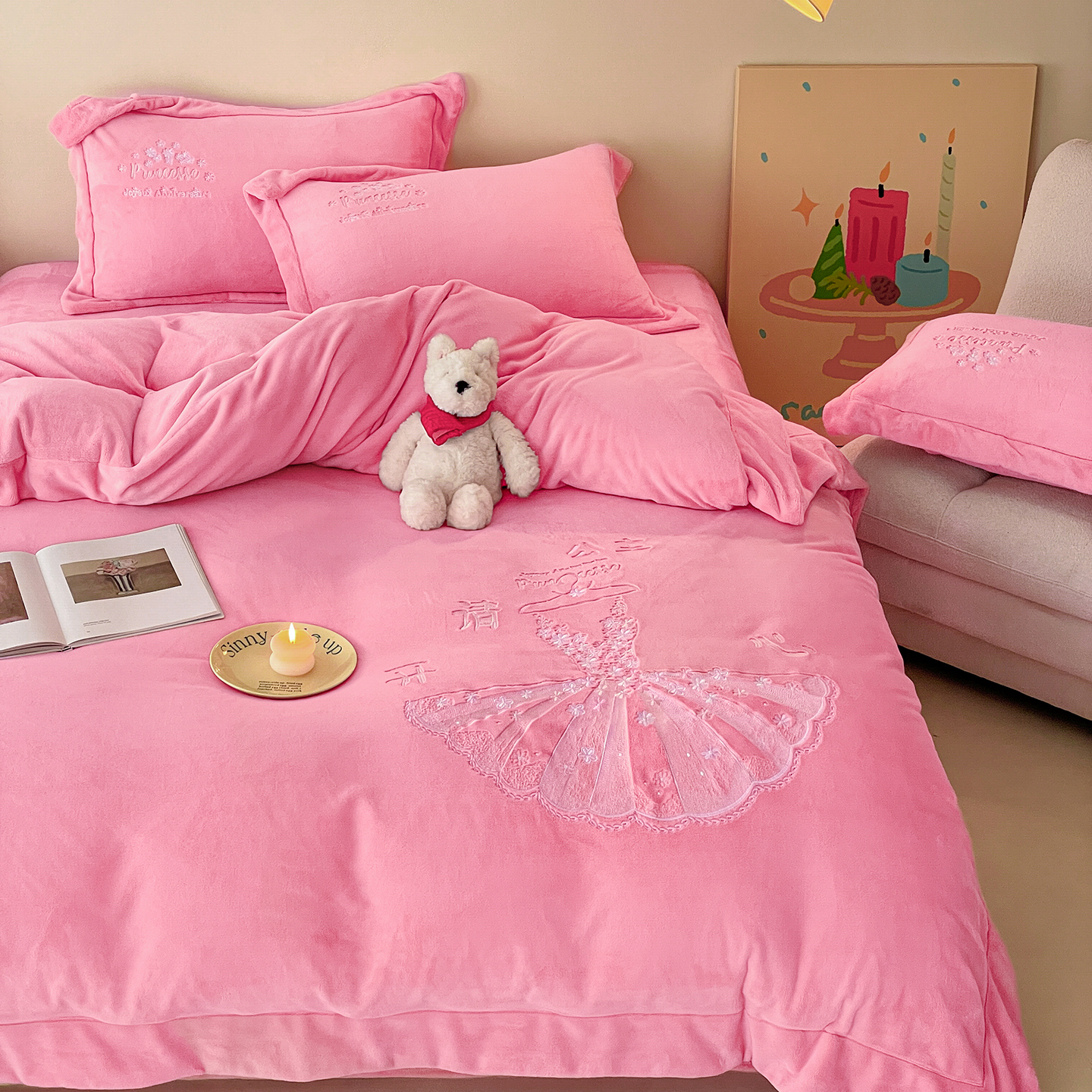 商品名称:新方向 2025新款全消光A类牛奶绒四件套-公主请开心 公主请开心-公主粉