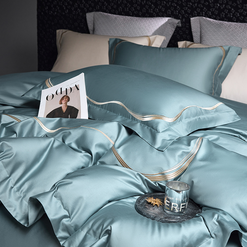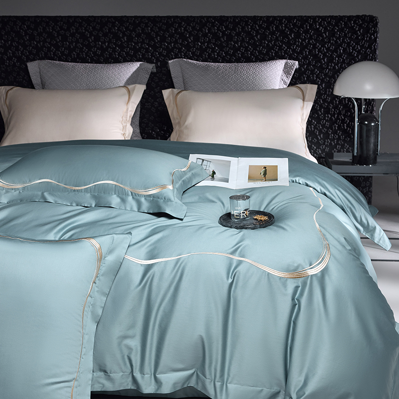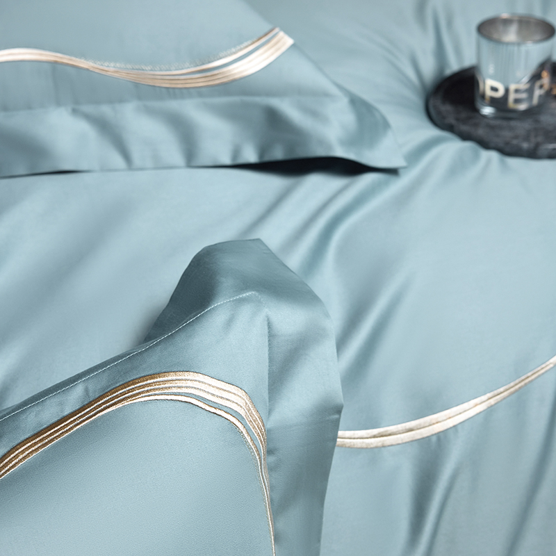 商品名称:时亿家居 2024新款100支长绒棉刺绣款四件套-比利时 比利时 晨雾蓝