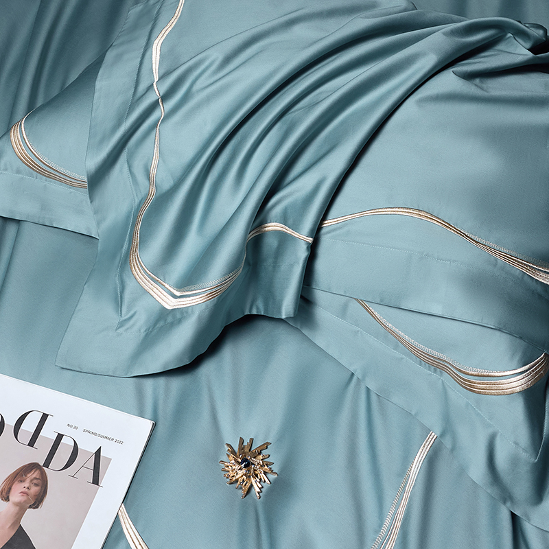 时亿家居 2024新款100支长绒棉刺绣款四件套-比利时 比利时 晨雾蓝