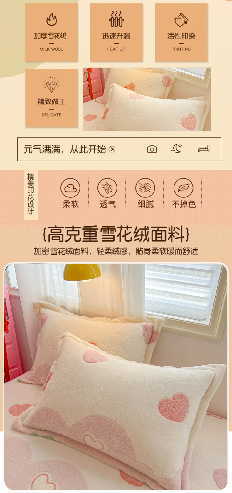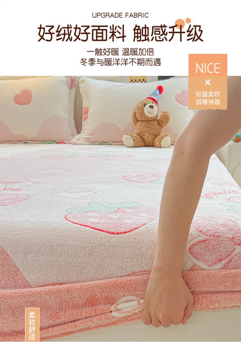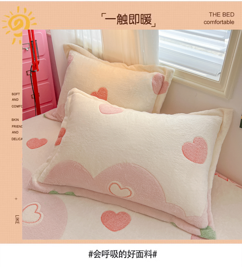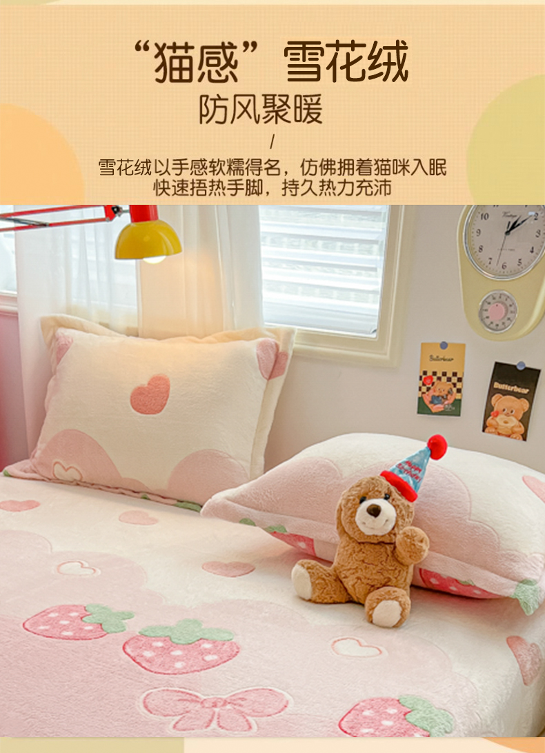 韩巢家纺 2025新款高克重印花牛奶绒床品四件套 爱心小樱桃,爱心小樱桃