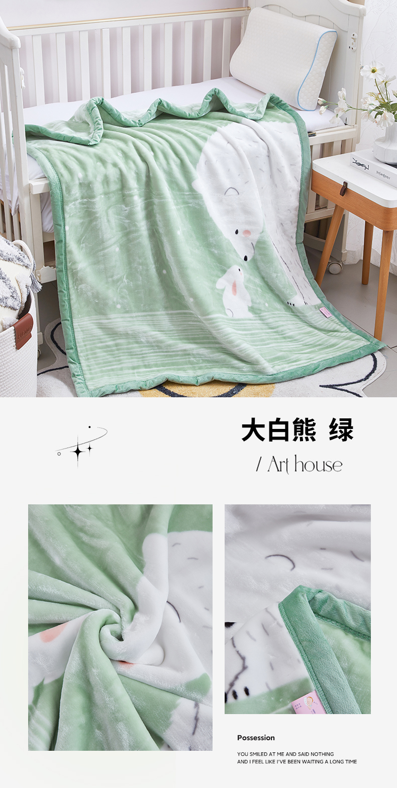 凯轩毛毛毯毯子网销专供 2024新款加厚保暖儿童印花云毛毯毯子系列 大白熊 绿