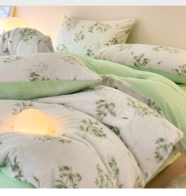 安哆啦家纺 2024新款ins风高克重兔毛绒四件套 品竹