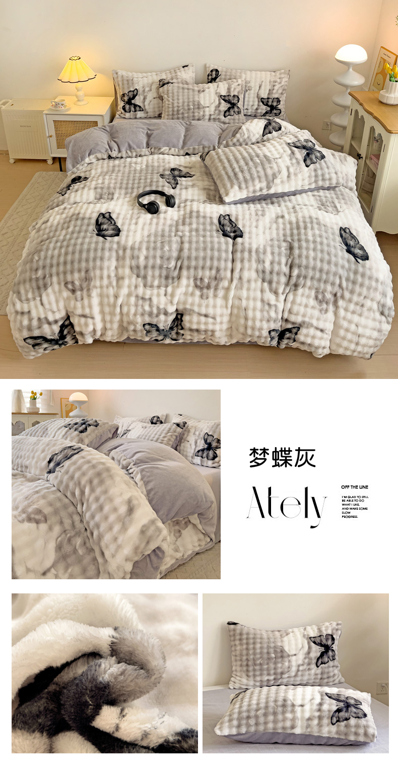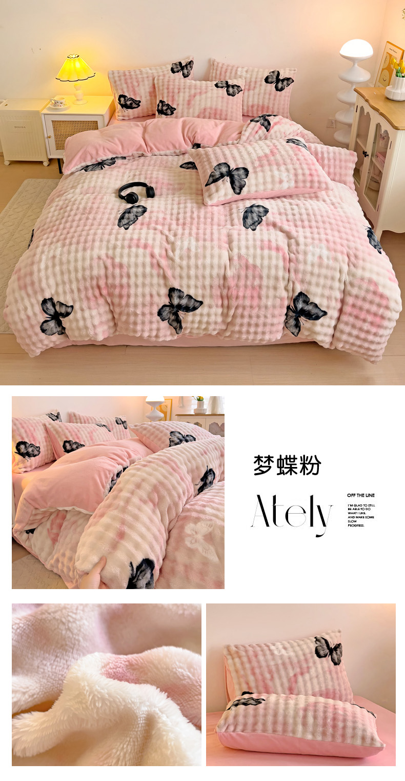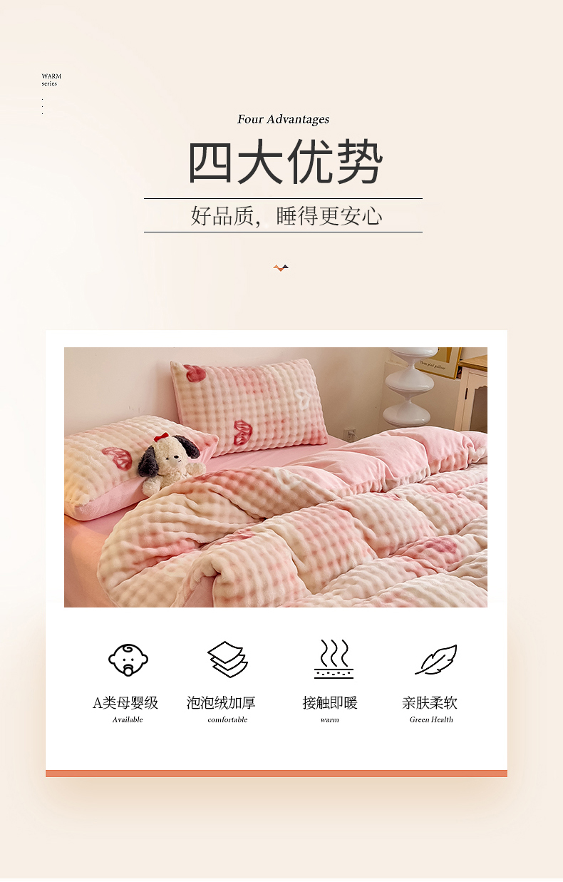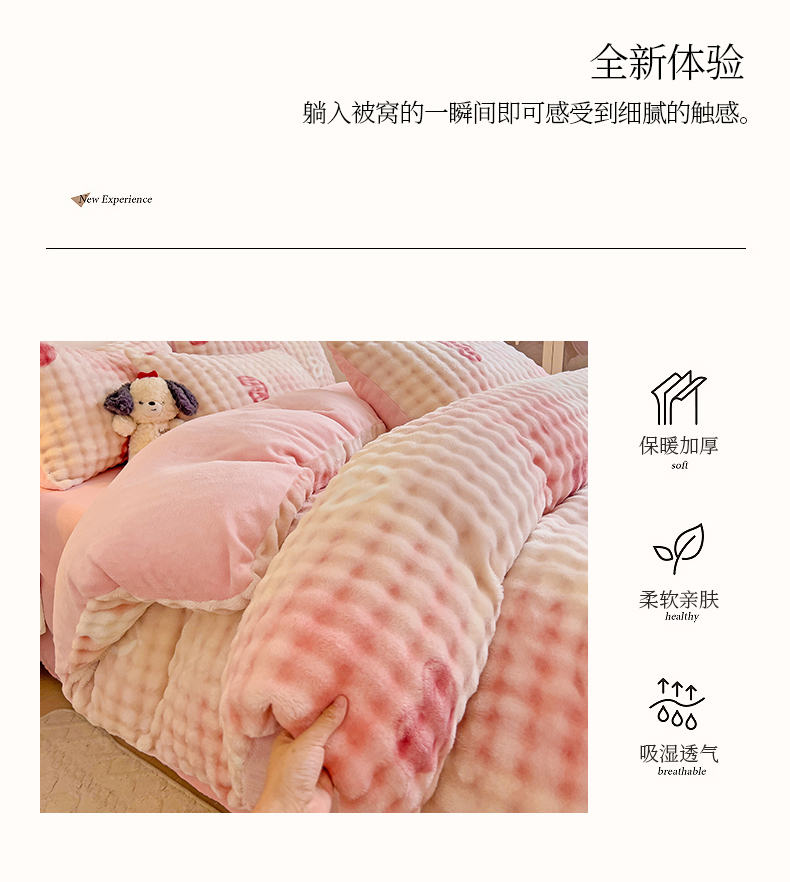 (总)金爱家 2024新款A类高克重云朵牛奶泡泡绒四件套