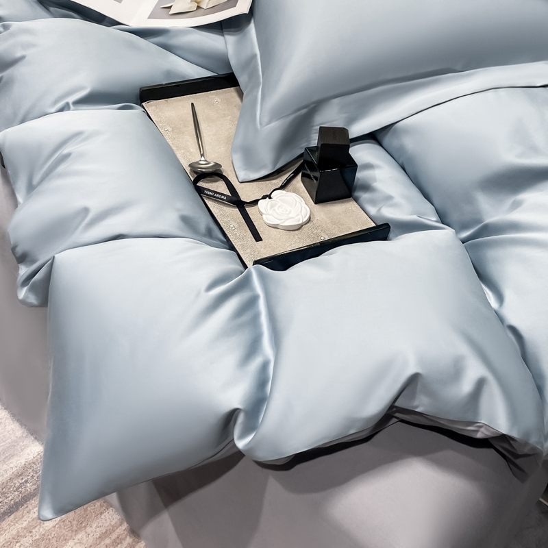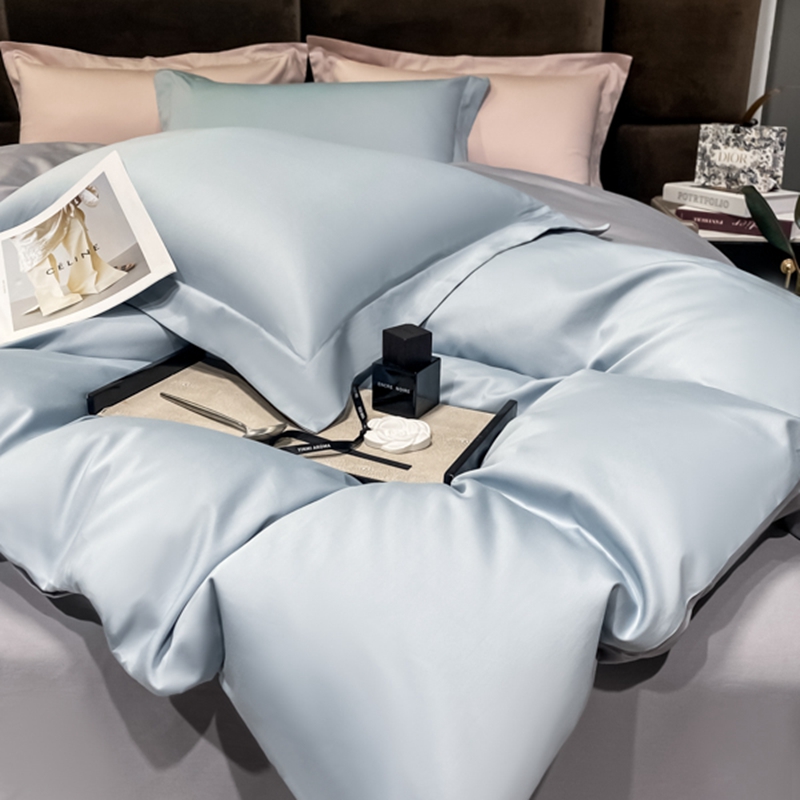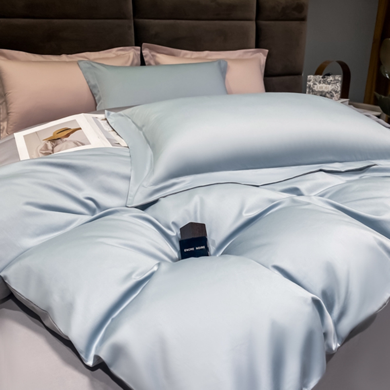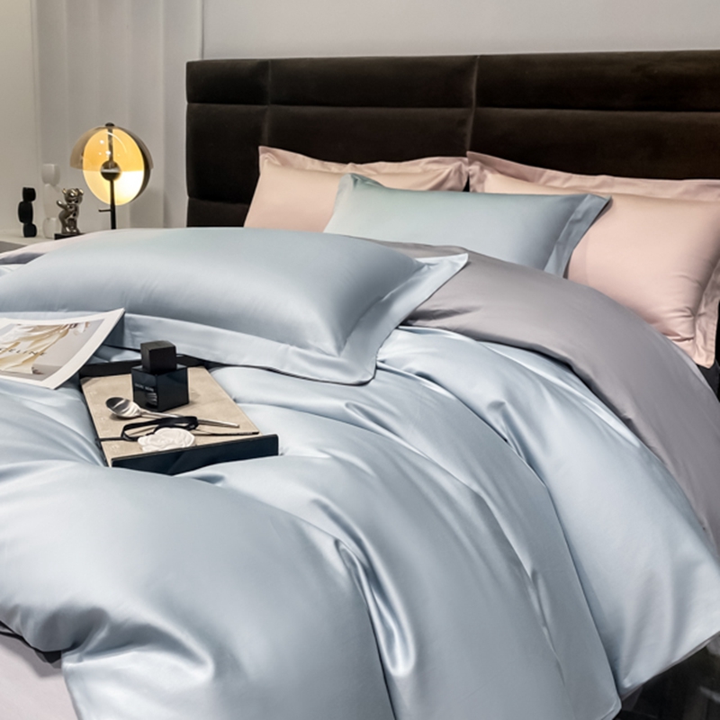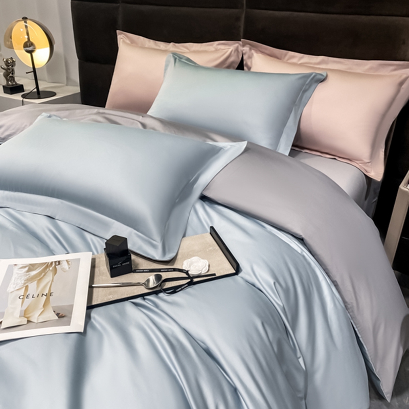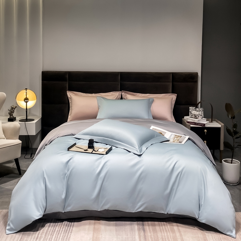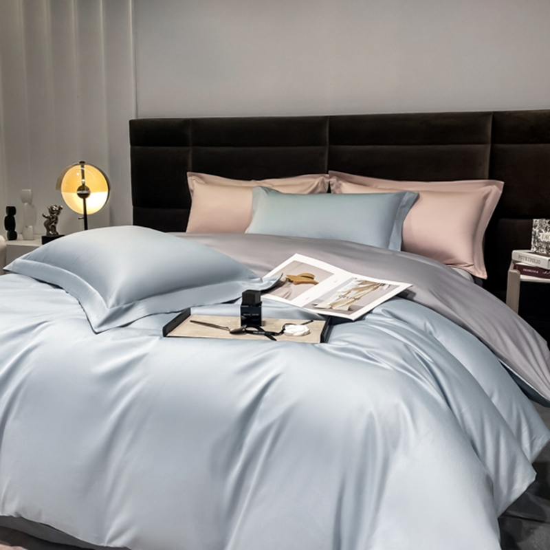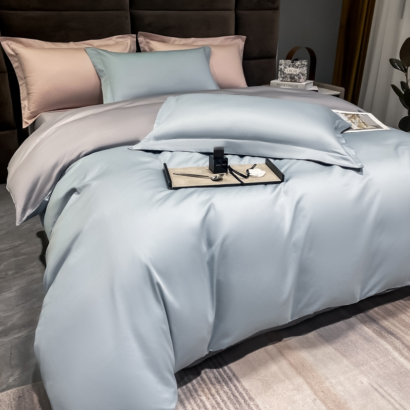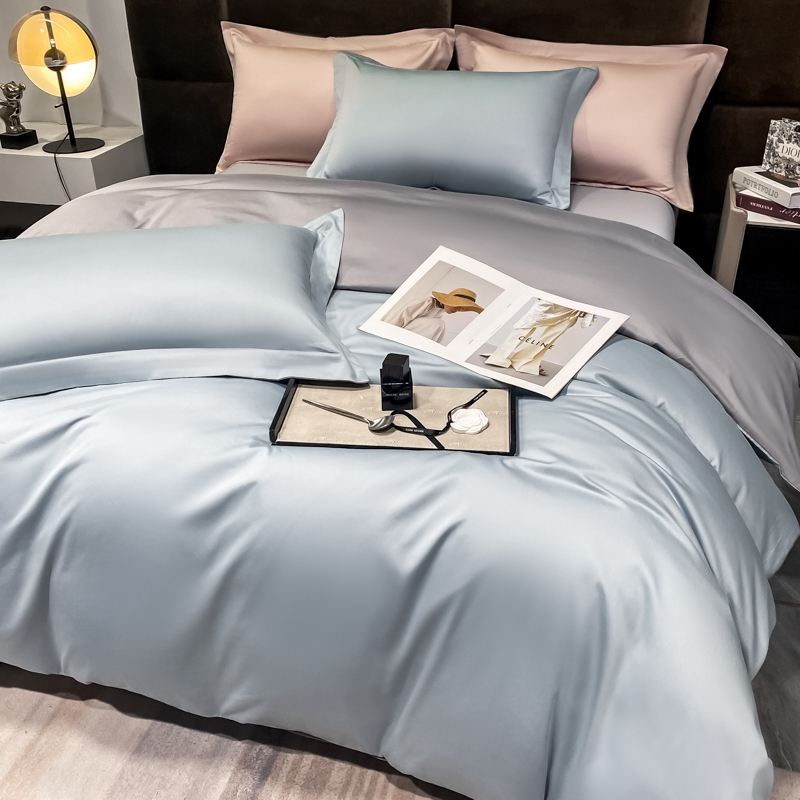 商品名称:秀色2025新款50支贡缎纯色双拼四件套长绒棉套件单被套 郁兰+典雅灰