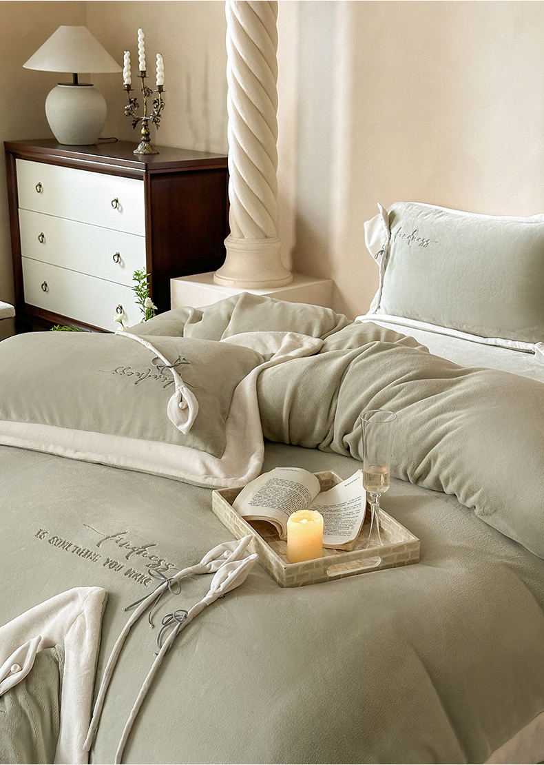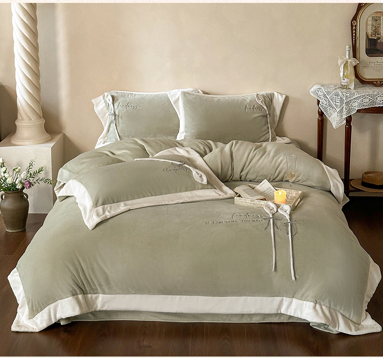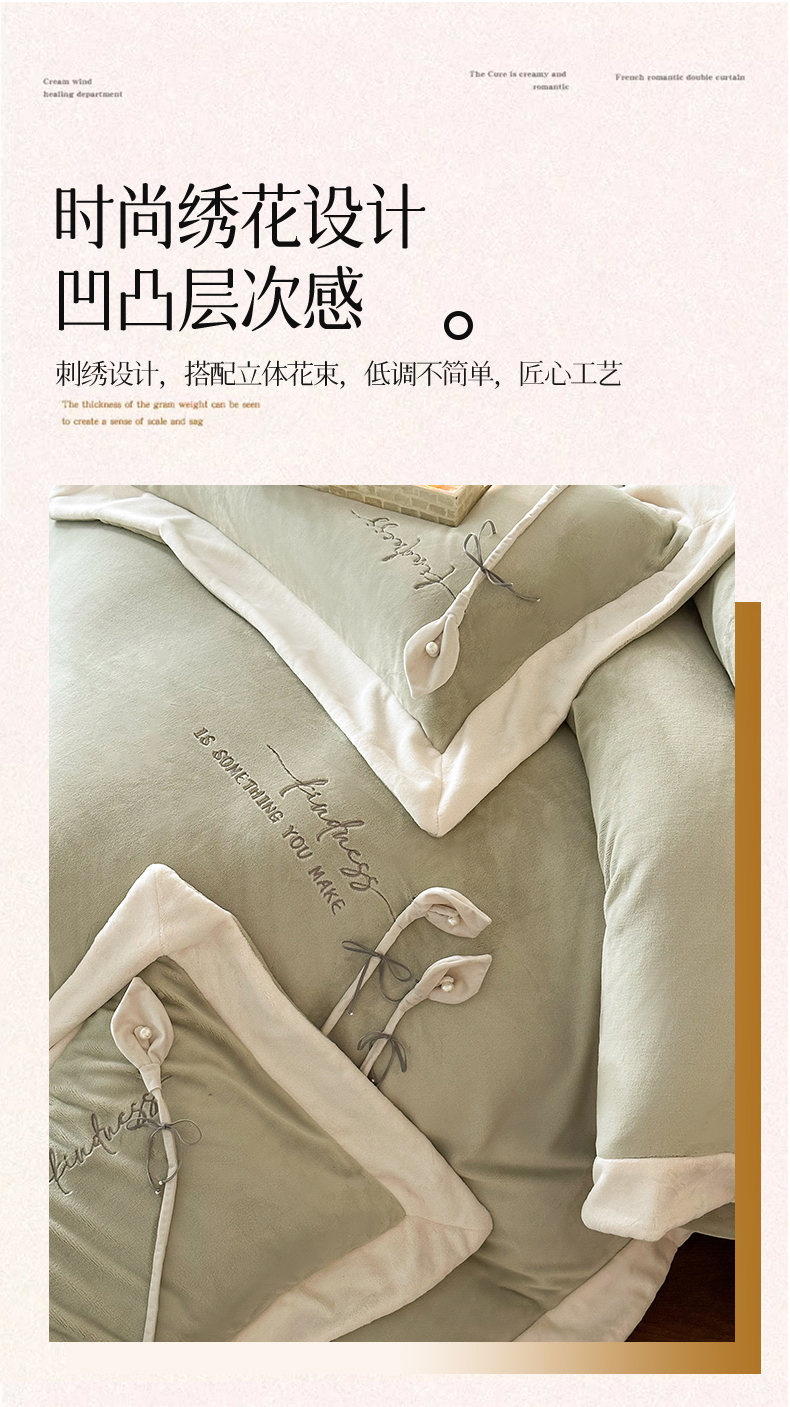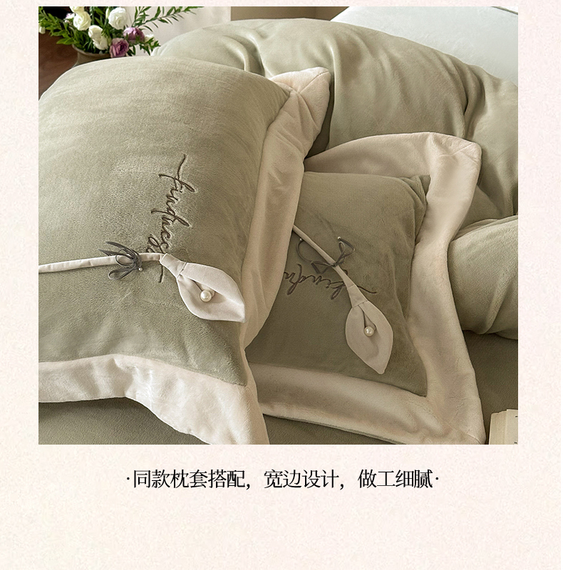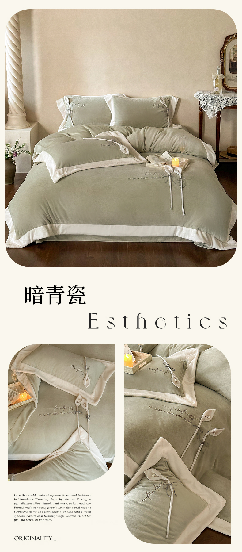 2024新款高克重牛奶绒四件套-辛西娅 暗青瓷