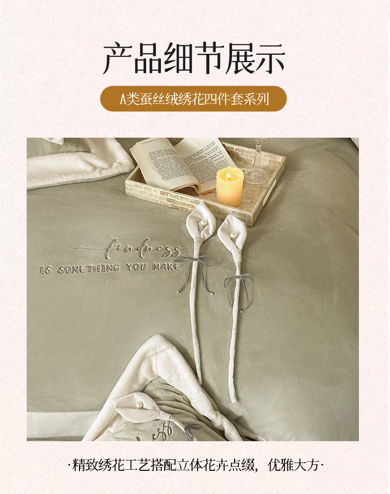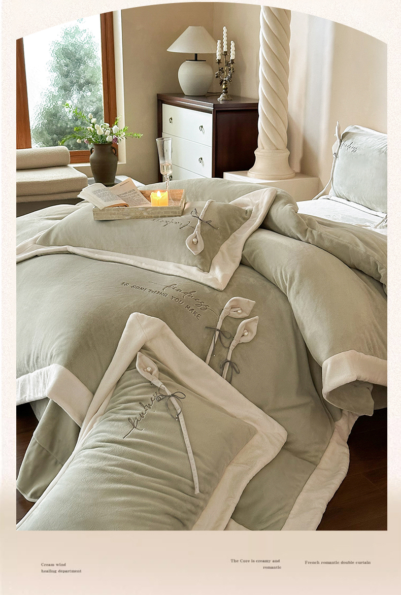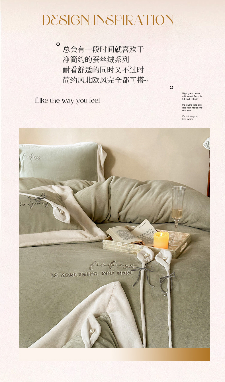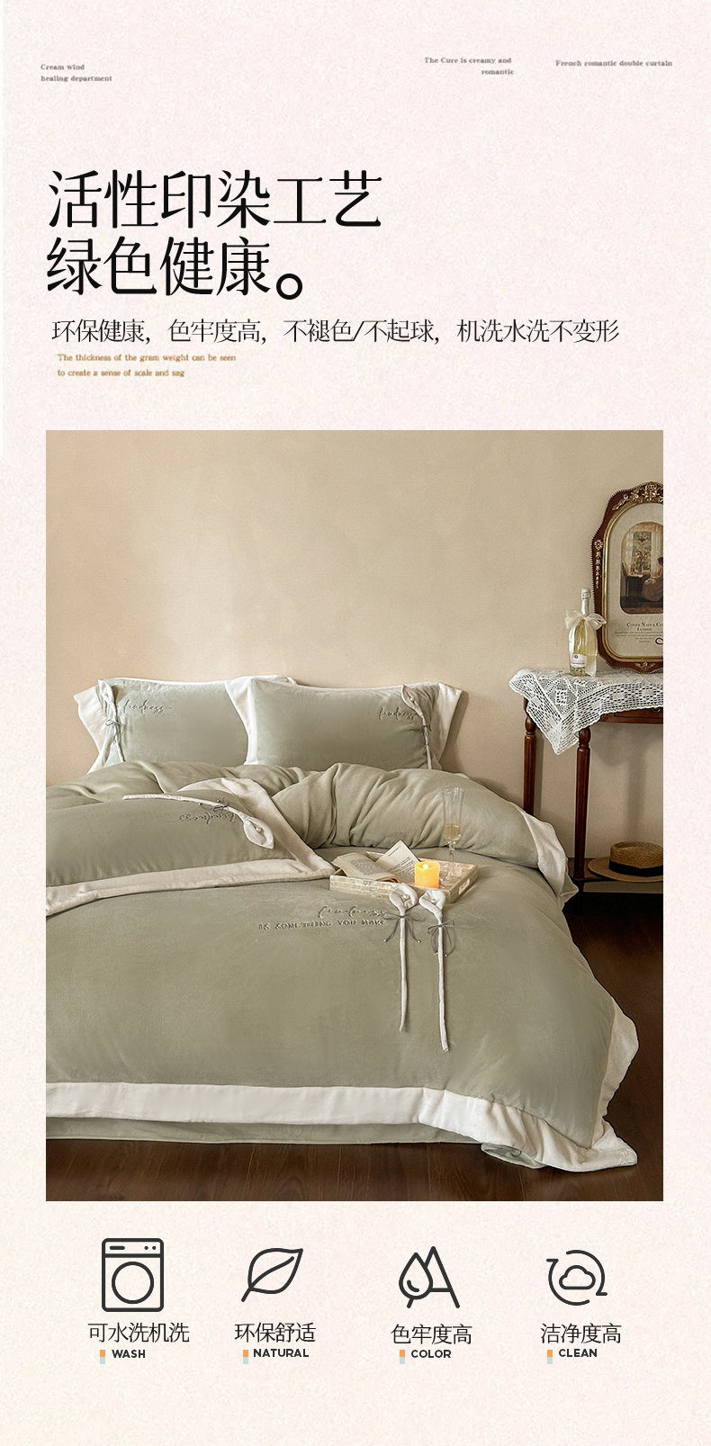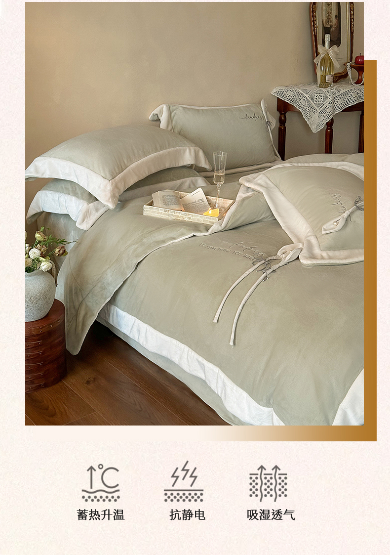 2024新款高克重牛奶绒四件套-辛西娅 暗青瓷