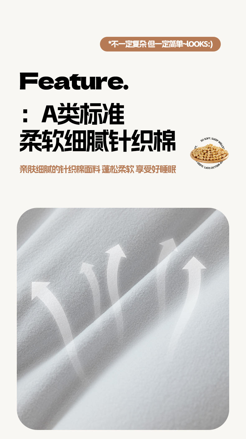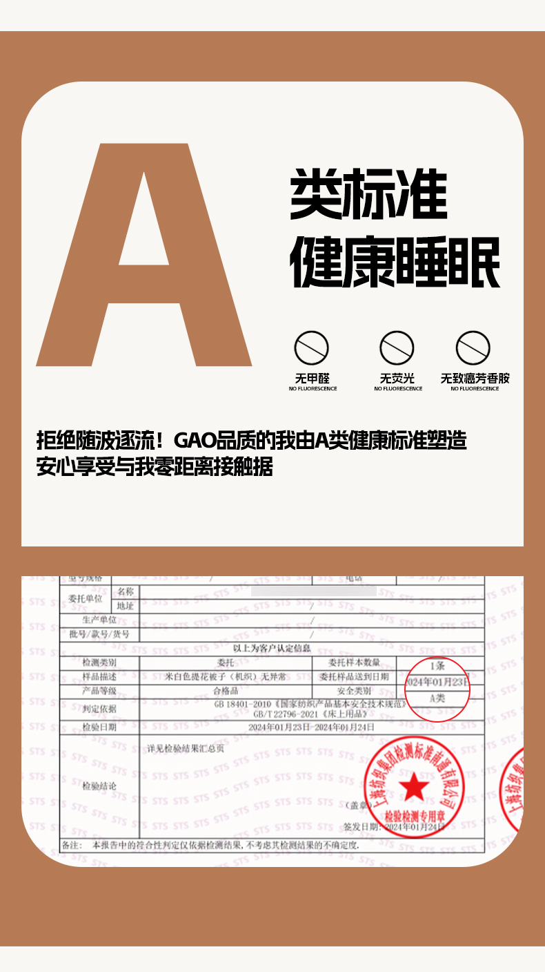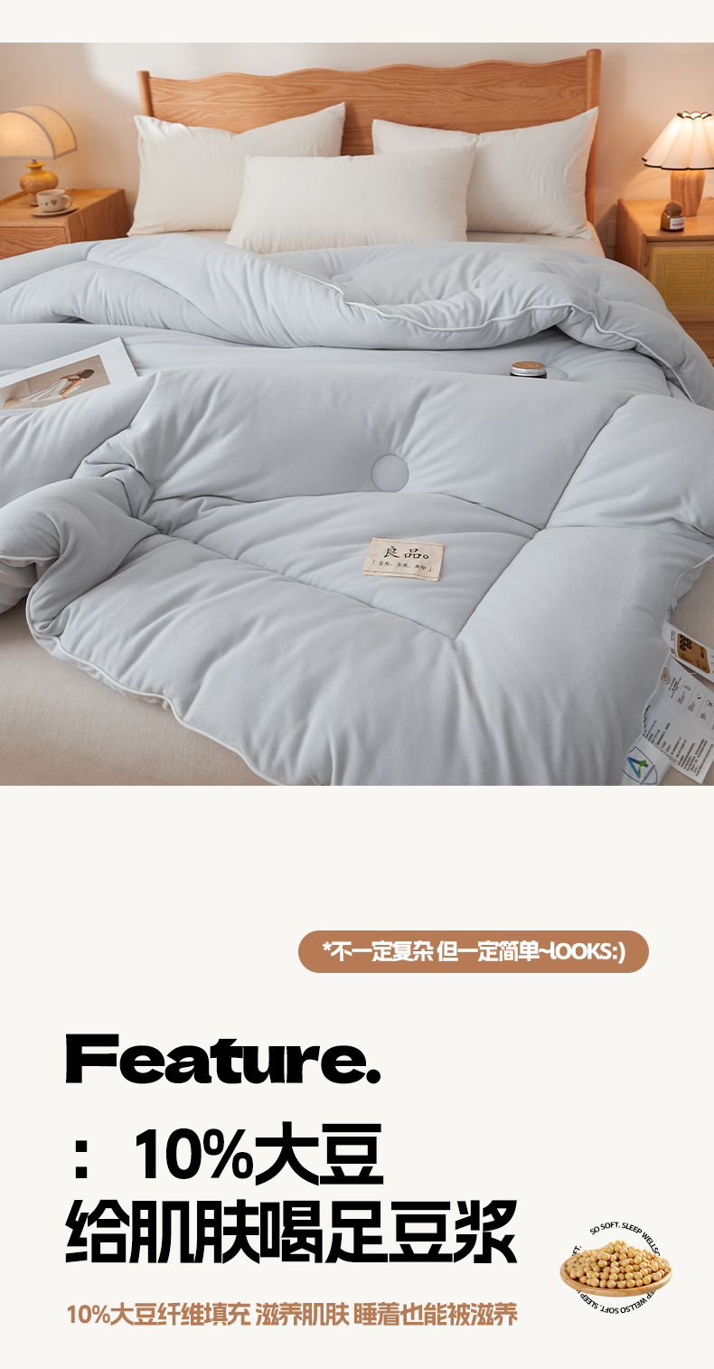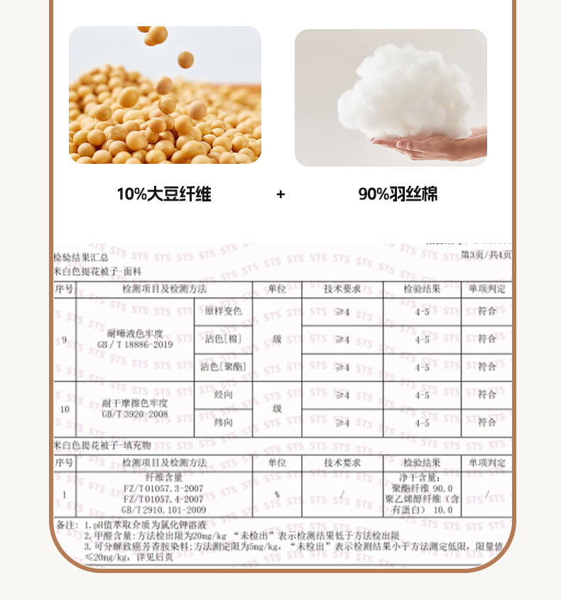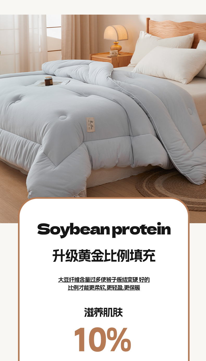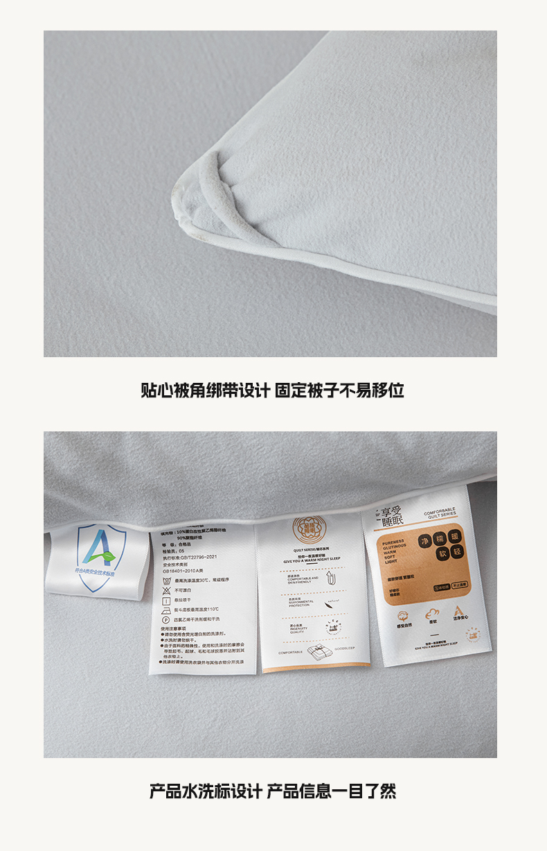 • 填充纤维种类: 大豆蛋白改性聚酯纤维