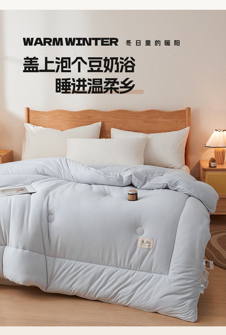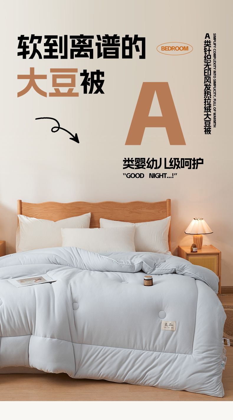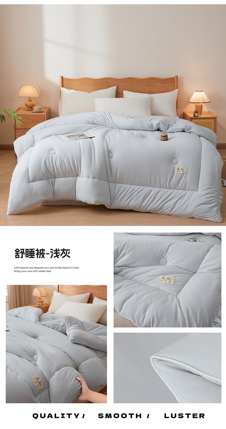 • 91家纺网 家纺一手货源 找家纺 莱登卡奴 24新款A类针织棉无印风发热拉绒舒睡大豆被 舒睡被-浅灰