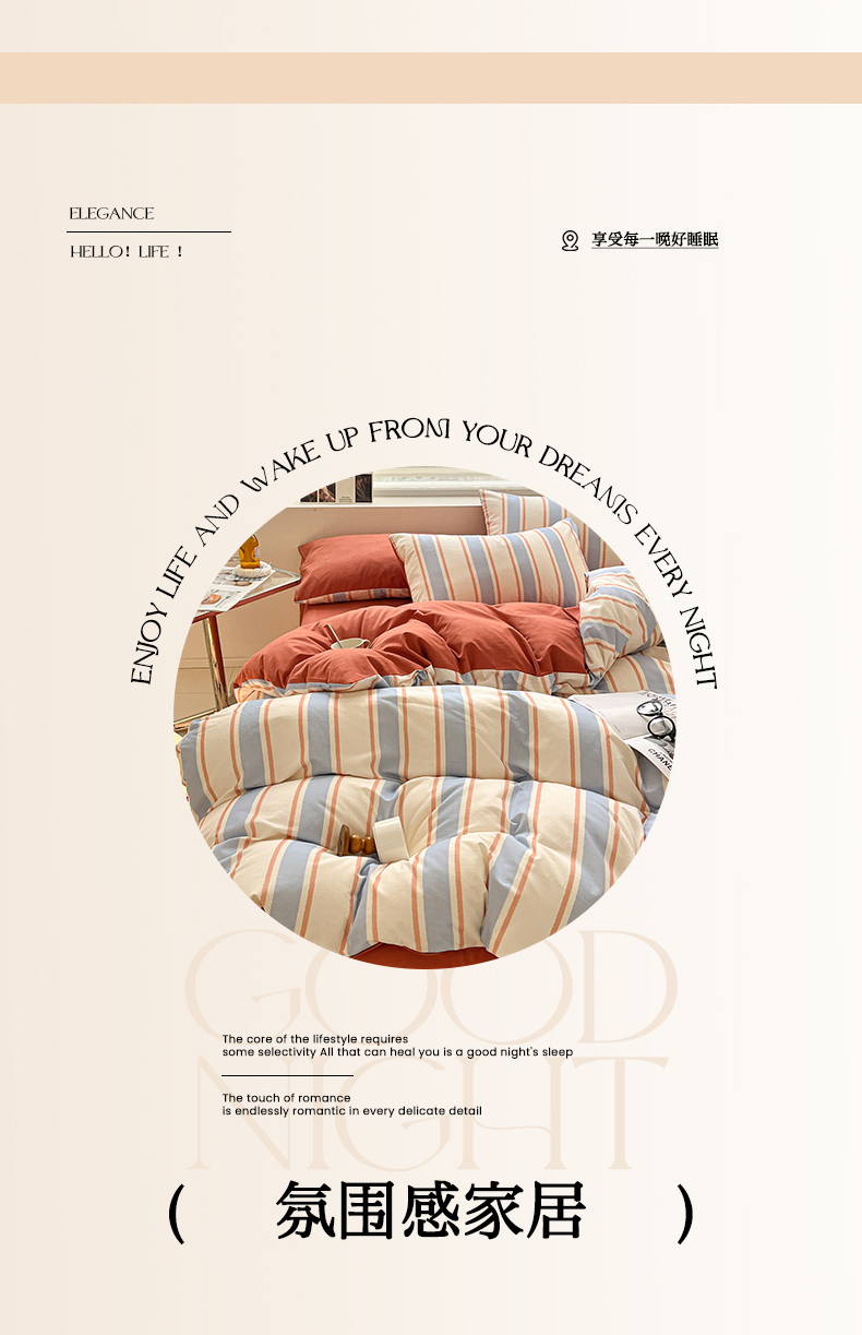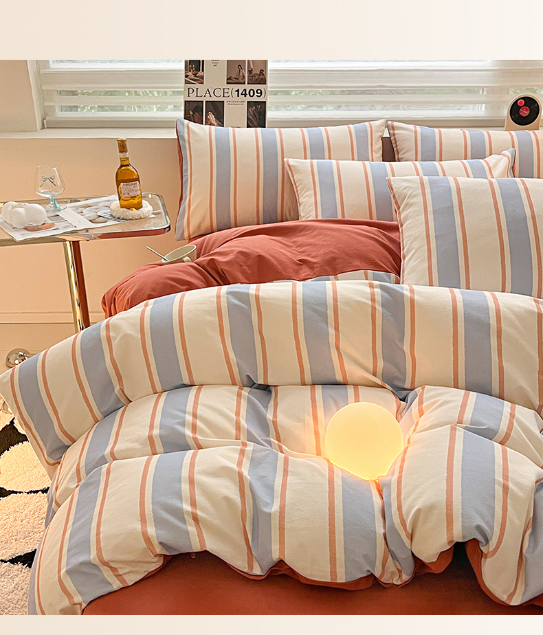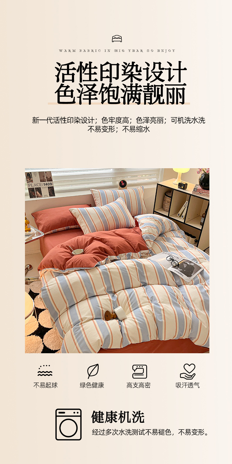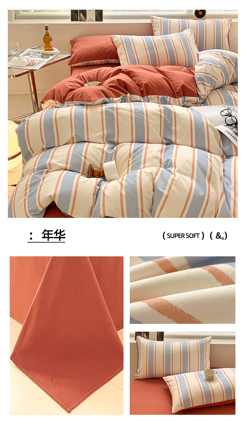 商品名称:吉象家纺 2024新款全棉磨毛印花四件套 幻珊蓝条