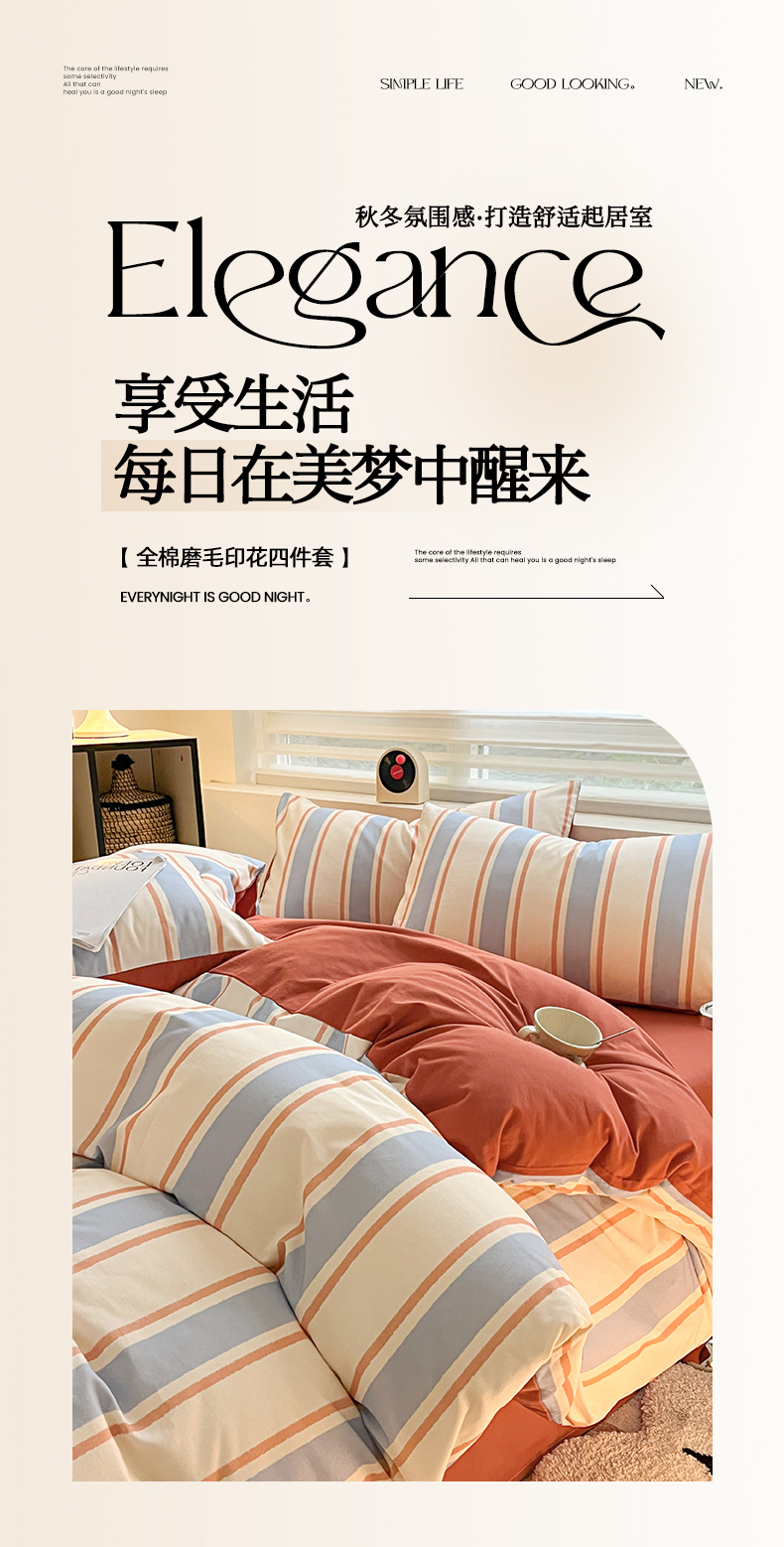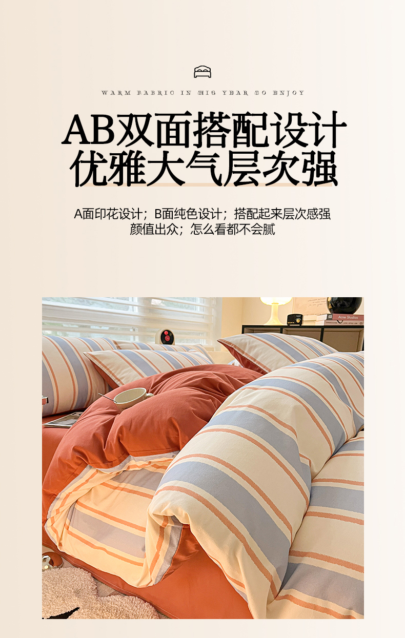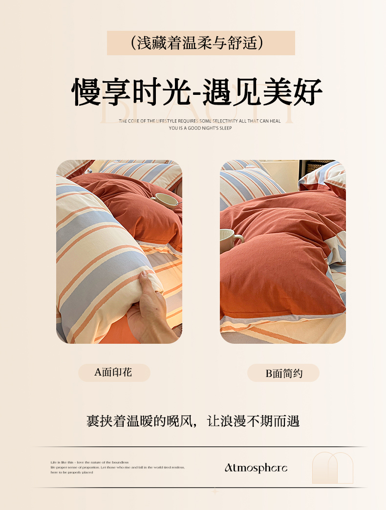 (总)吉象家纺 2025新款全棉磨毛三角针贝壳边印花四件套,枫叶,满园花开 -桔,墨染,浅夏 -绿,清浅,薰染 -红