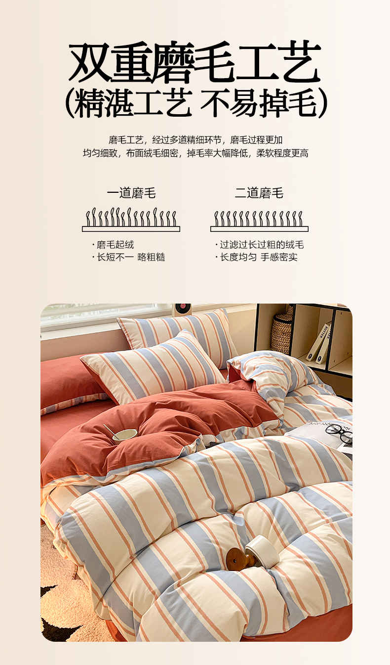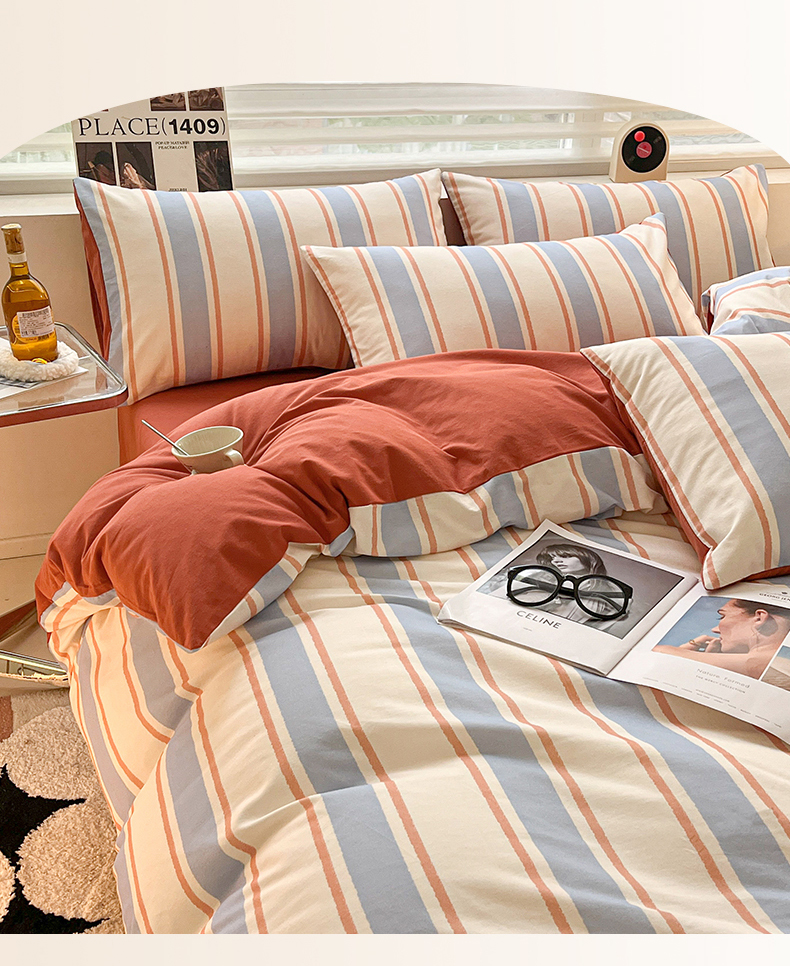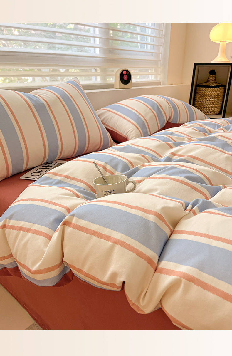 吉象家纺 2024新款全棉磨毛印花四件套 幻珊蓝条