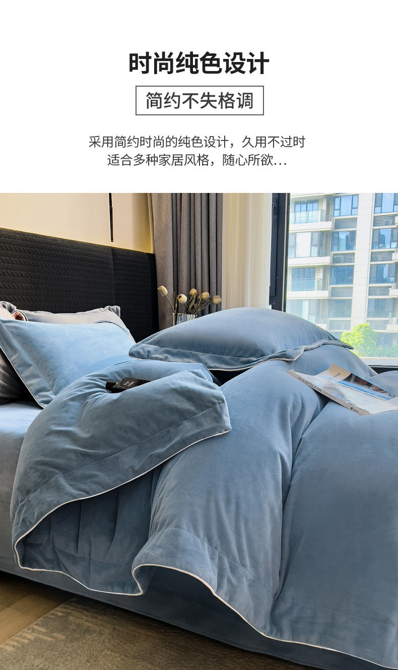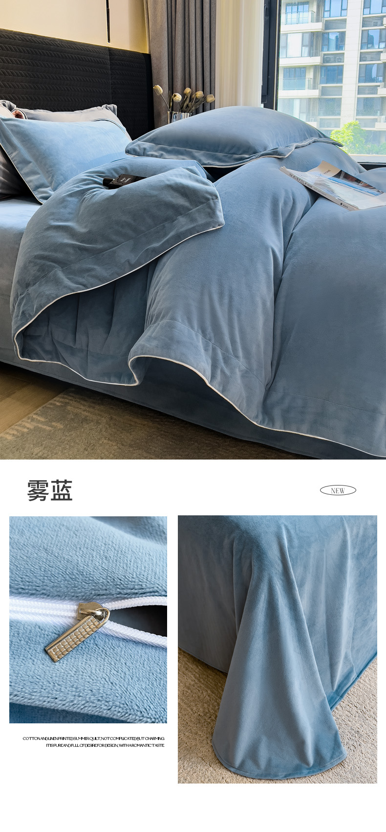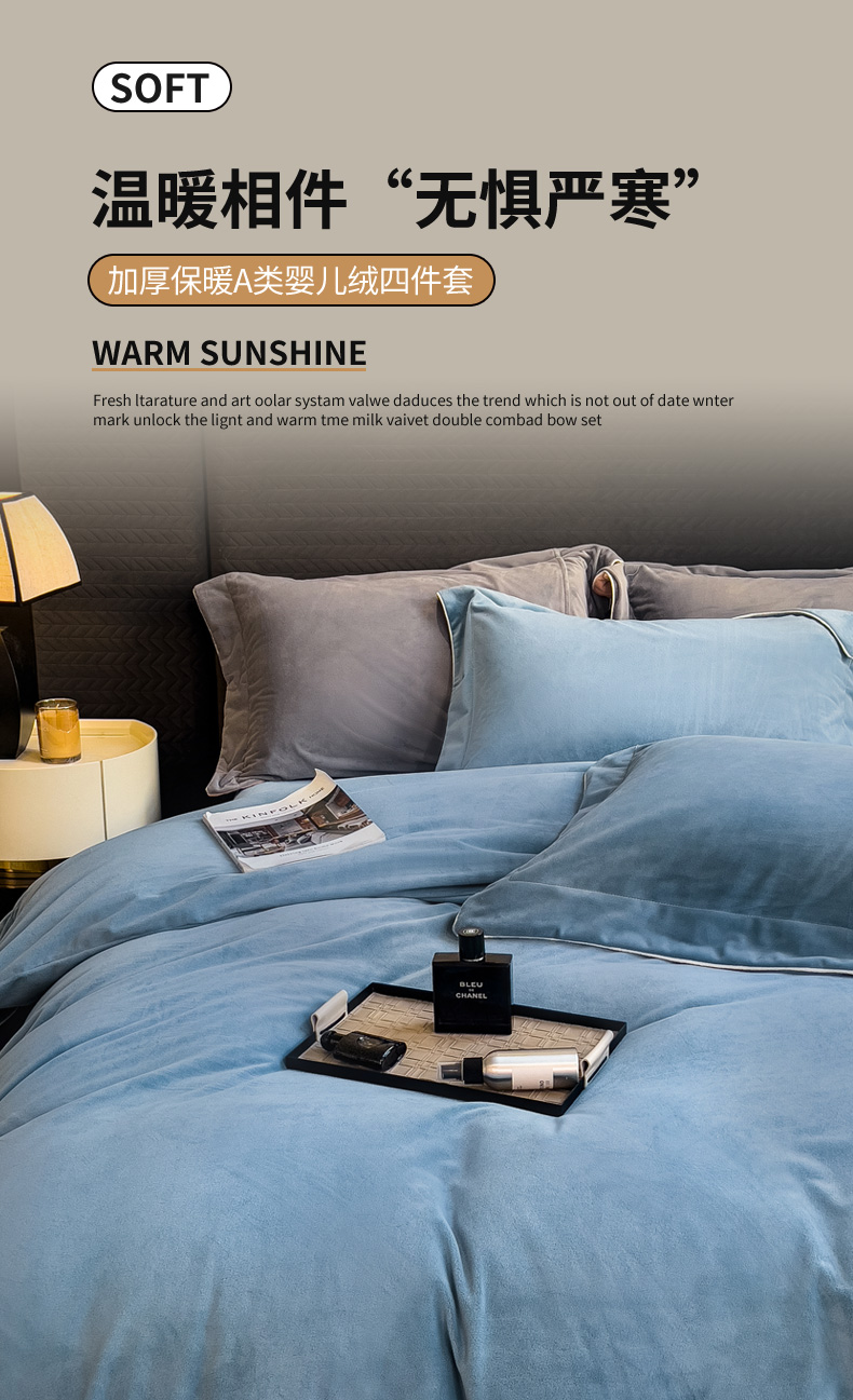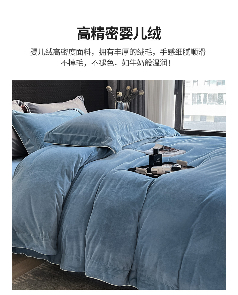 席世家 2024新款A类婴儿绒四件套 雾蓝