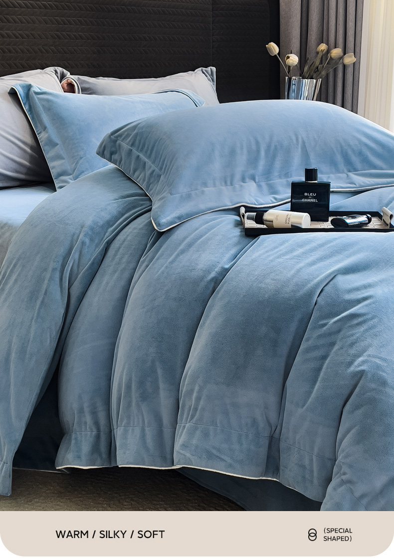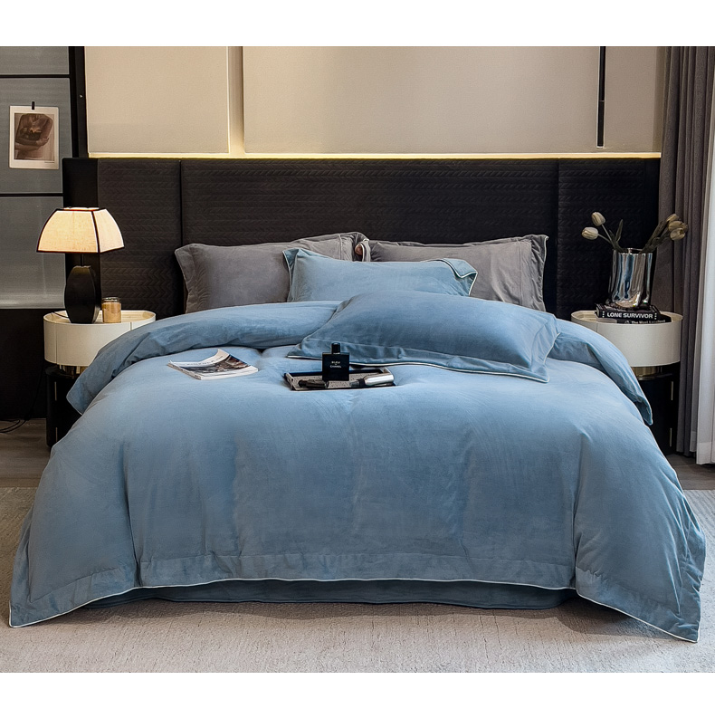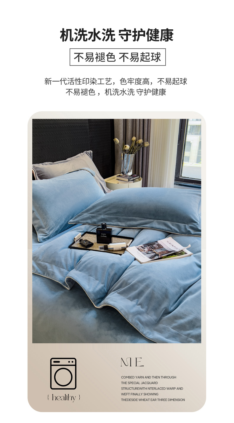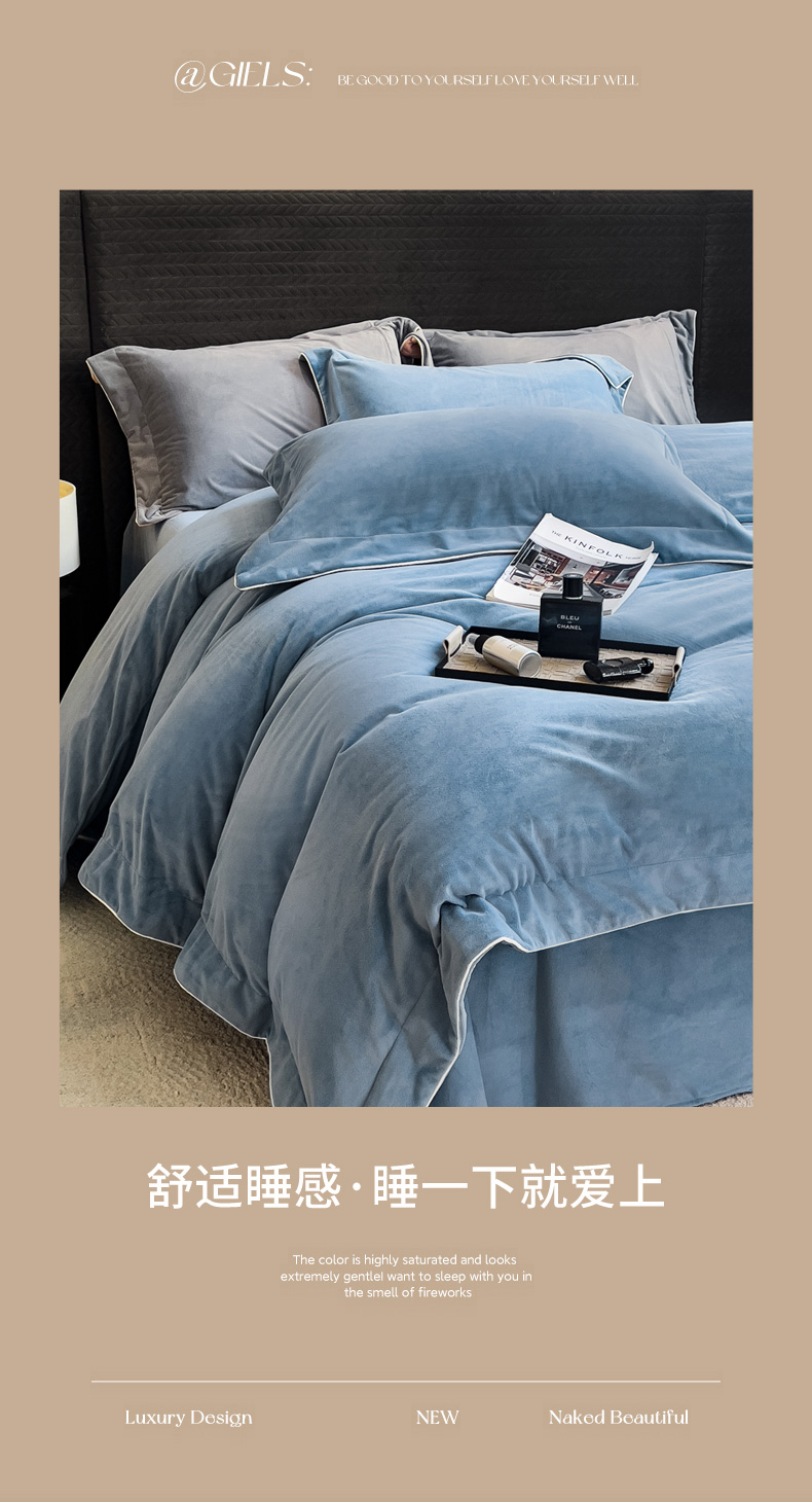 席世家 2024新款A类婴儿绒四件套 雾蓝
