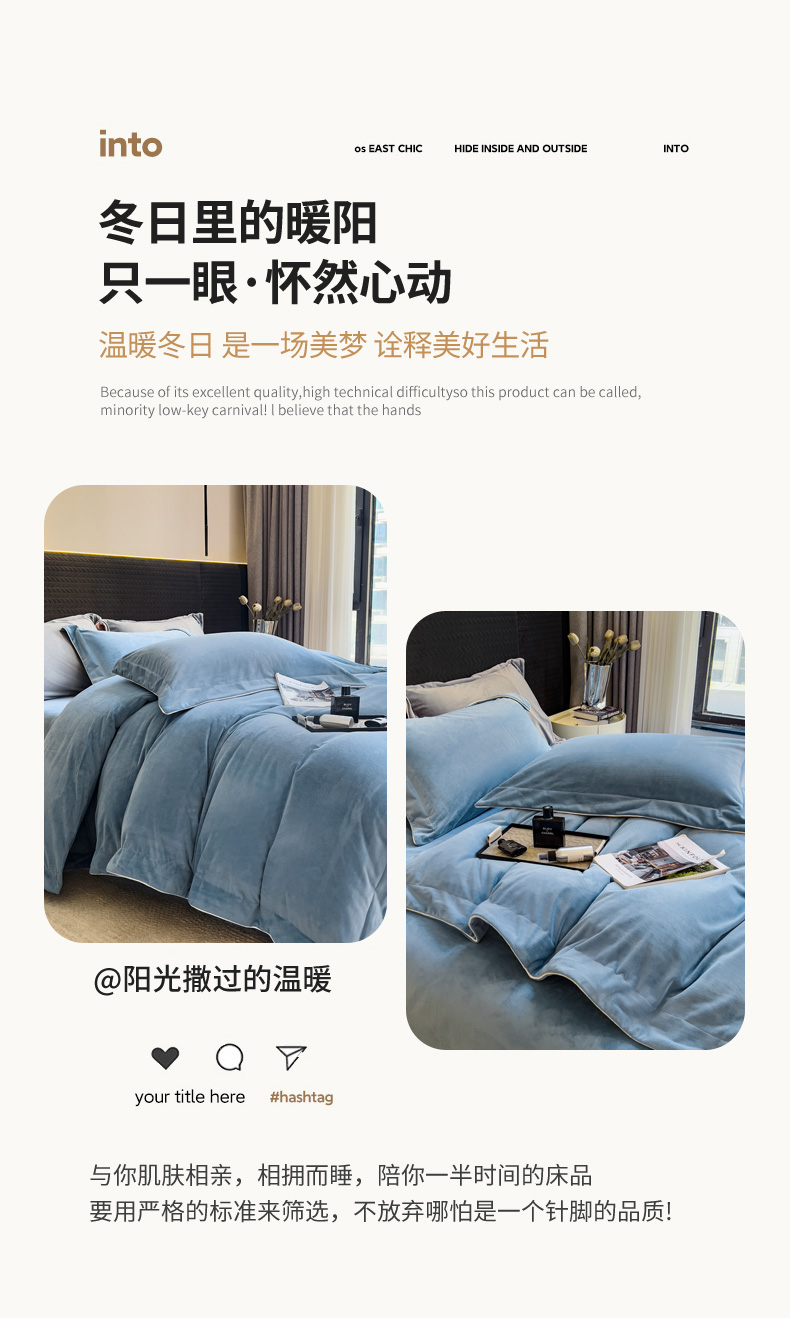 (总)席世家 2025新款婴儿绒简约款四件套,豆粉拼香槟,可可棕,奶油白拼粉,星光蓝,幽山紫