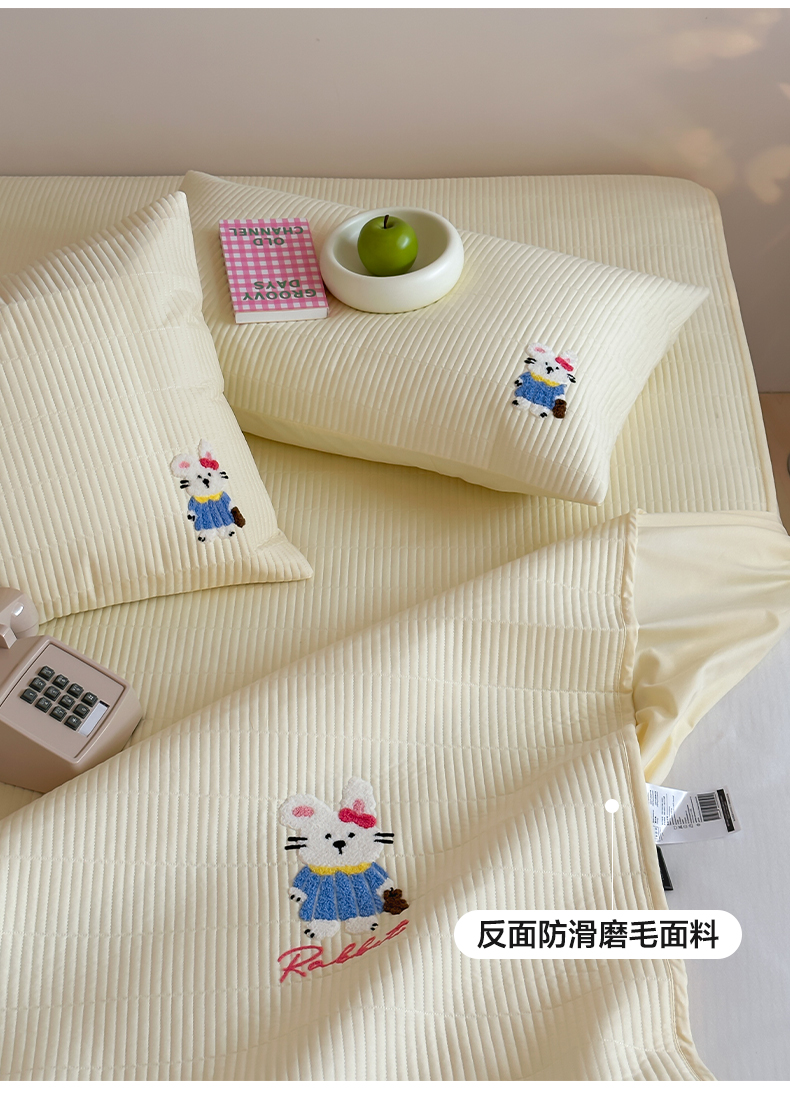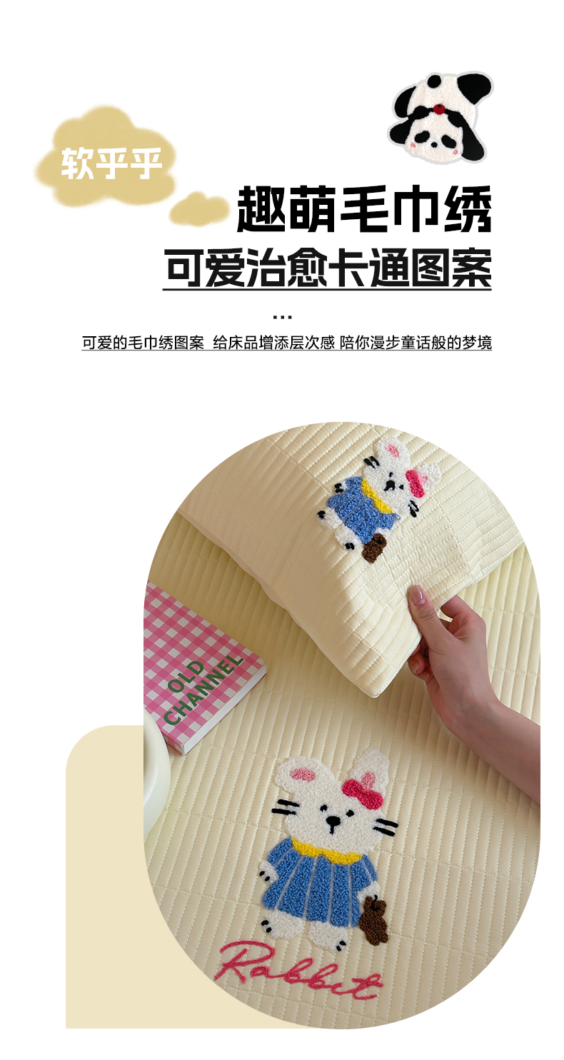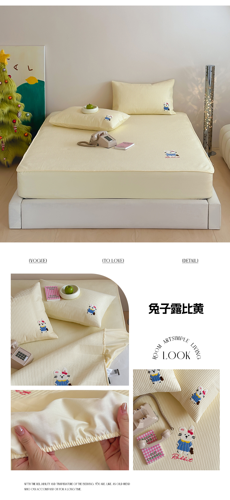 商品名称:三味舒屋 2024新款萌系卡通毛巾绣夹棉床笠 兔子露比黄