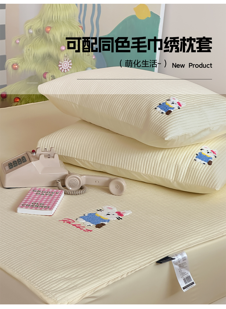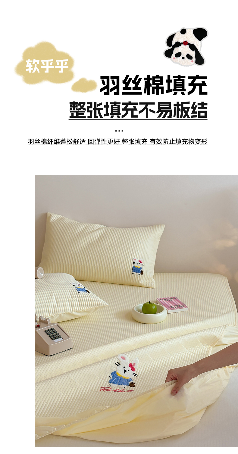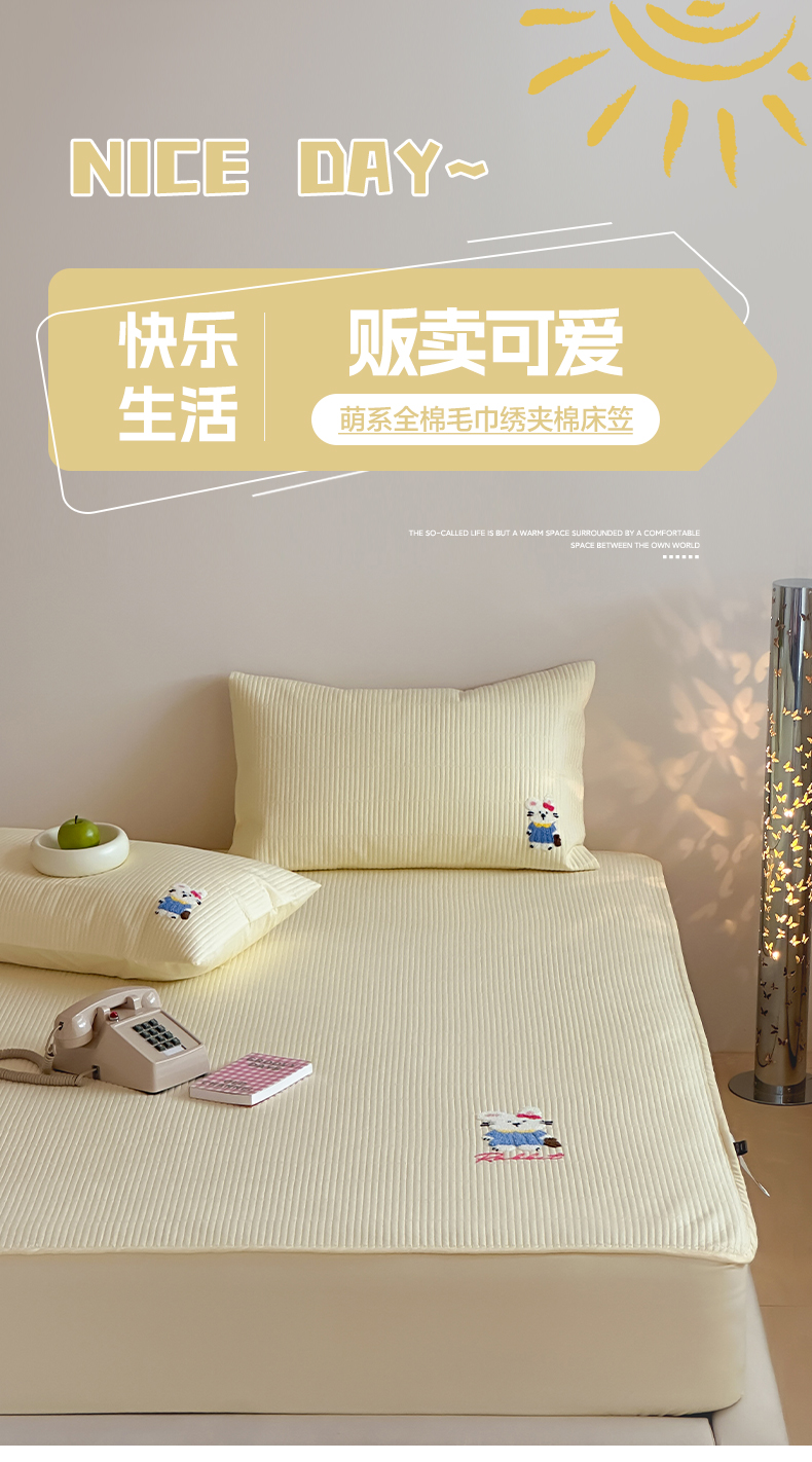 商品名称:三味舒屋 2024新款萌系卡通毛巾绣夹棉床笠 兔子露比黄