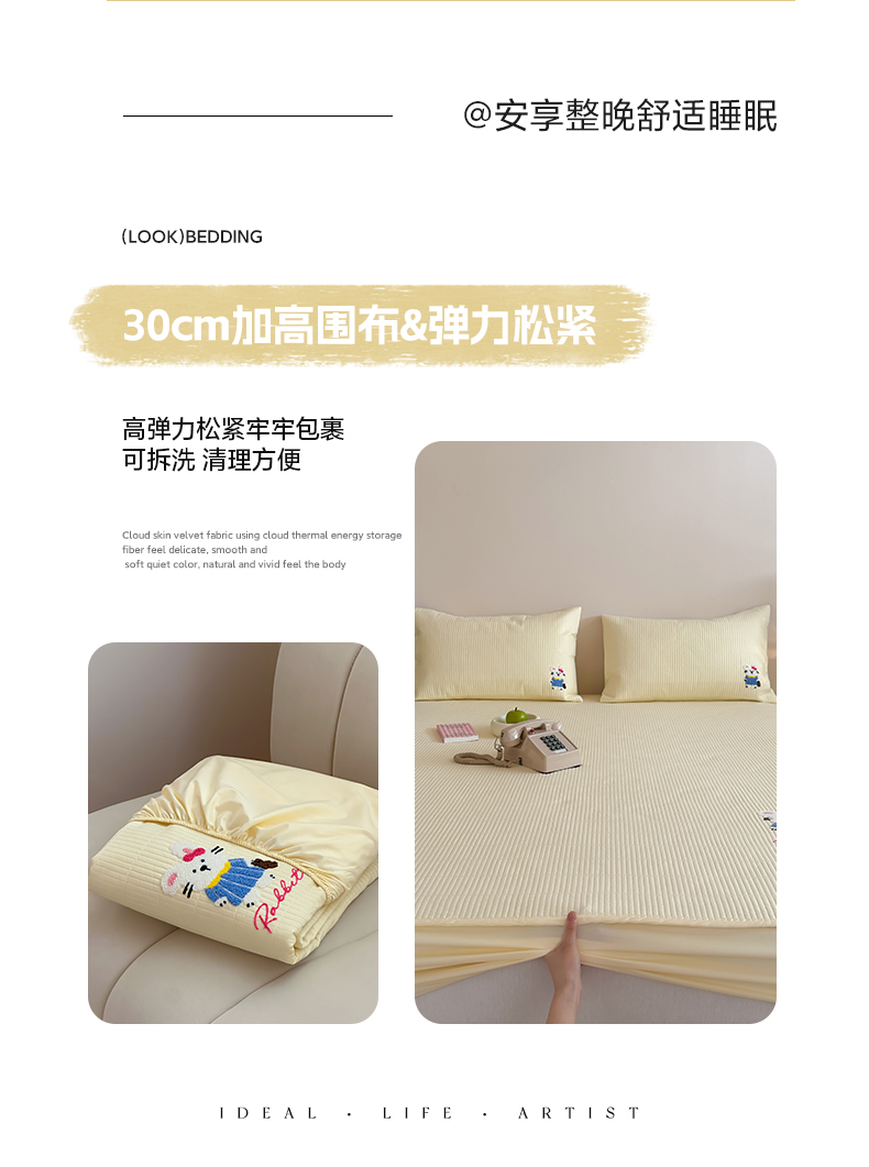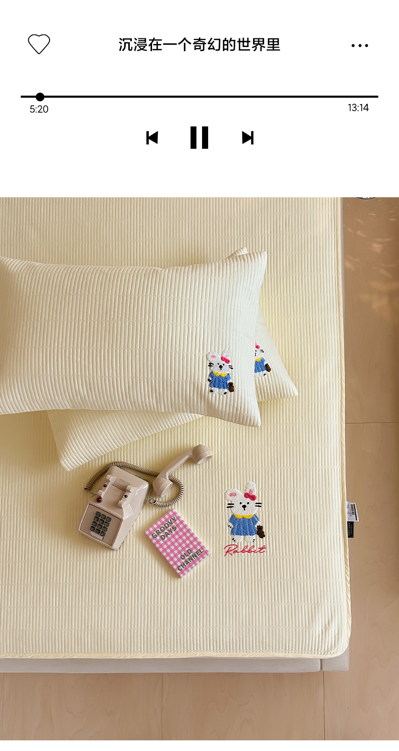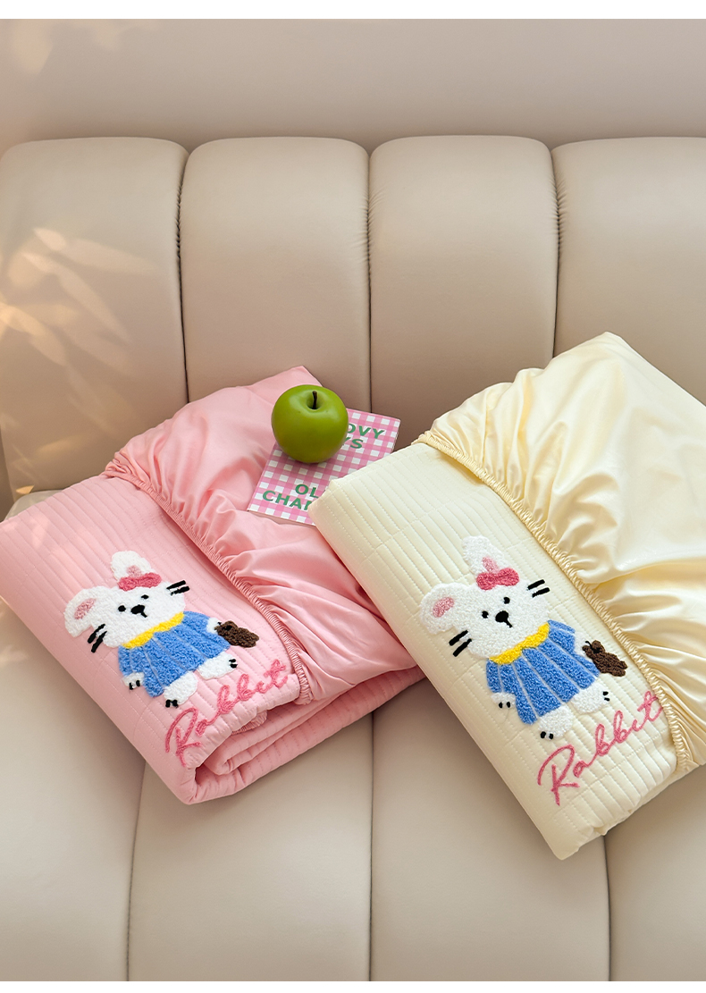 三味舒屋 2024新款萌系卡通毛巾绣夹棉床笠 兔子露比黄