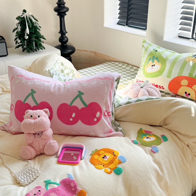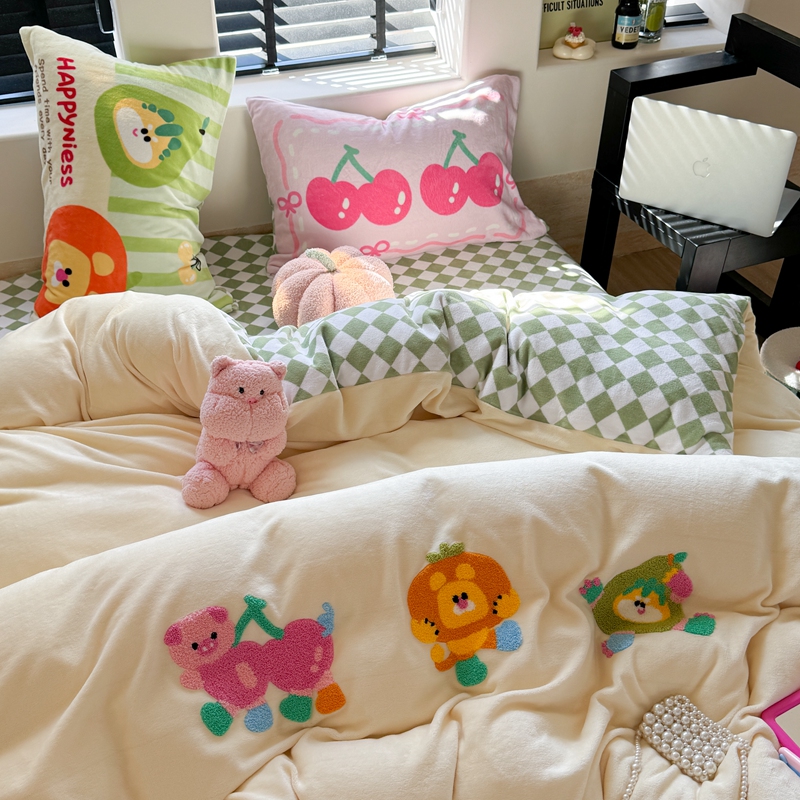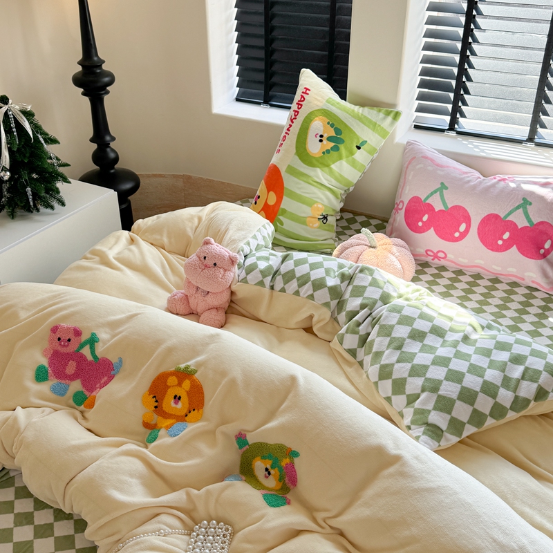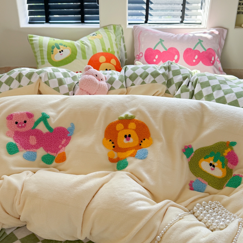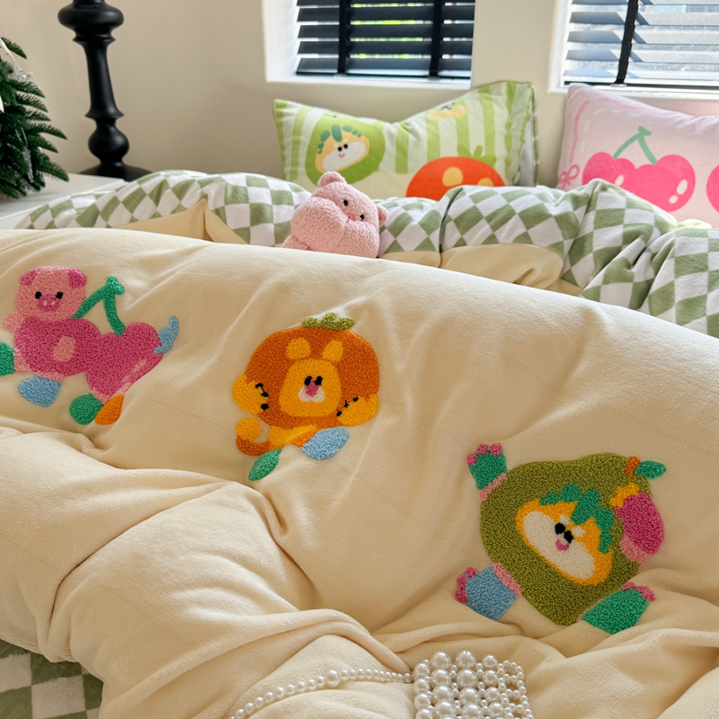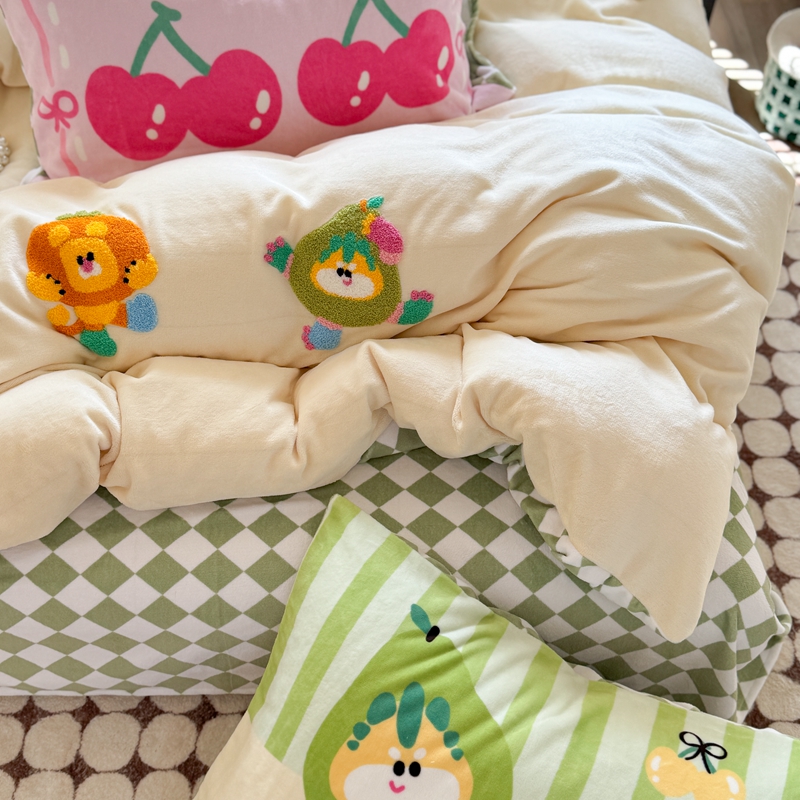 柚子YOUTH 2024新款牛奶绒四件套-三小只毛巾绣系列 小狮子