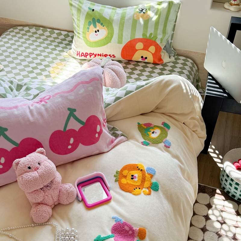(总)柚子YOUTH 2025新款双面泰迪绒毛巾绣四件套,甜甜圈,快乐企鹅,森林聚会,甜酷KT,小茄子,雪人王国