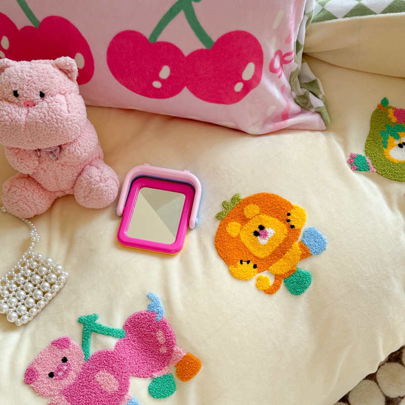 (总)柚子YOUTH 2025新款全棉纯棉工艺款13070贴布绣四件套,爱心小象,毛绒小狗,蘑菇女孩,星星法师