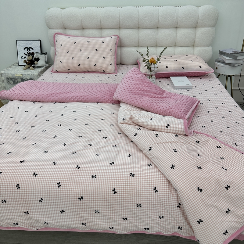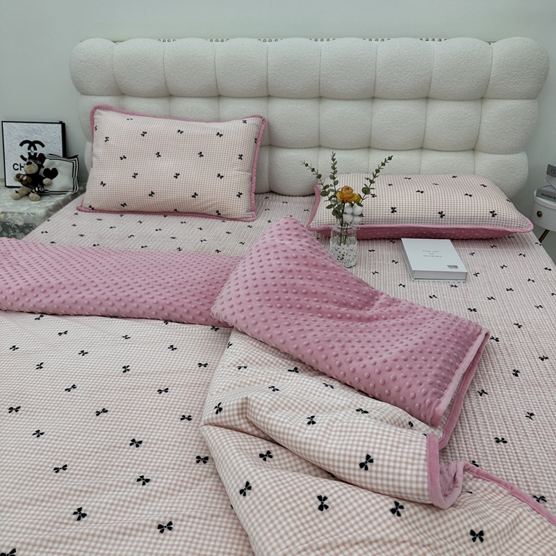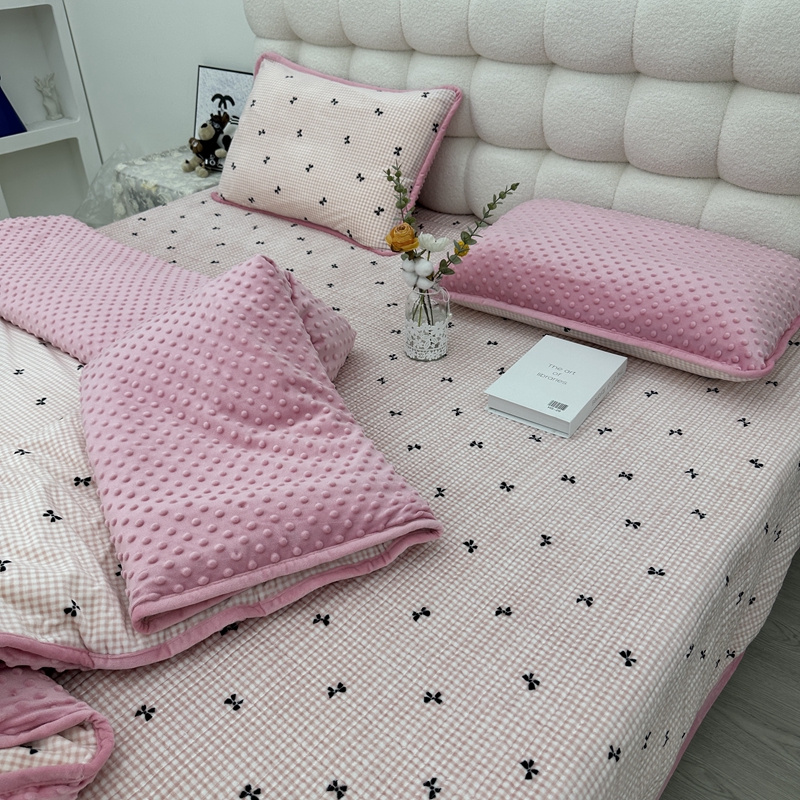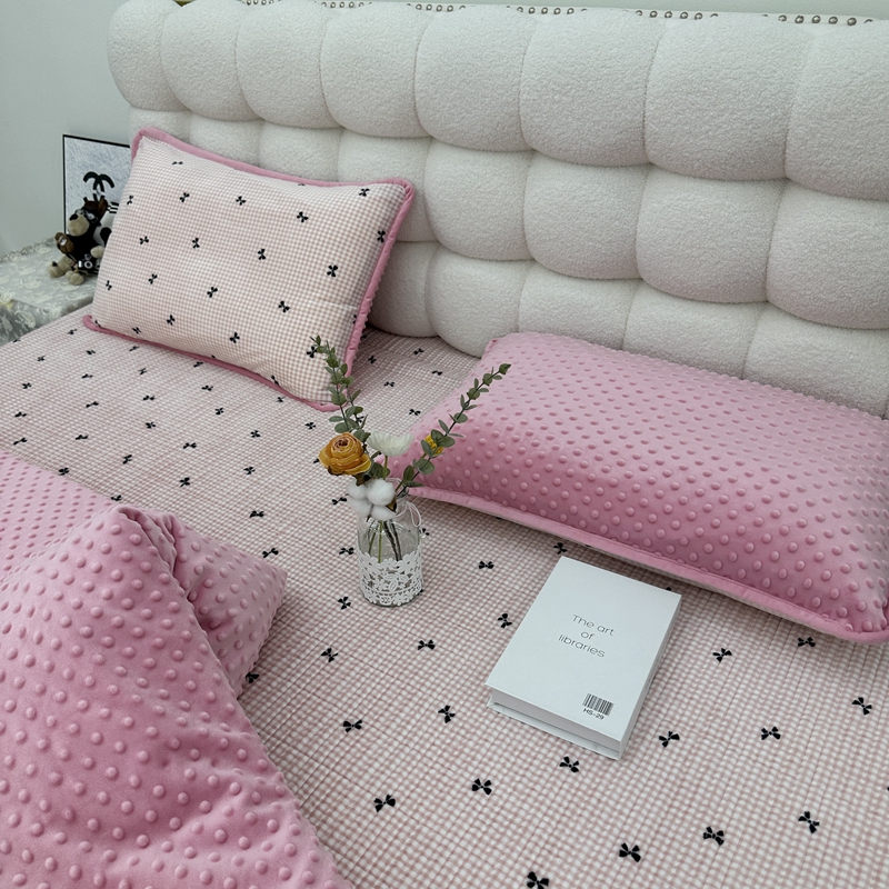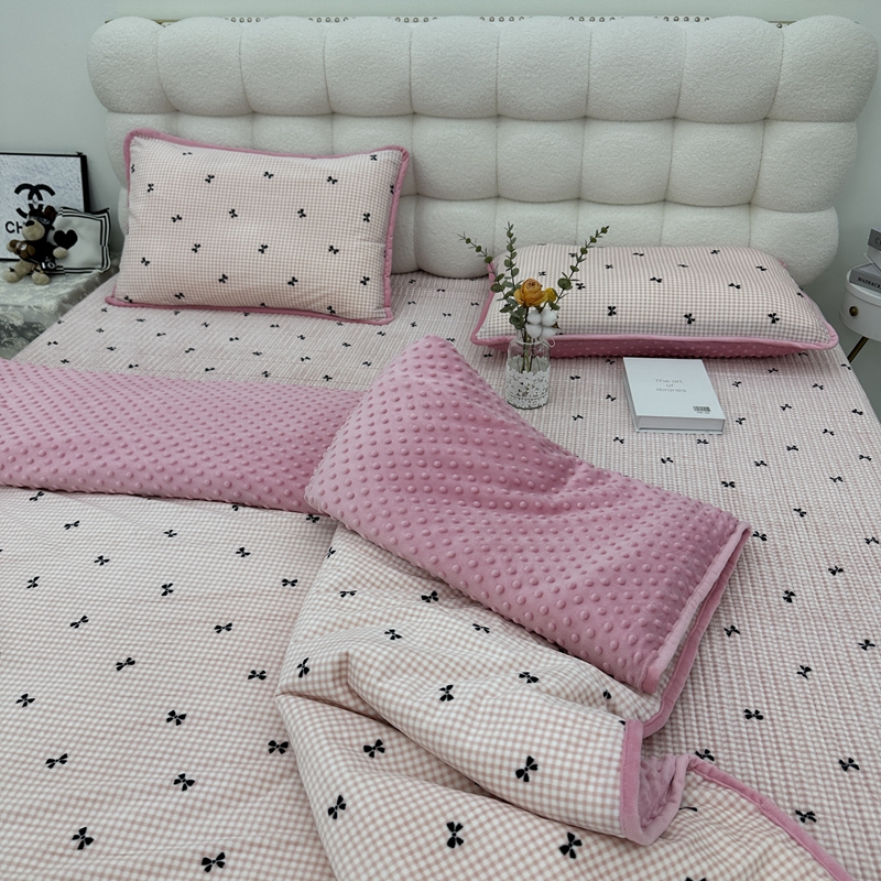 当前位置: 91家纺网 > 商品网购 > 床品套件 > 四件套 > 其它四件套 > 暖居 2024新款婴儿绒 榻榻米炕盖床盖四件套 格子蝴蝶结粉