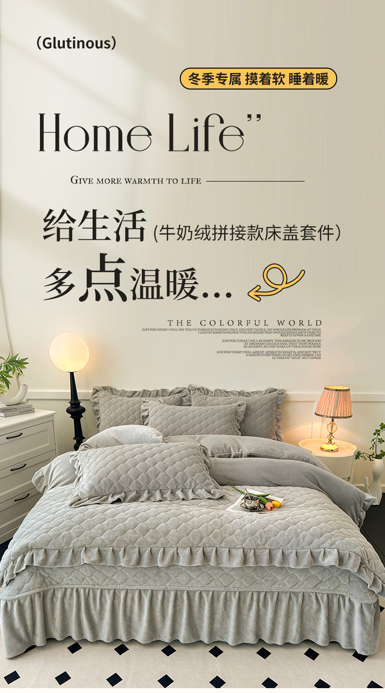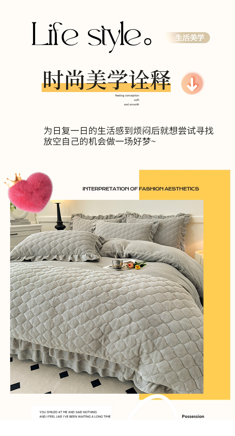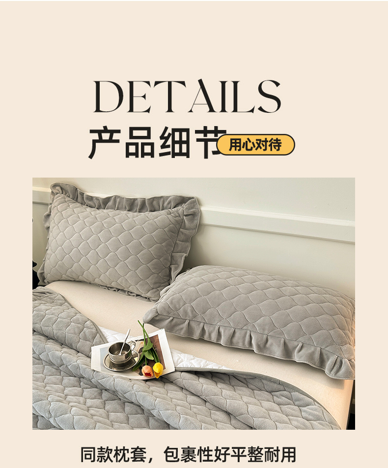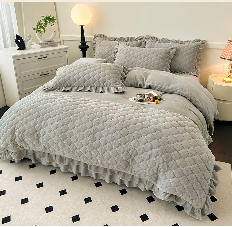 商品名称:屹成家纺 2024新款牛奶绒拼接款床盖四件套 拼接款-银灰
