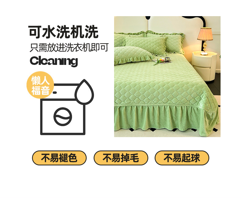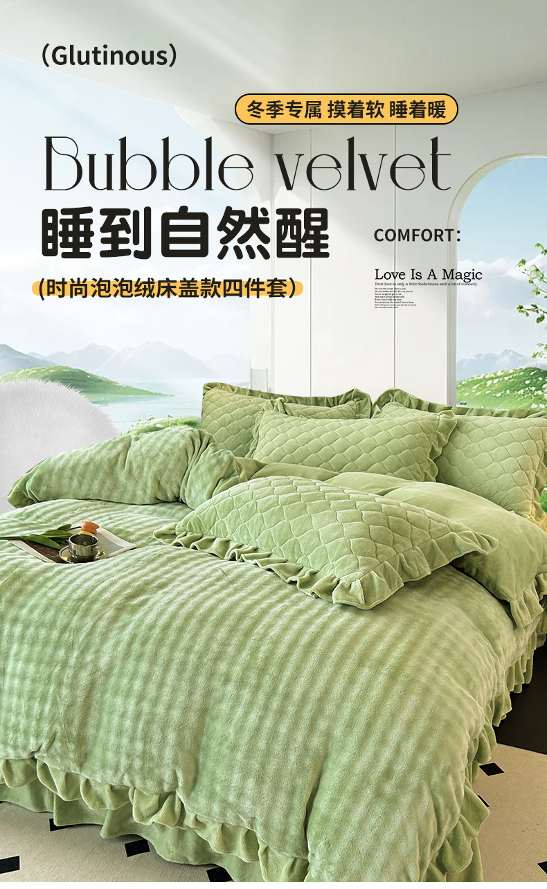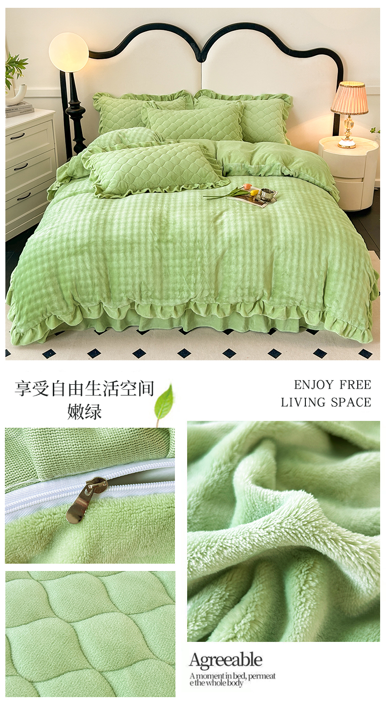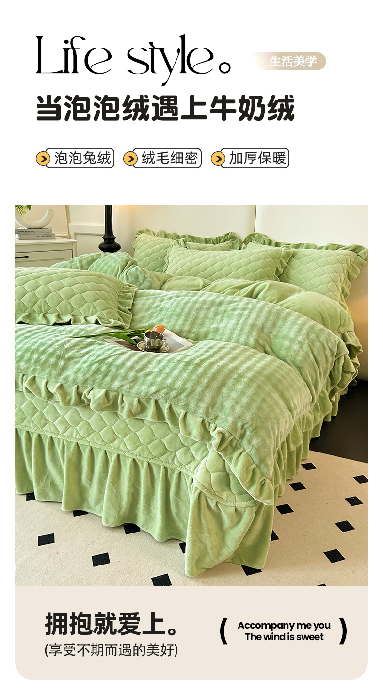 商品名称:屹成家纺 2024新款牛奶绒泡泡款床盖四件套 泡泡款-嫩绿